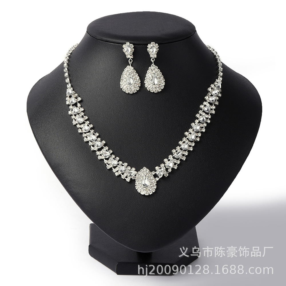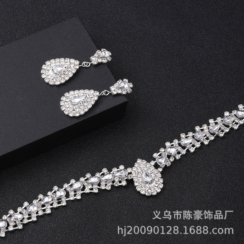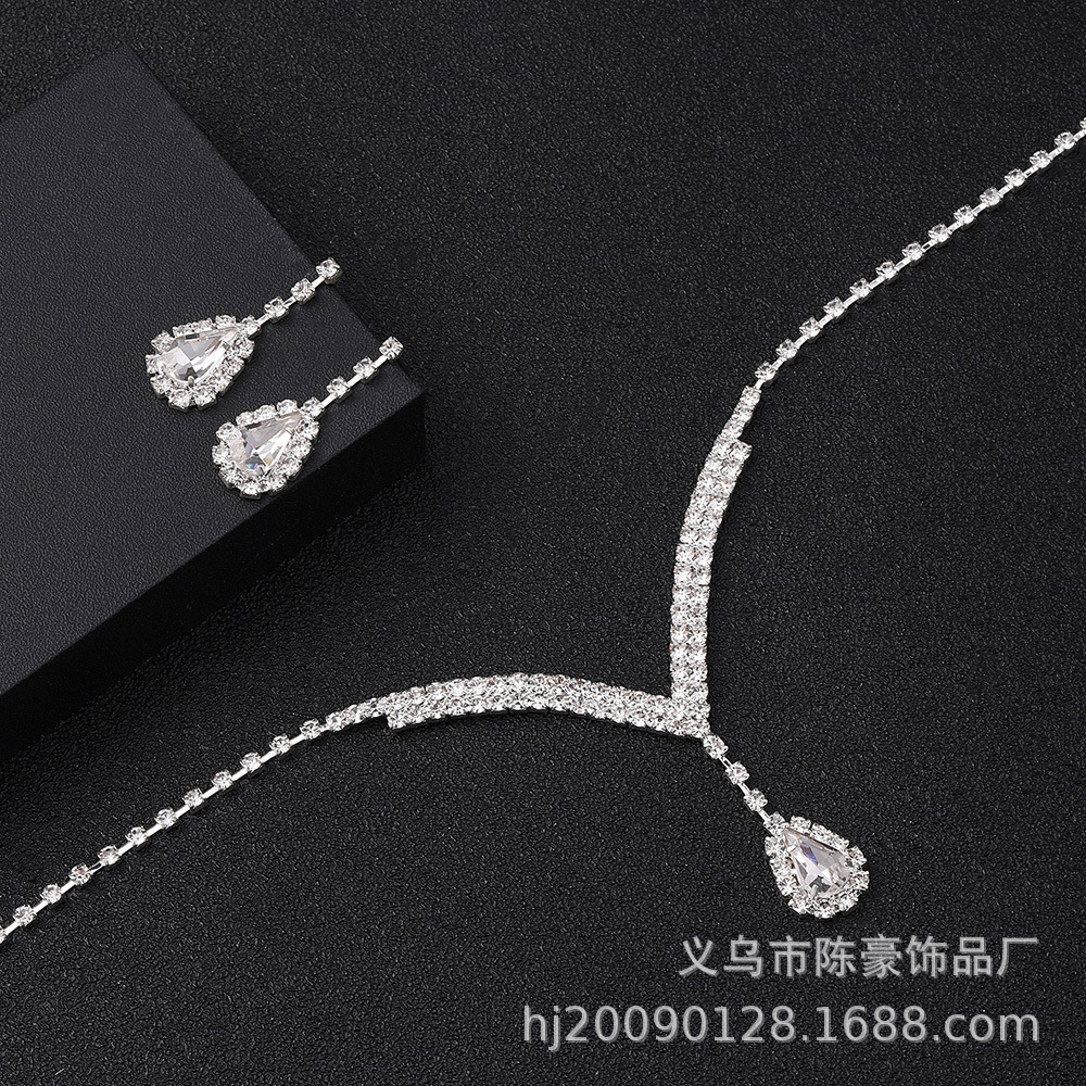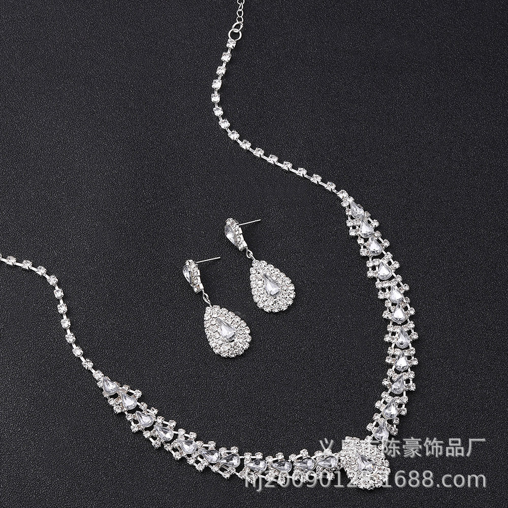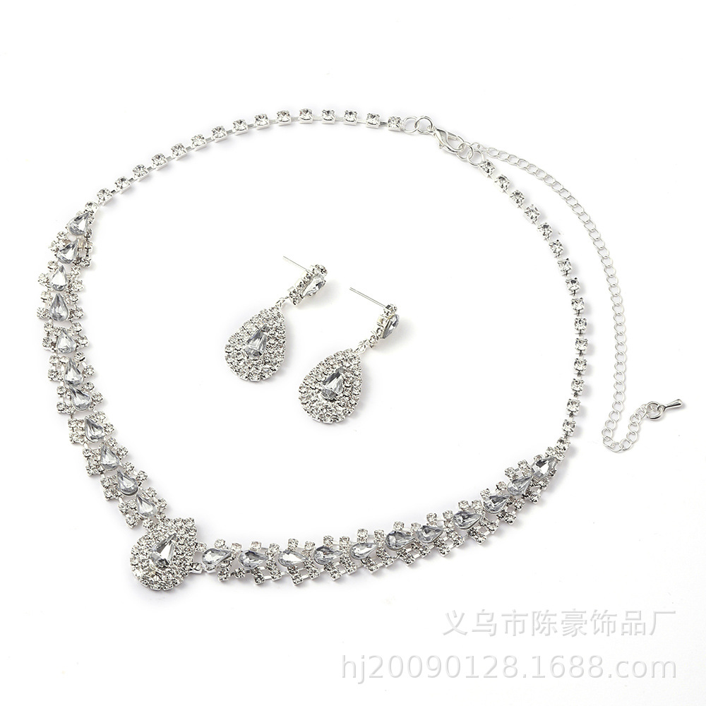 European and American cross-border hot sale necklace earrings jewelry suit women's exquisite diamond inlaid zircon water drop jewelry factory wholesale
