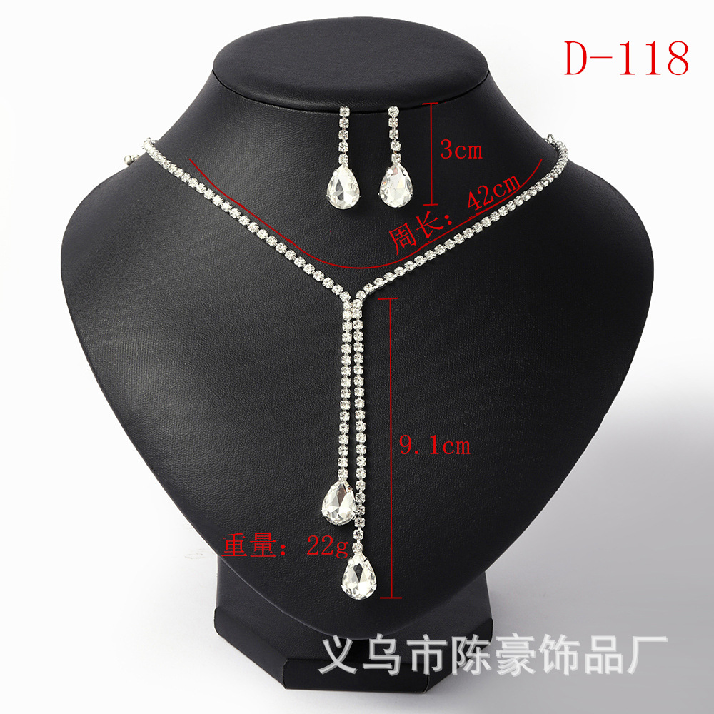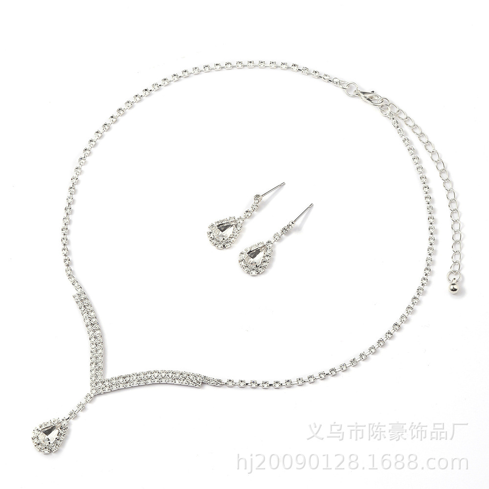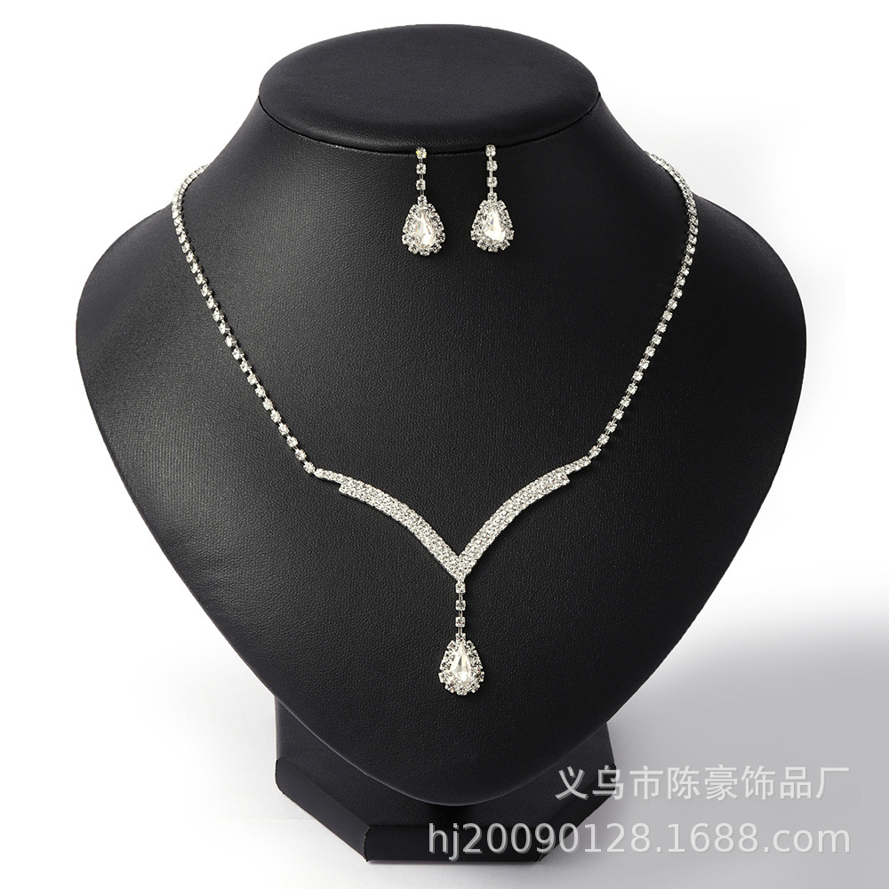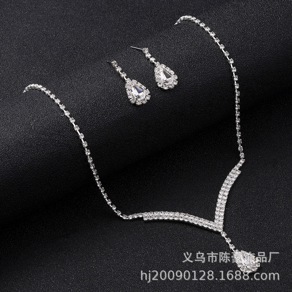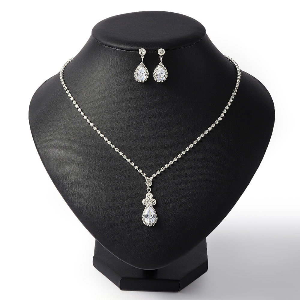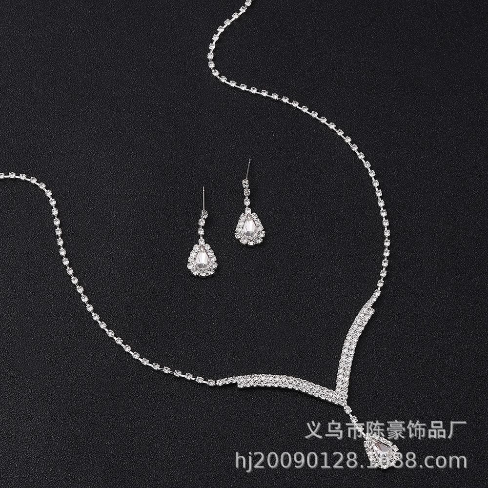 European and American cross-border hot sale necklace earrings jewelry suit women's exquisite diamond inlaid zircon water drop jewelry factory wholesale