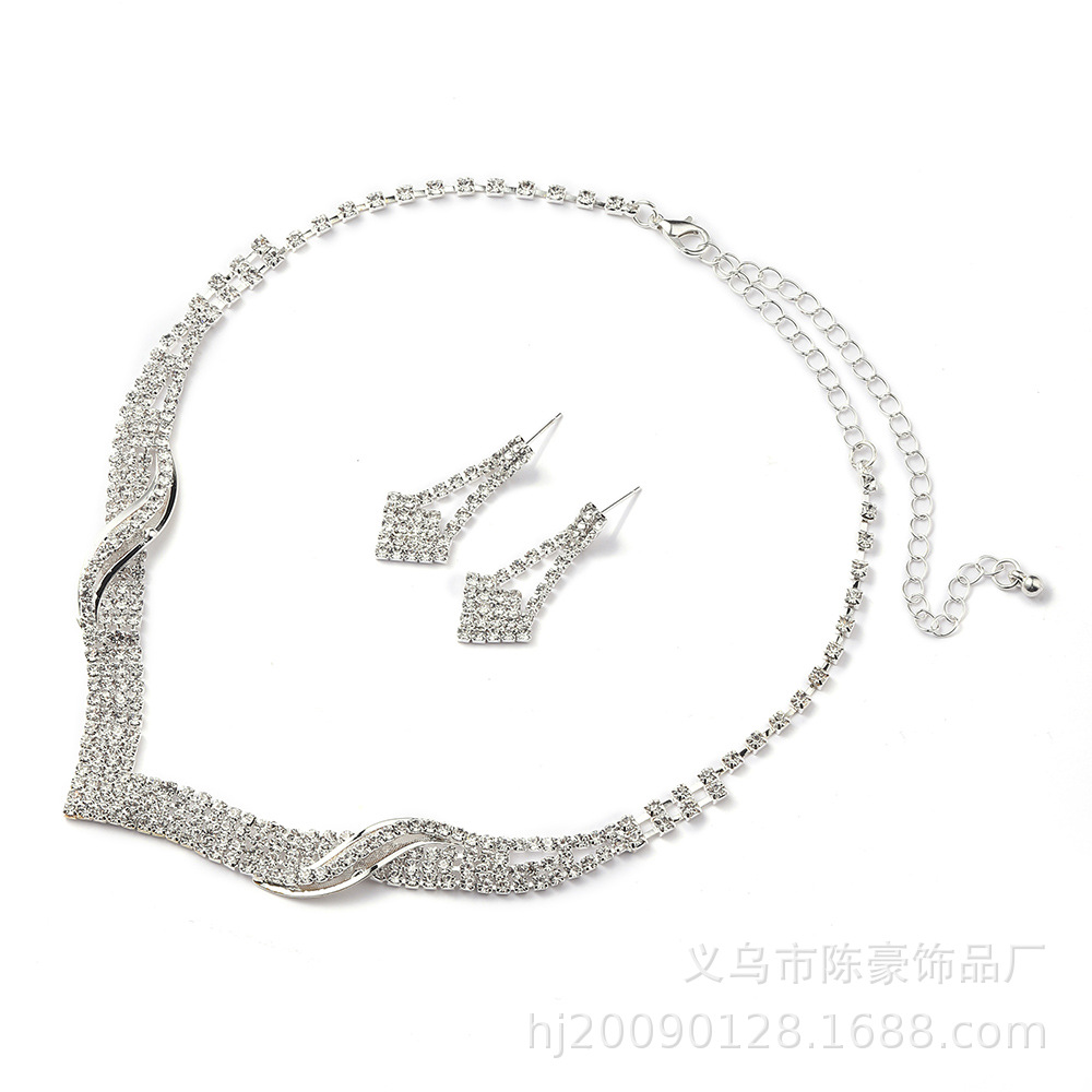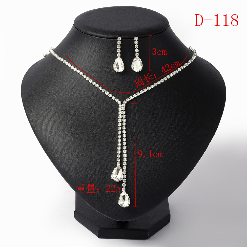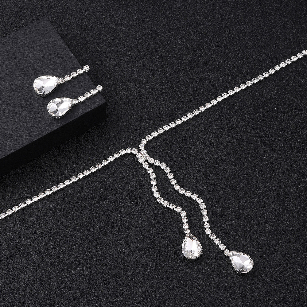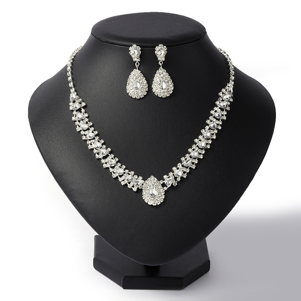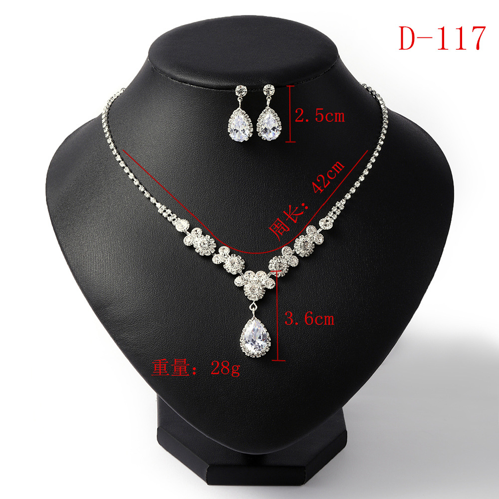 European and American cross-border hot sale necklace earrings jewelry suit women's exquisite diamond inlaid zircon water drop jewelry factory wholesale