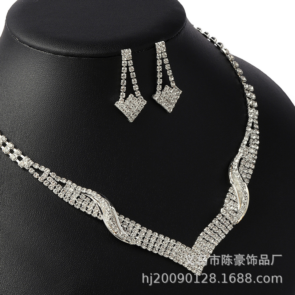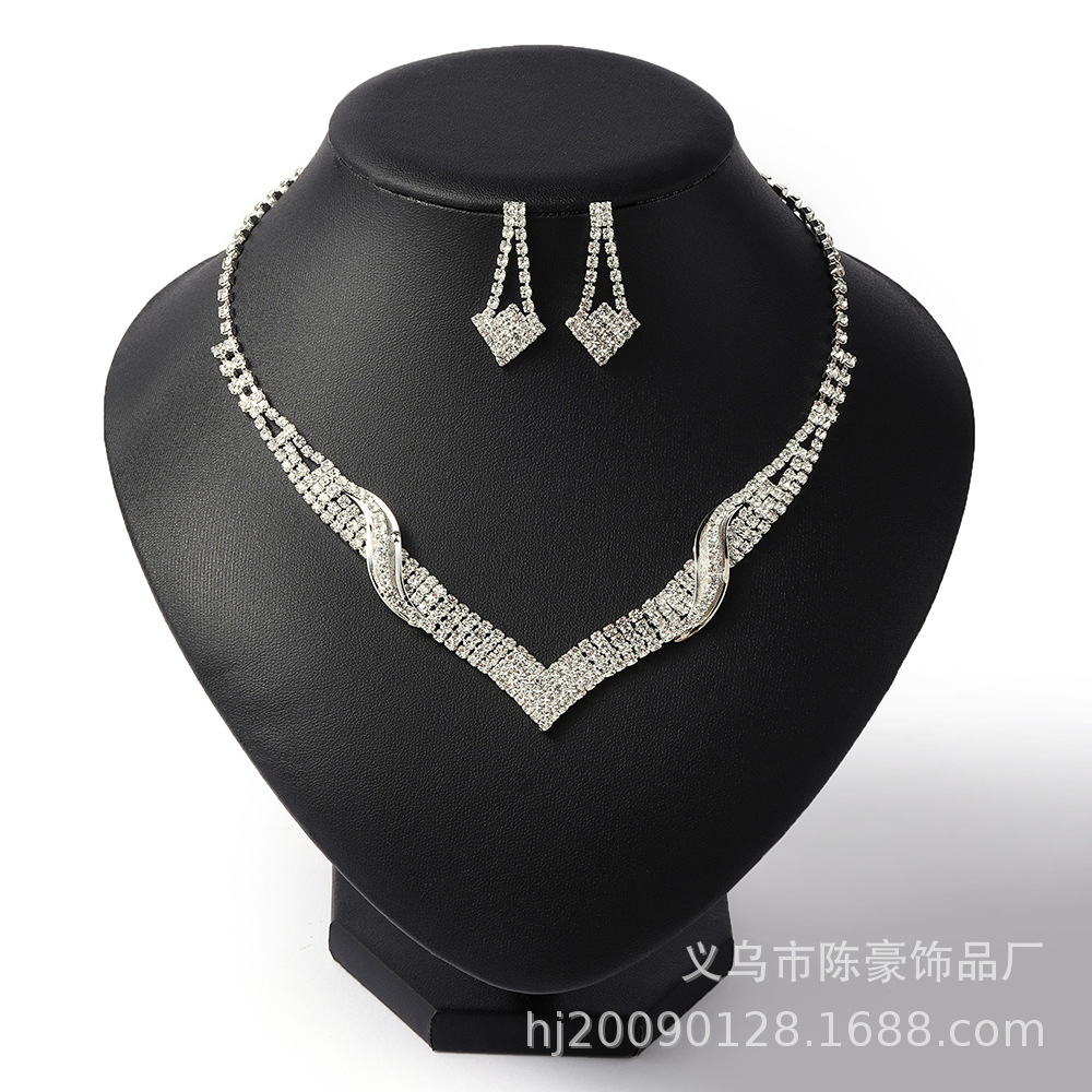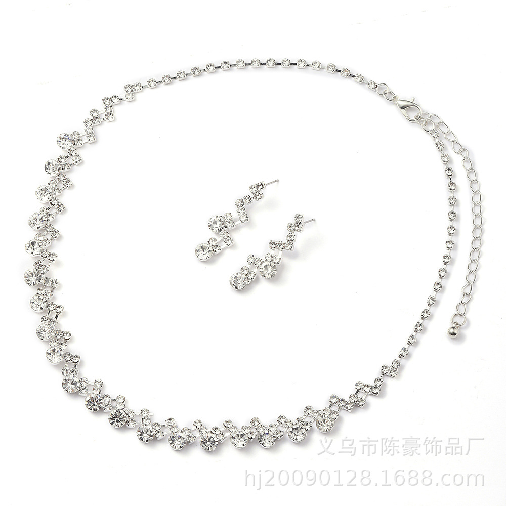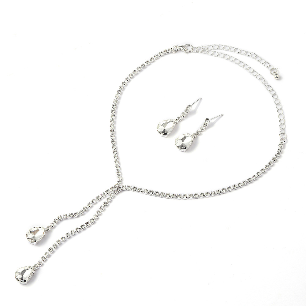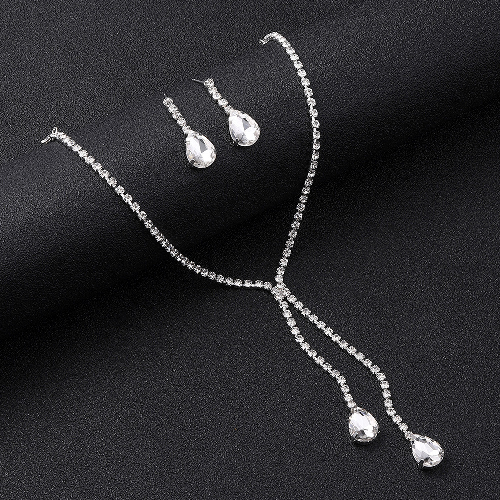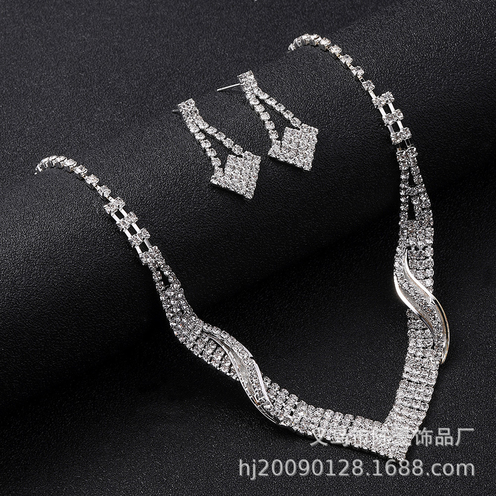European and American cross-border hot sale necklace earrings jewelry suit women's exquisite diamond inlaid zircon water drop jewelry factory wholesale