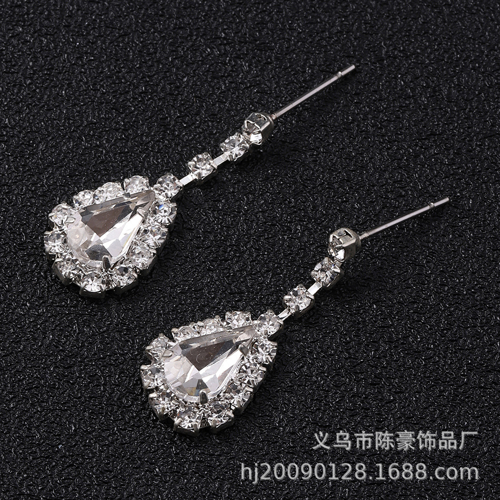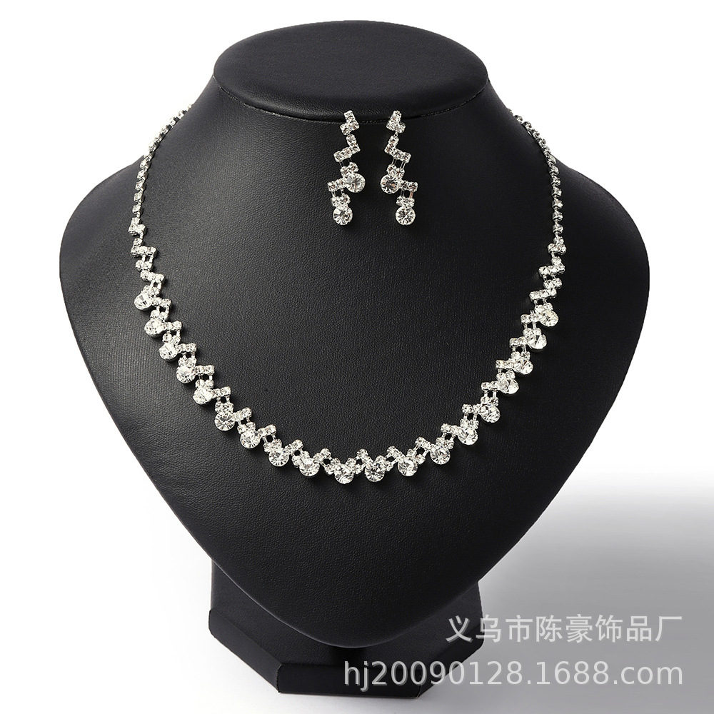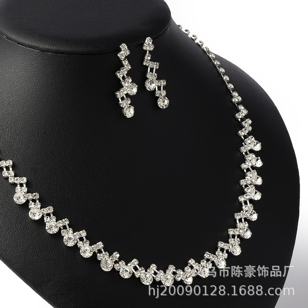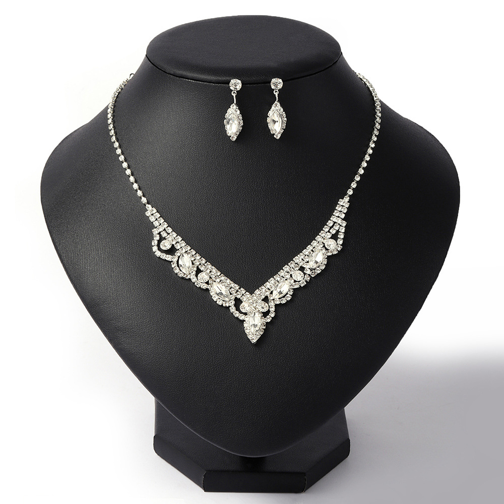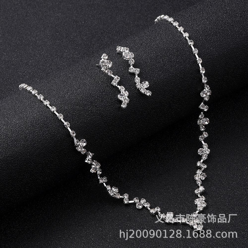 European and American cross-border hot sale necklace earrings jewelry suit women's exquisite diamond inlaid zircon water drop jewelry factory wholesale