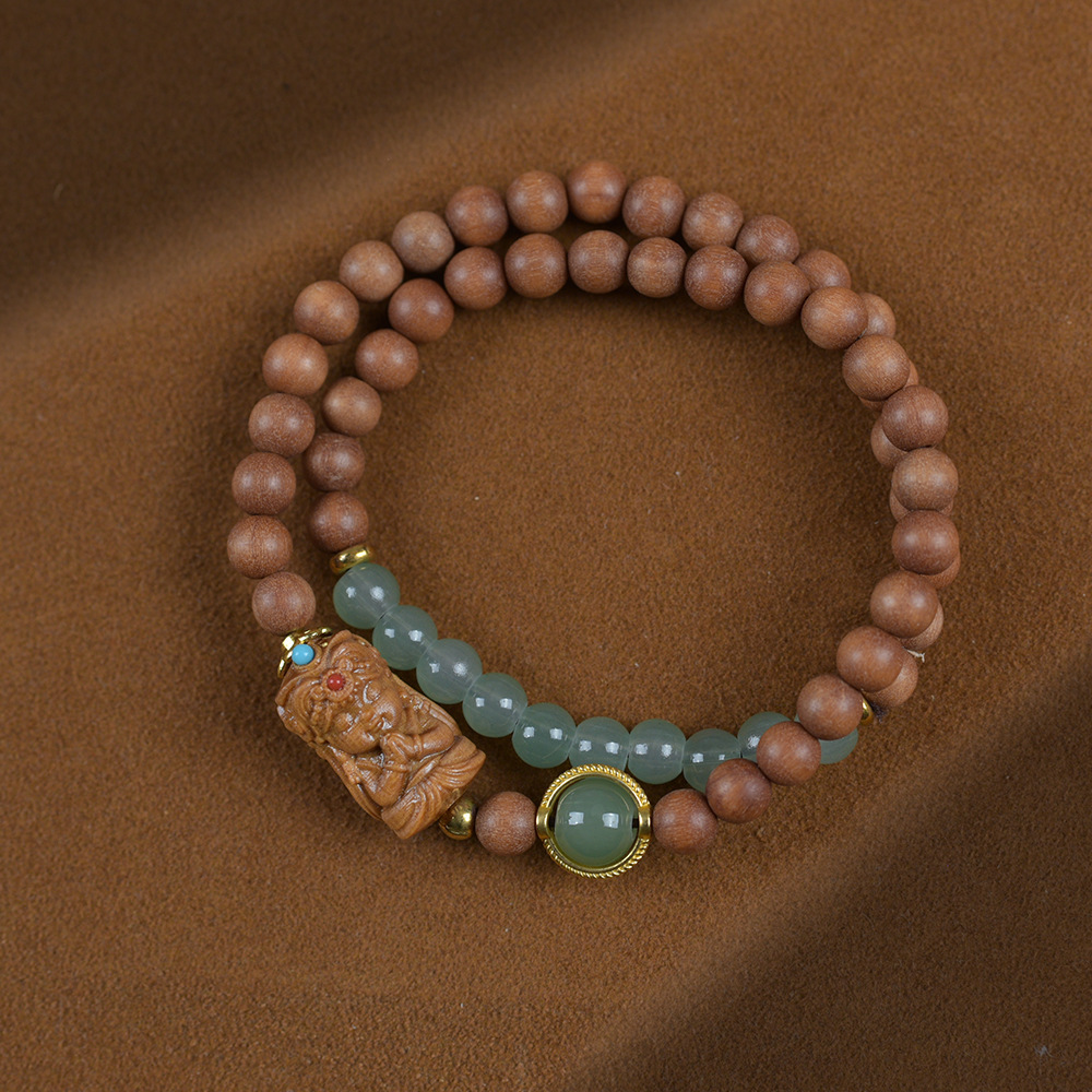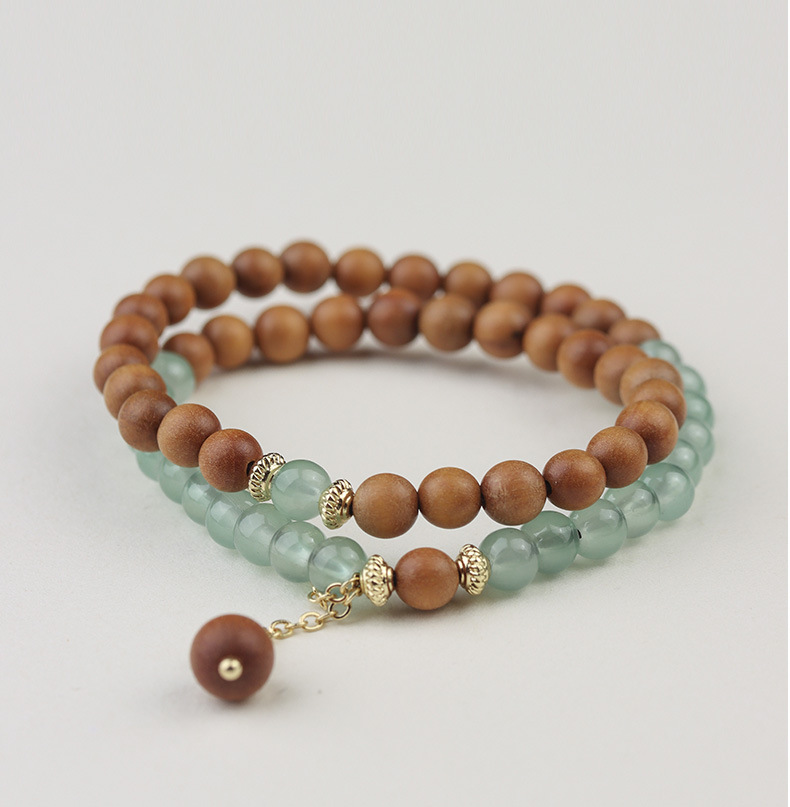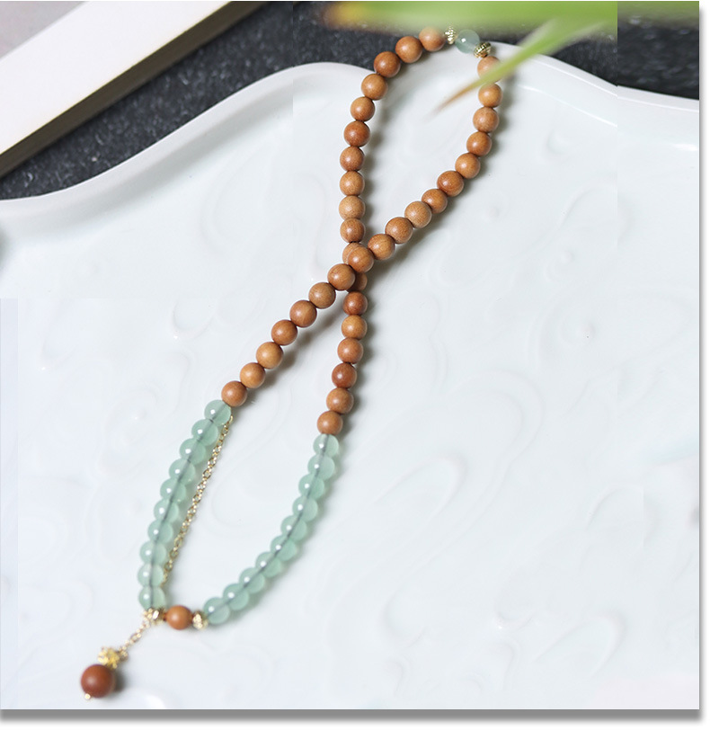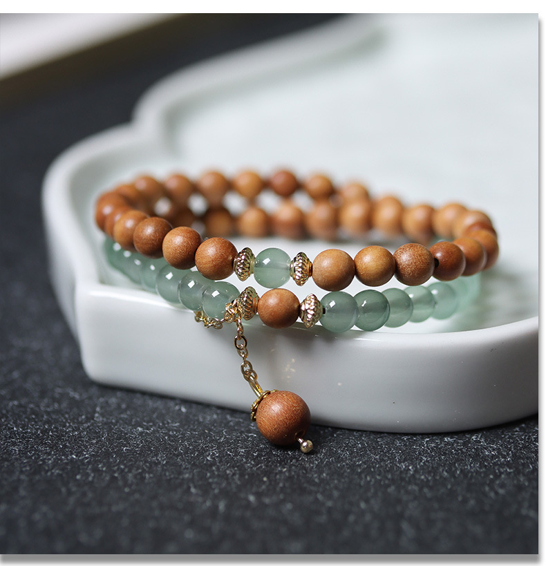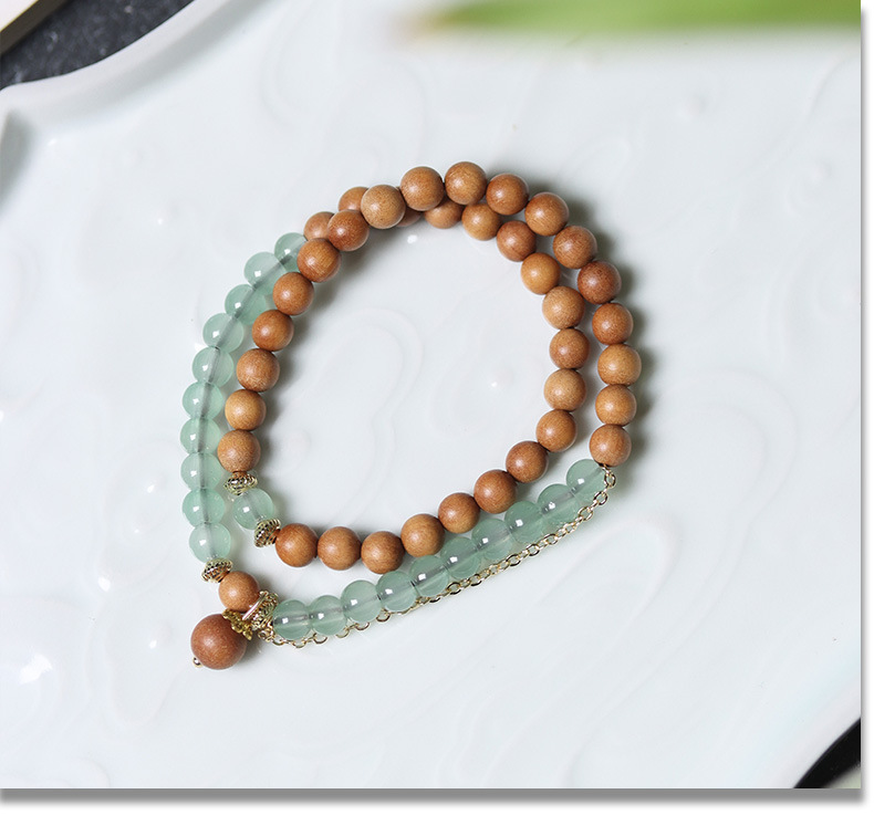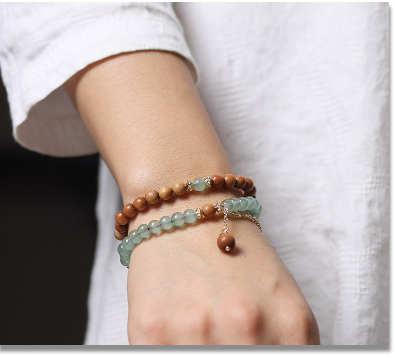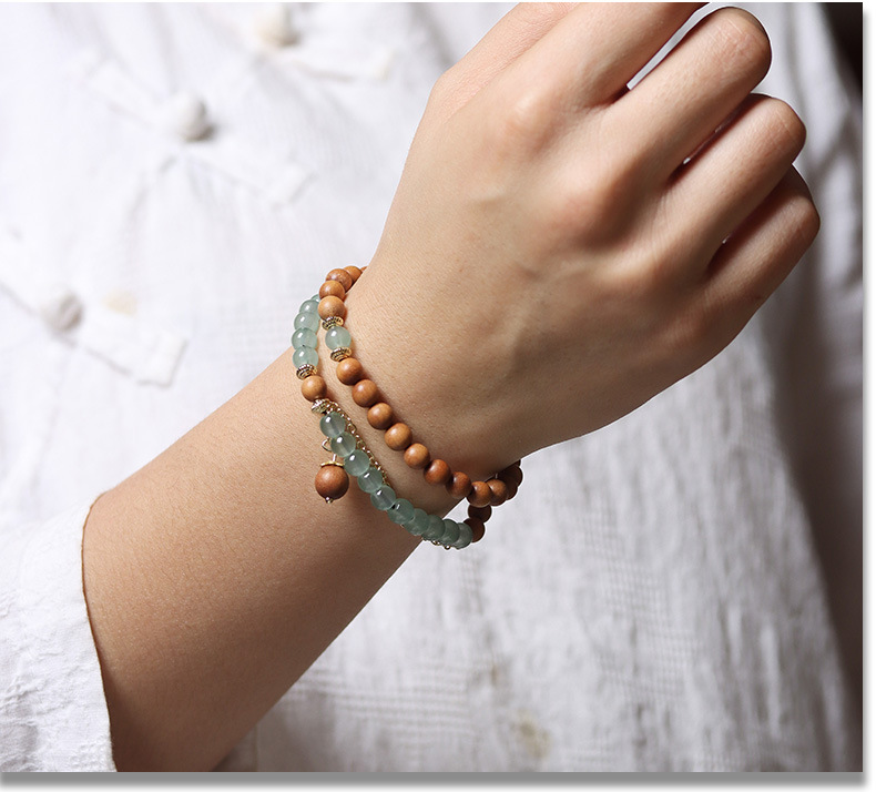 Color: Barbie sandalwood 6mm double layer bracelet [with jade color beads + chain tassel]