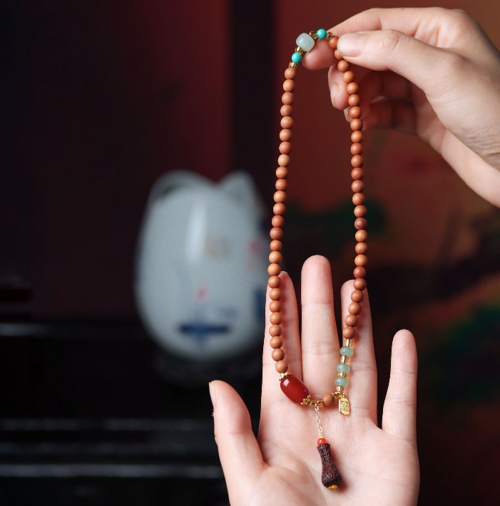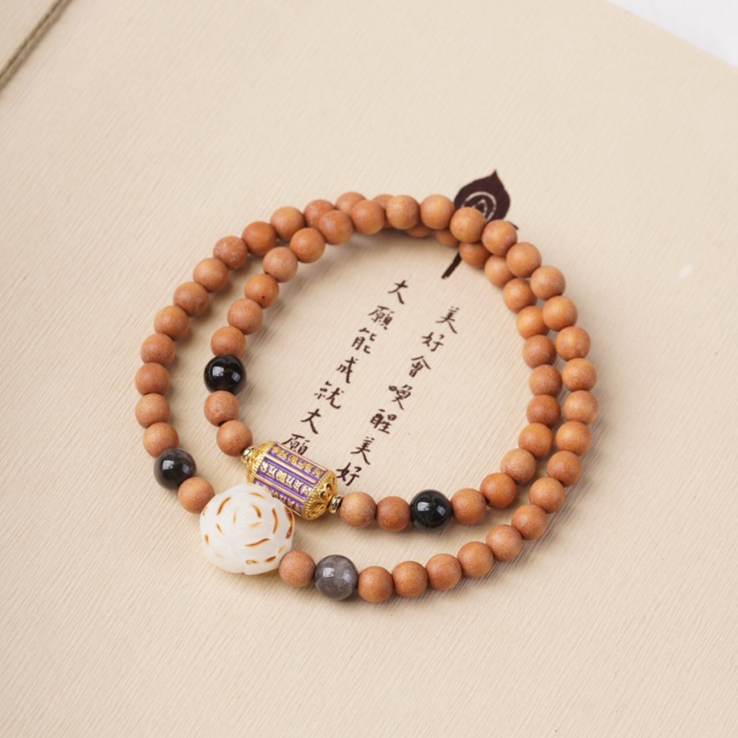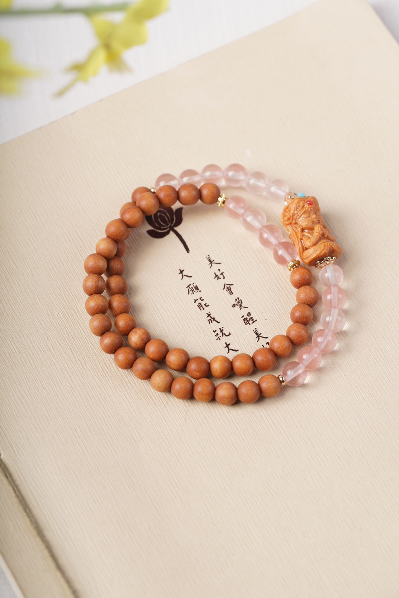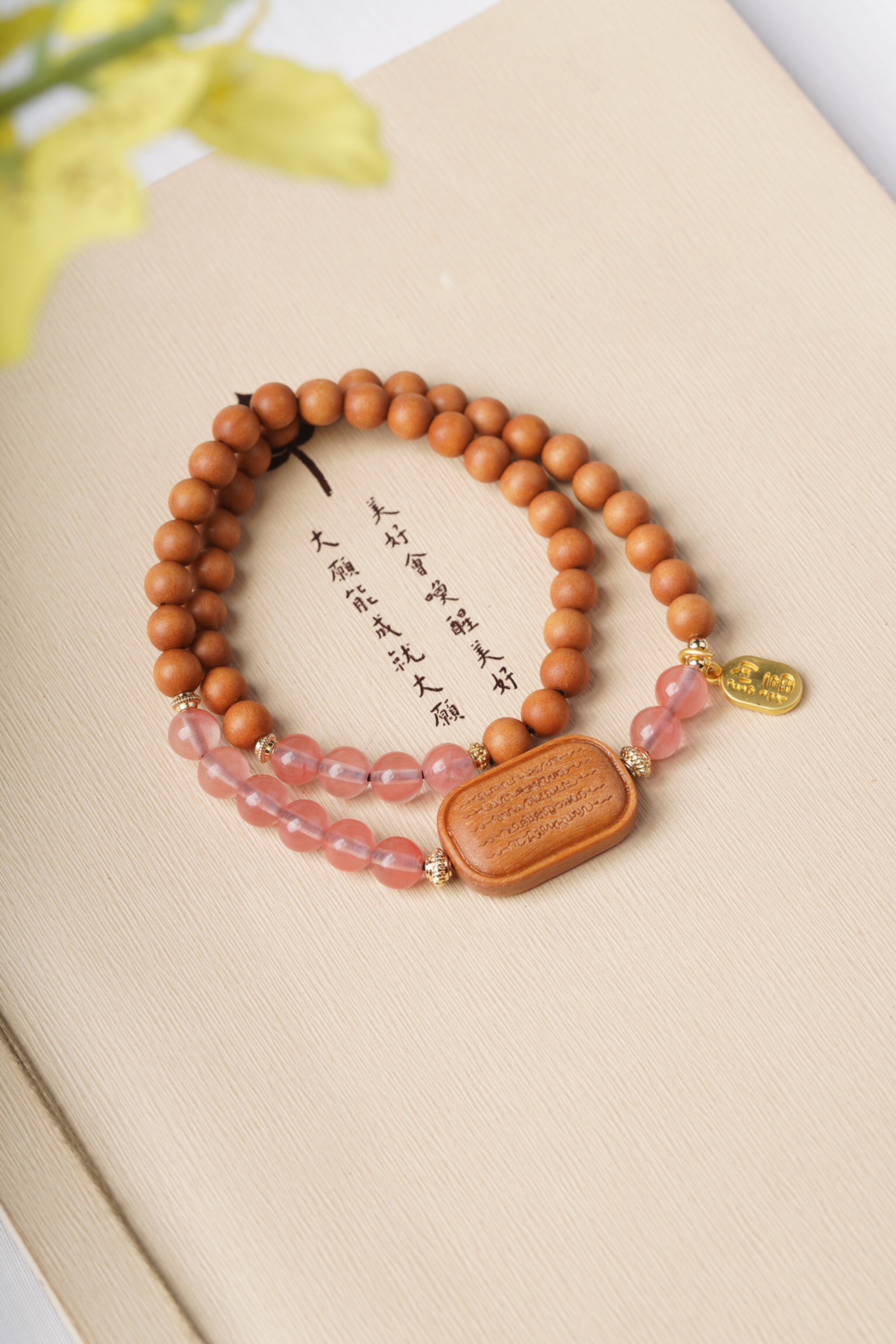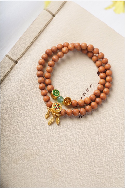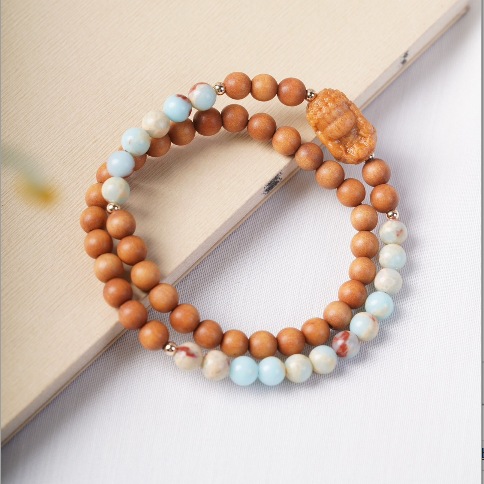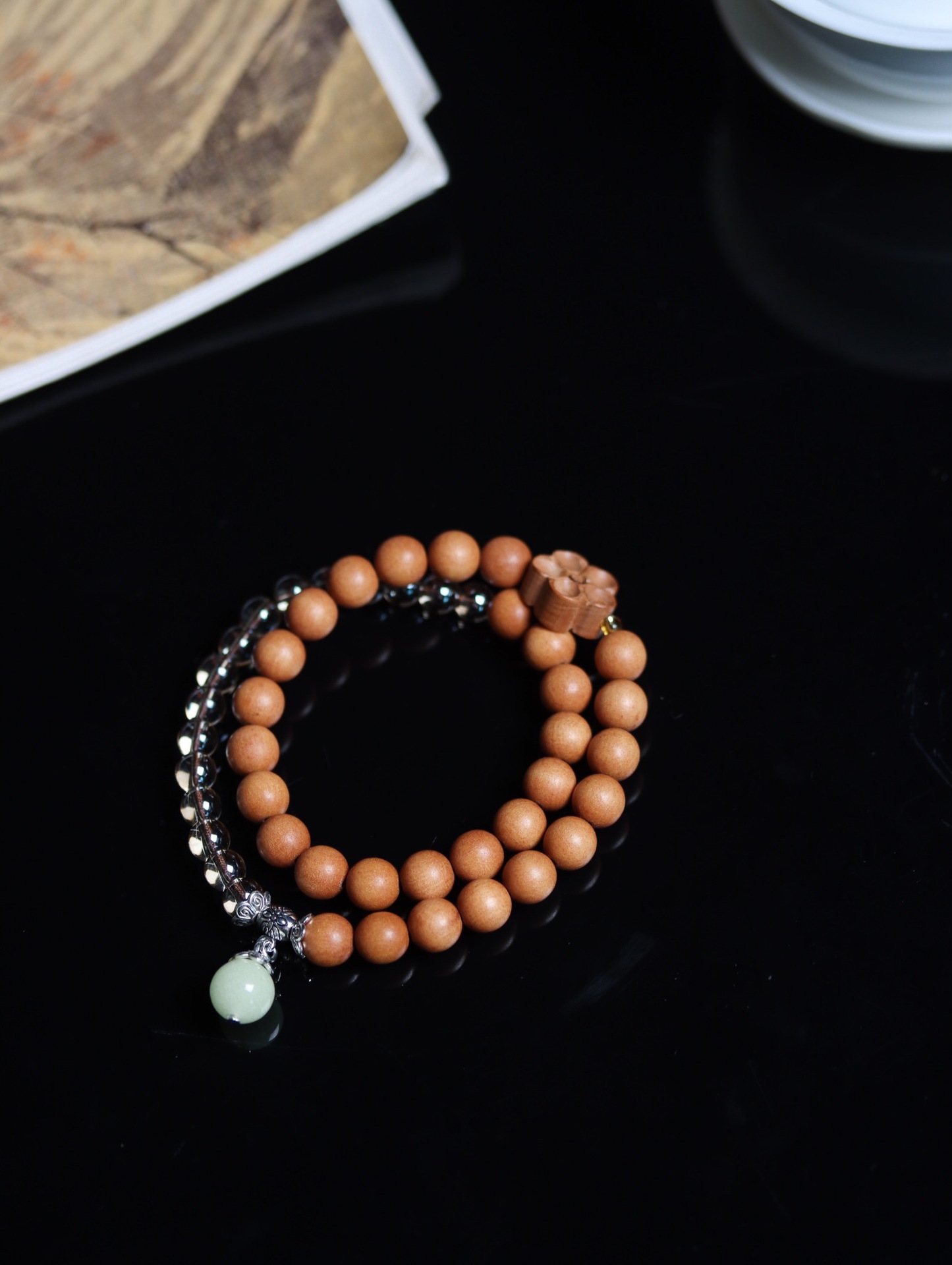 Color: Barbie sandalwood 6mm double layer bracelet [with jade color beads + chain tassel]