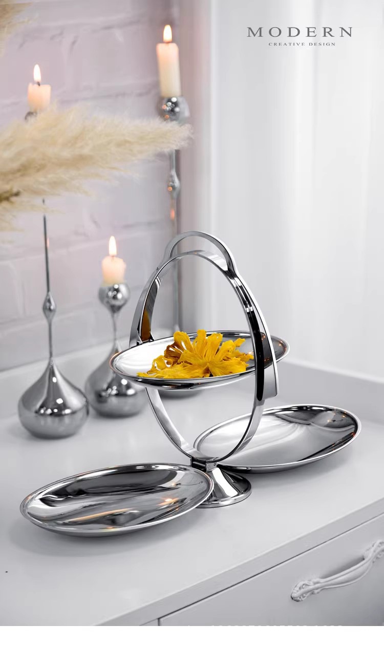 German MODERN stainless steel fruit plate dessert display plate creative decoration light luxury plate hotel supplies housewarming gift