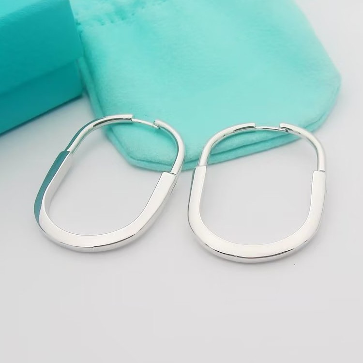 U-Shaped Lock Ring Buckle Oval Half Diamond Earrings with Exaggerated Stylish and Versatile for Men and Women, Trendy and Cool Earrings, Geometric Earrings