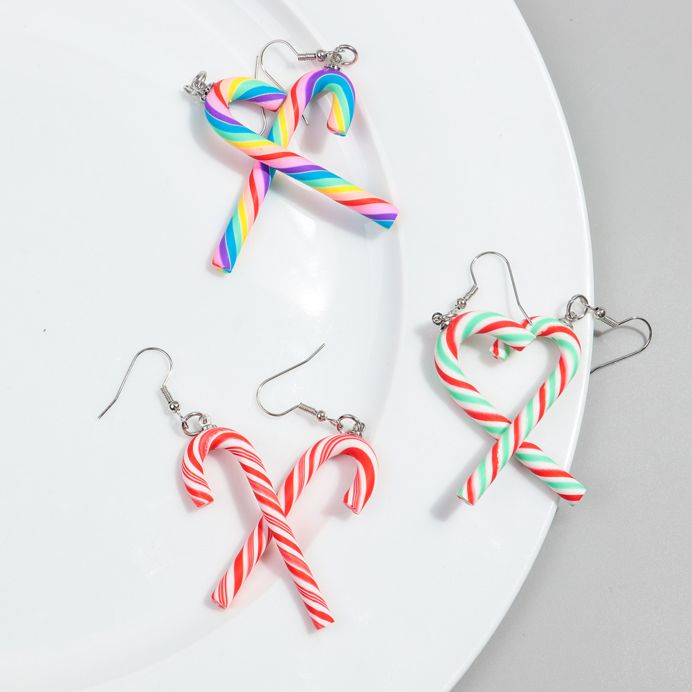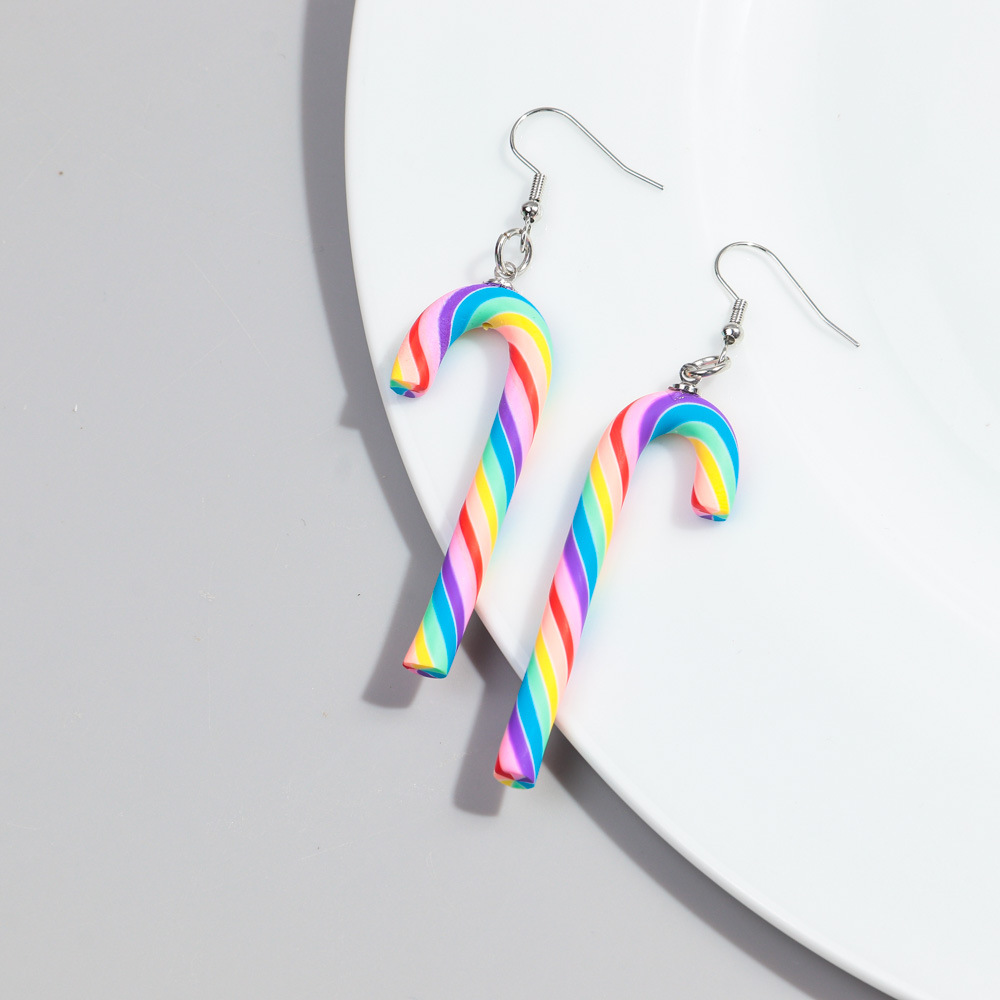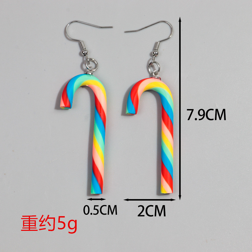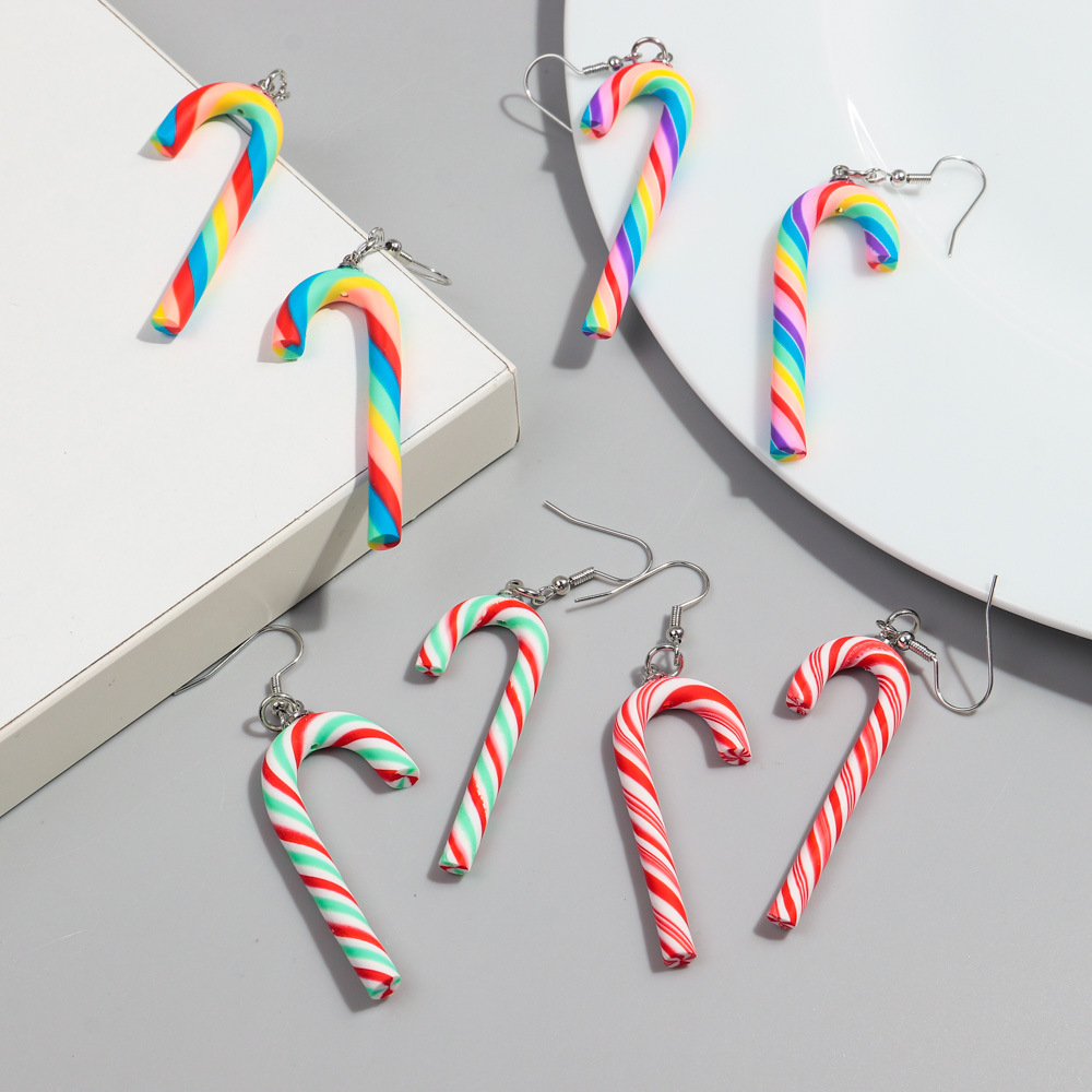 European and American cross-border new year holiday earrings Santa Claus rainbow crutch earrings festival sweet girl soft pottery earrings