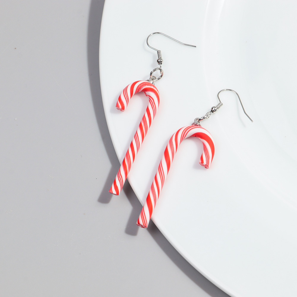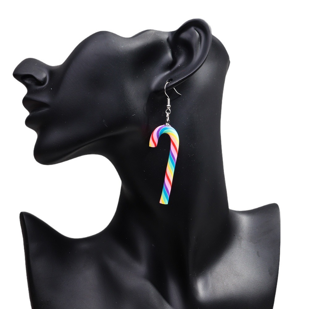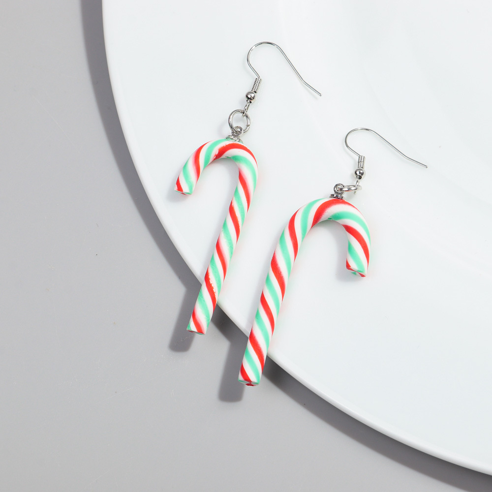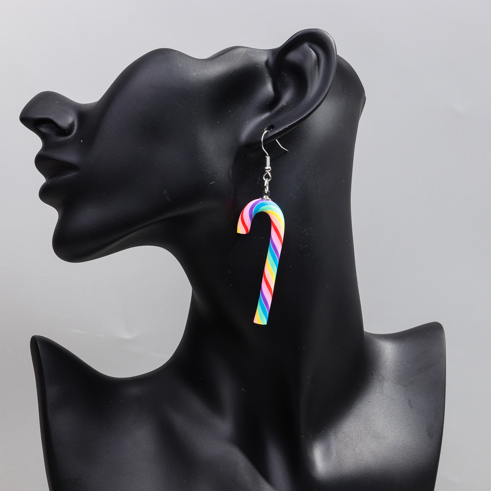 European and American cross-border new year holiday earrings Santa Claus rainbow crutch earrings festival sweet girl soft pottery earrings
