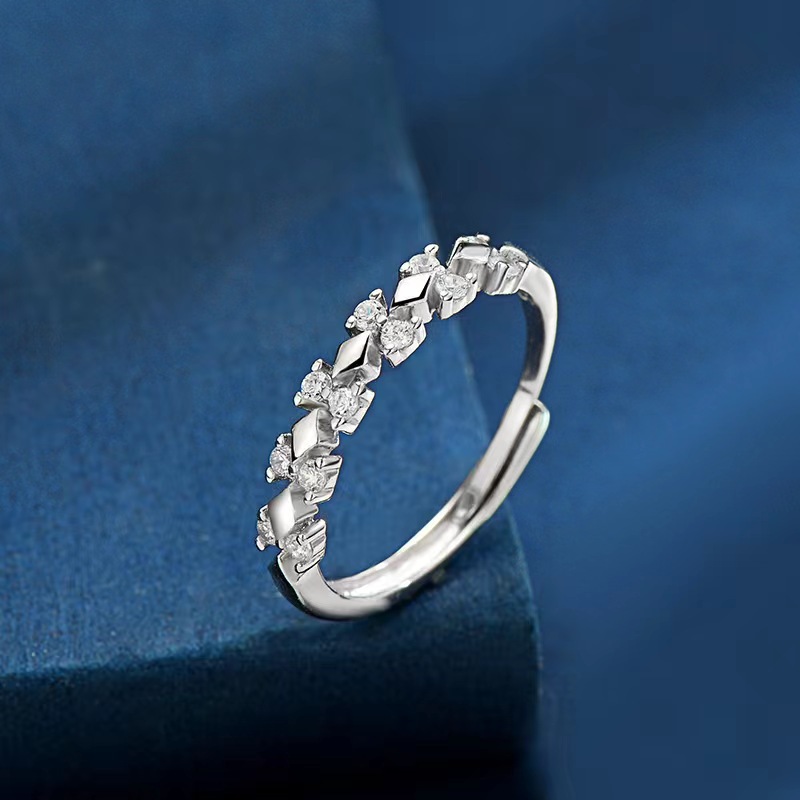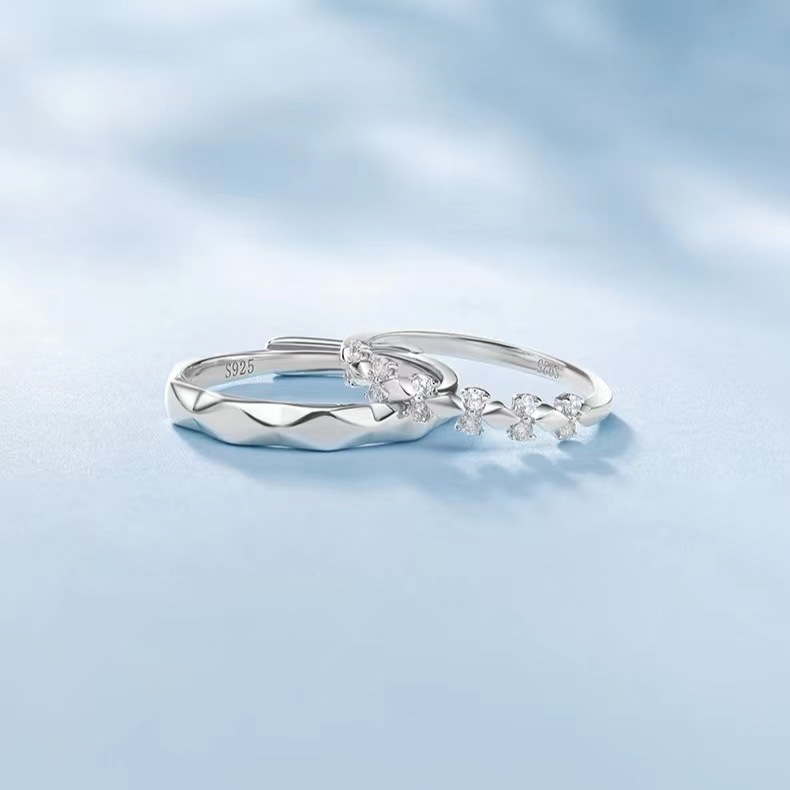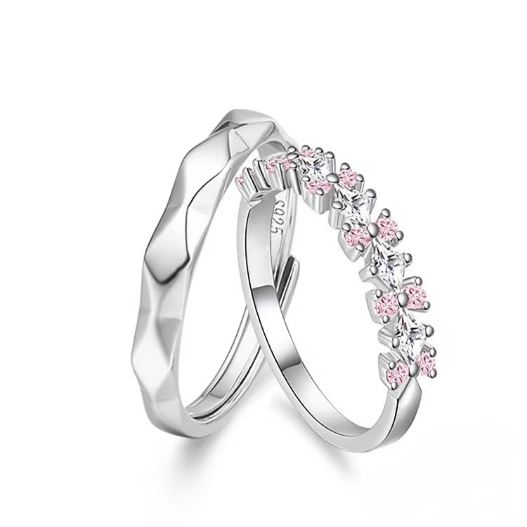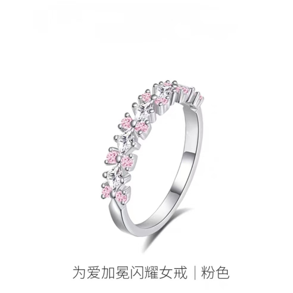 Fan Jia with LOGO steel seal pink diamond for love Coronation couple ring fashion small fresh open ring light luxury diamond