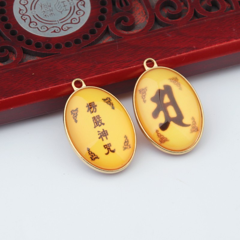 【商品名称】玻璃贴片楞严咒 六字真言项链