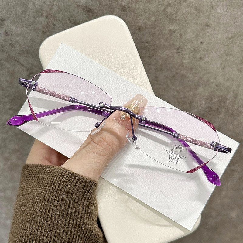 2025 New Fashionable Age-Reducing Starlight Shimmer Women's Reading Glasses Ultra-Light Metal Diamond-Cut Edge Blue Light Blocking Glasses