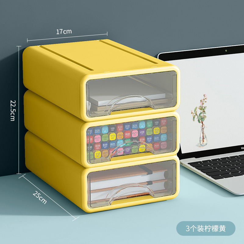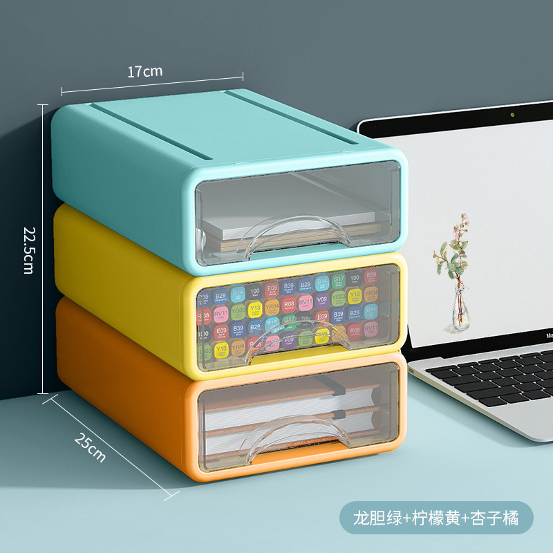 Color: Three-layer desktop storage box [mango yellow + Dragon gall Green + quiet Blue]]
