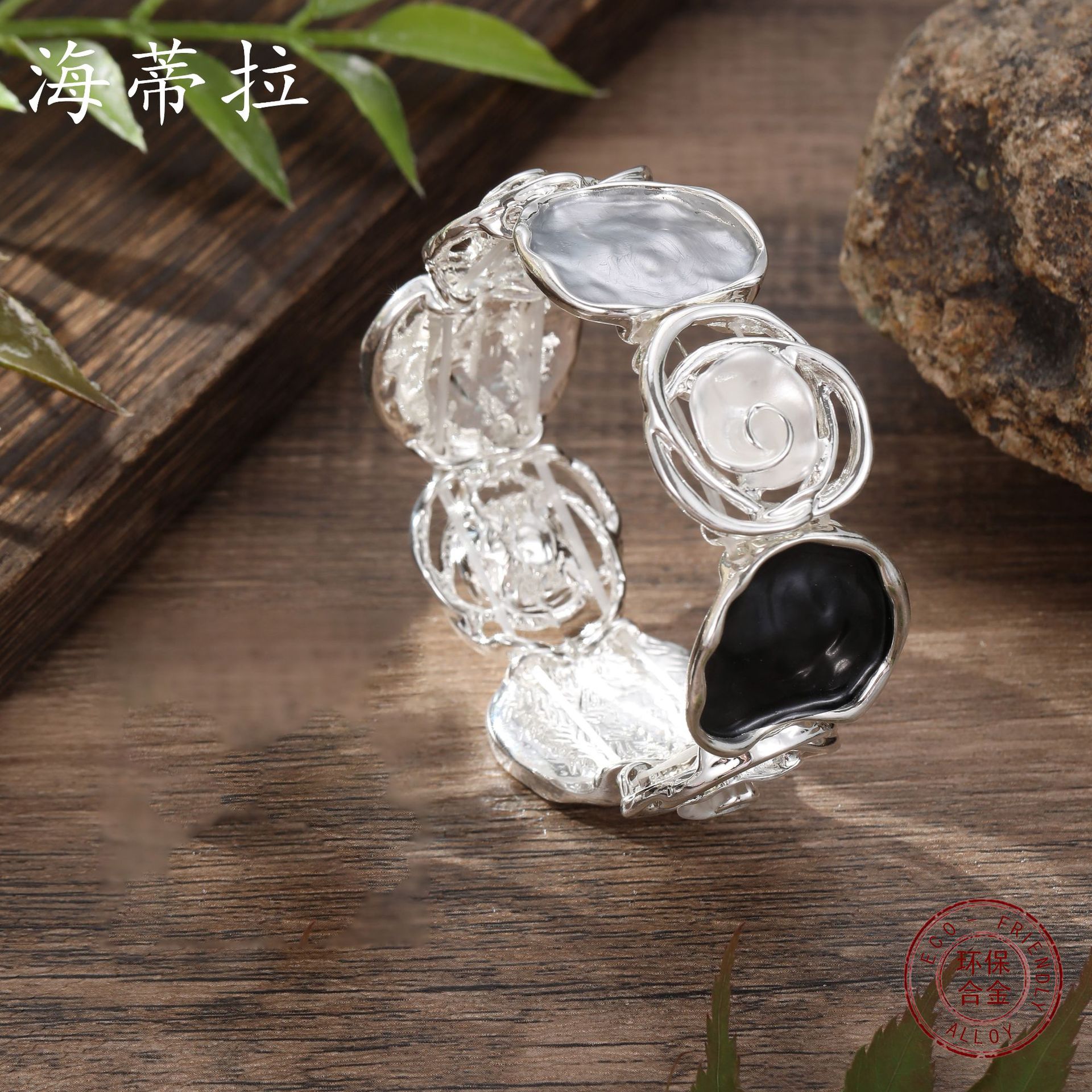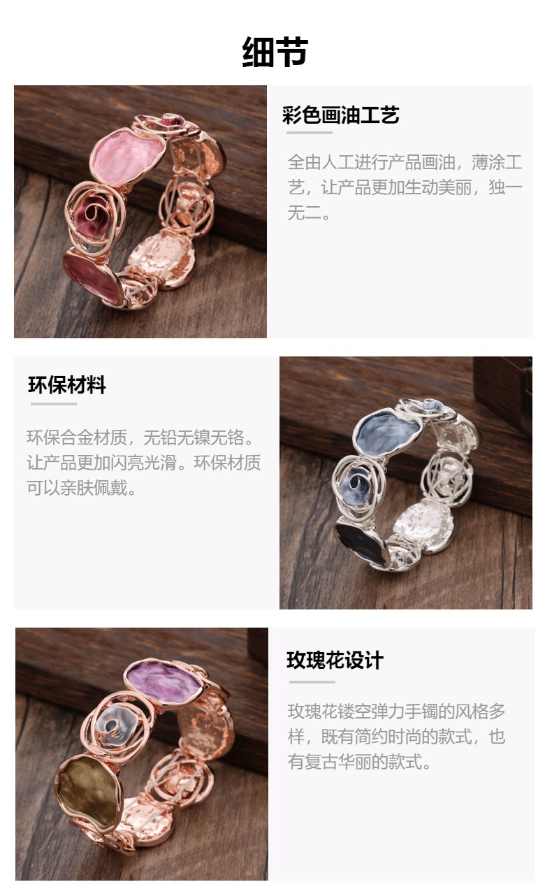 Cross-border Explosions Color Painted Oil Rose Elastic Bracelet Geometric Hollow Rose Women's All-match Bracelet