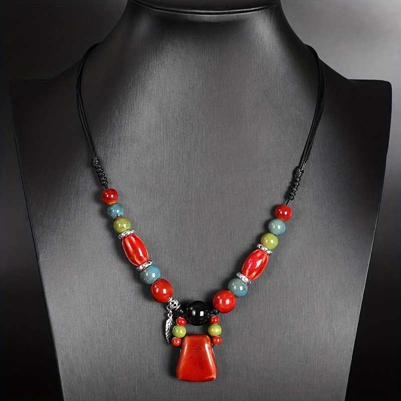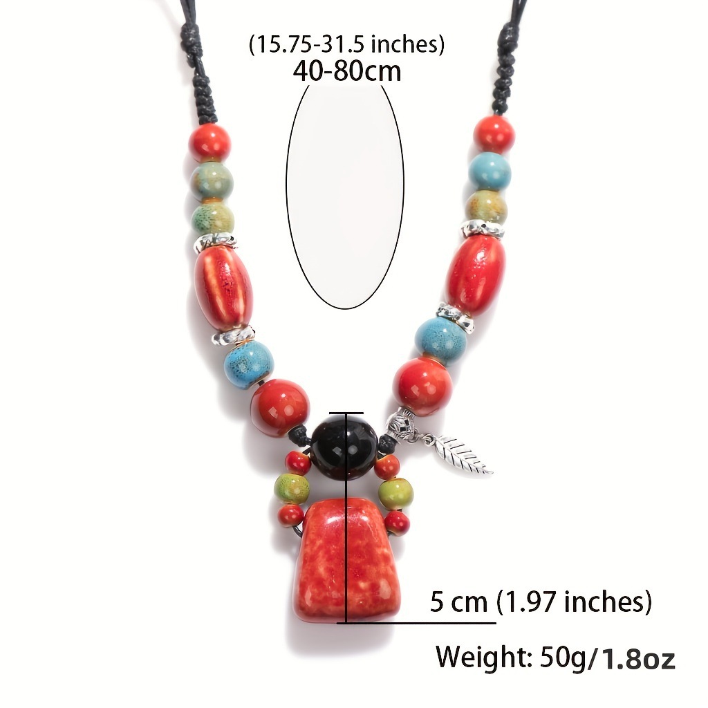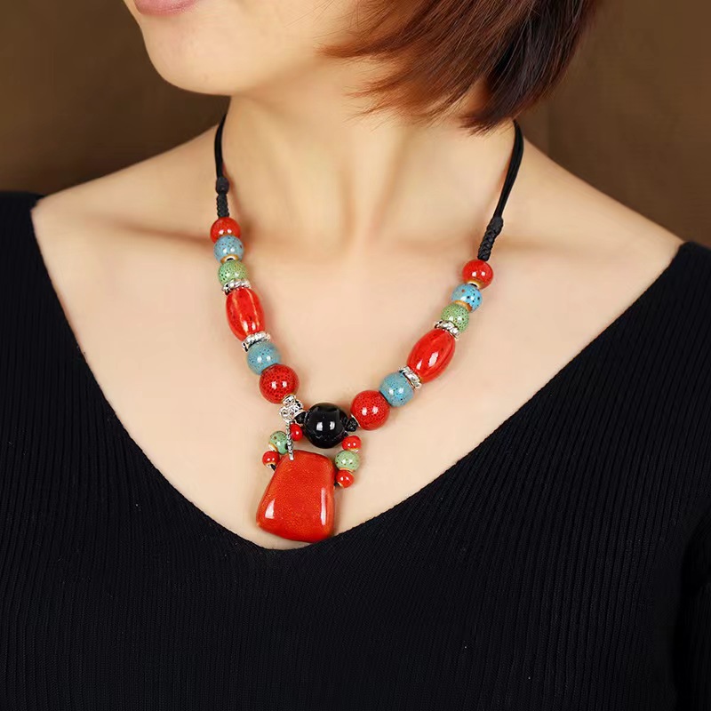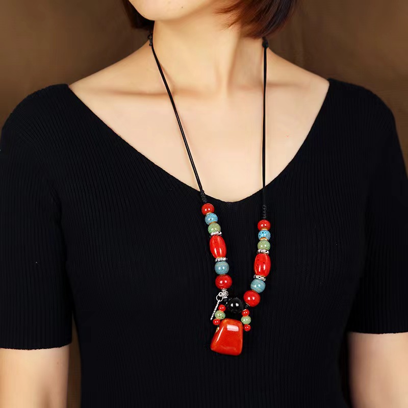 Bohemian long woven ethnic style sweater chain retro versatile handmade gourd ceramic tassel necklace accessories