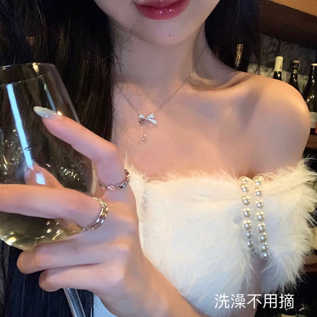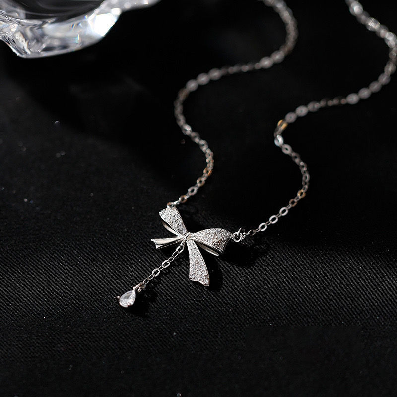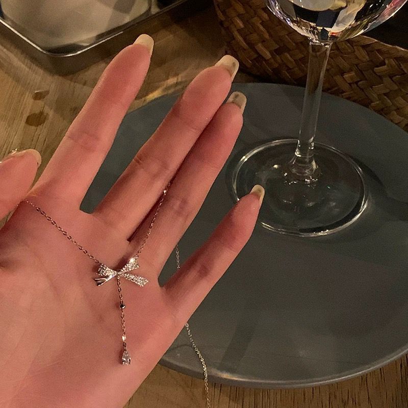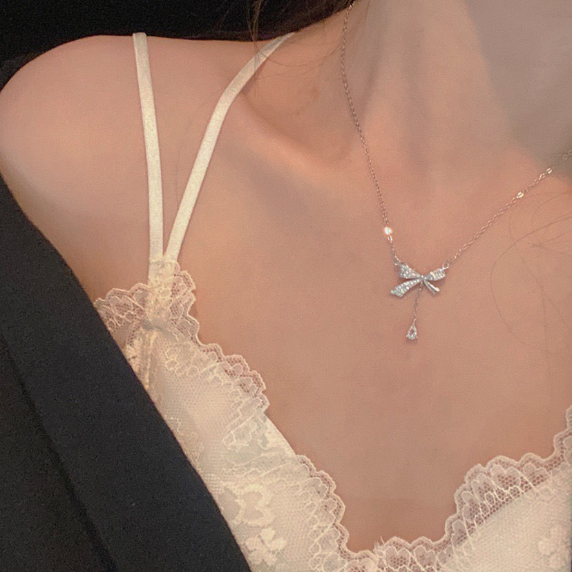 Bow tassel necklace female temperament niche design high-grade light luxury water drop pendant clavicle chain