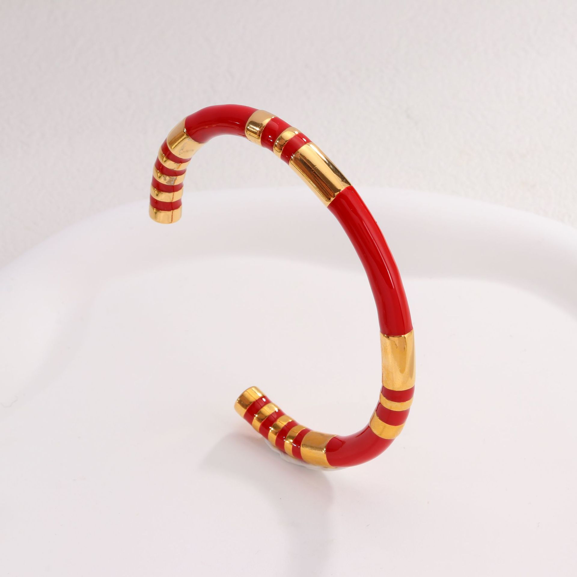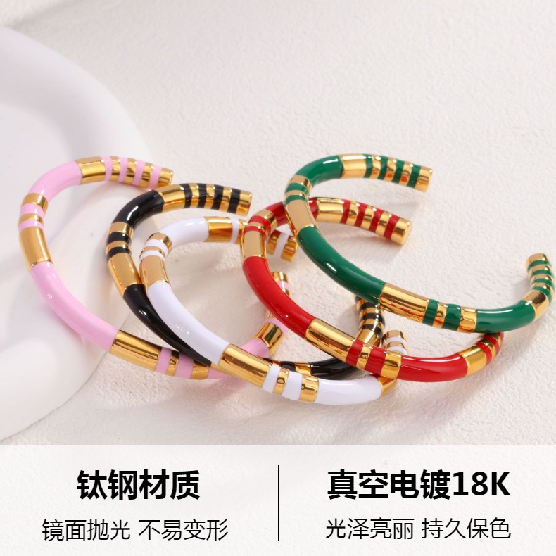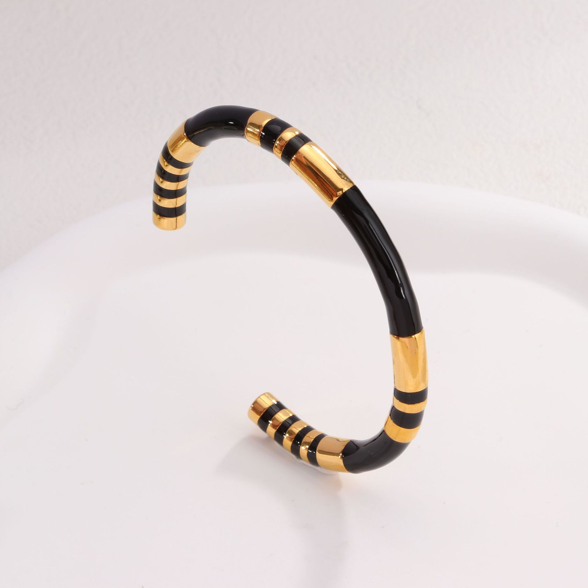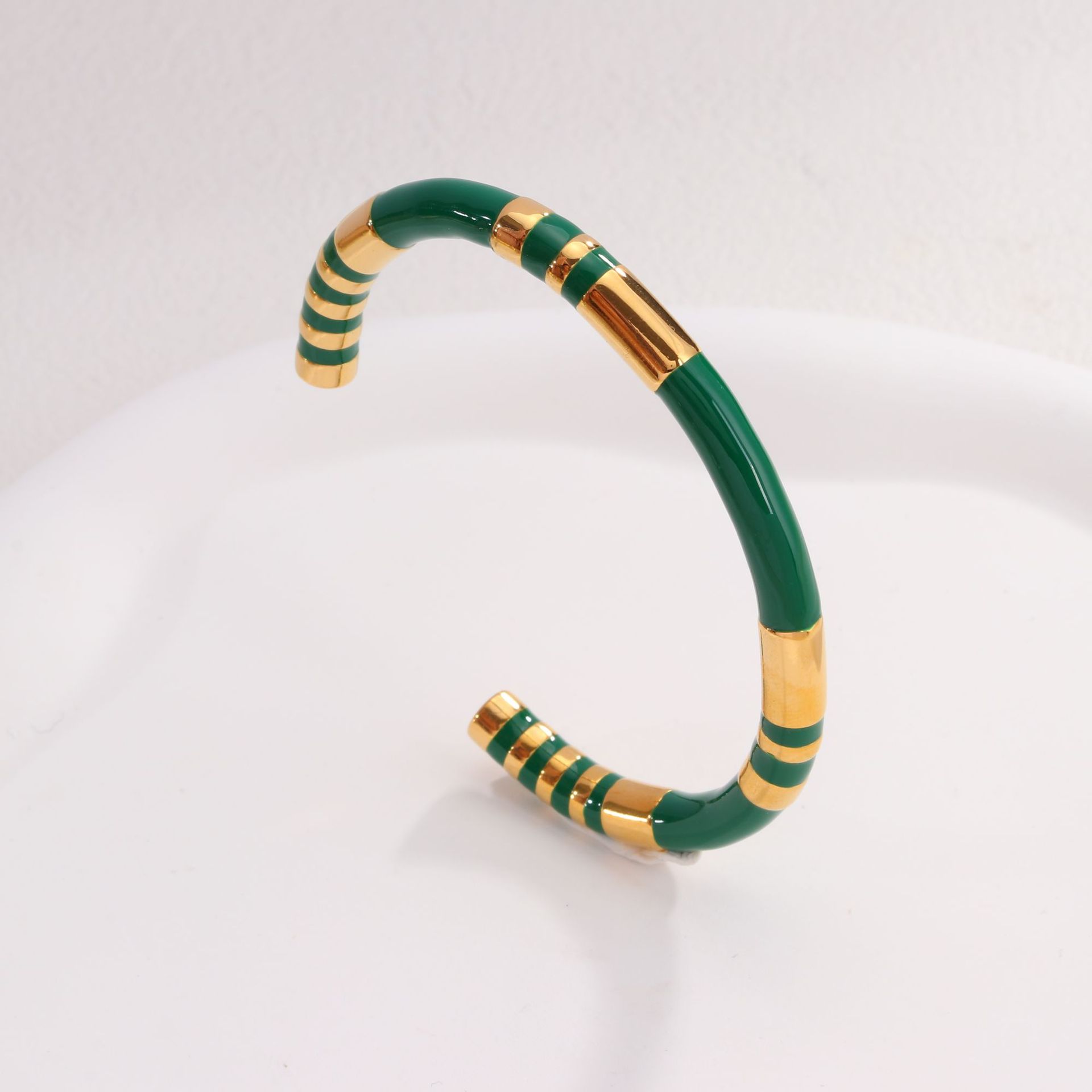 Vintage Bamboo Oil-Drip C-Shaped Enamel Bracelet for Women, Designer Titanium Steel Gold-Plated High-End Ins Resin Factory Wholesale