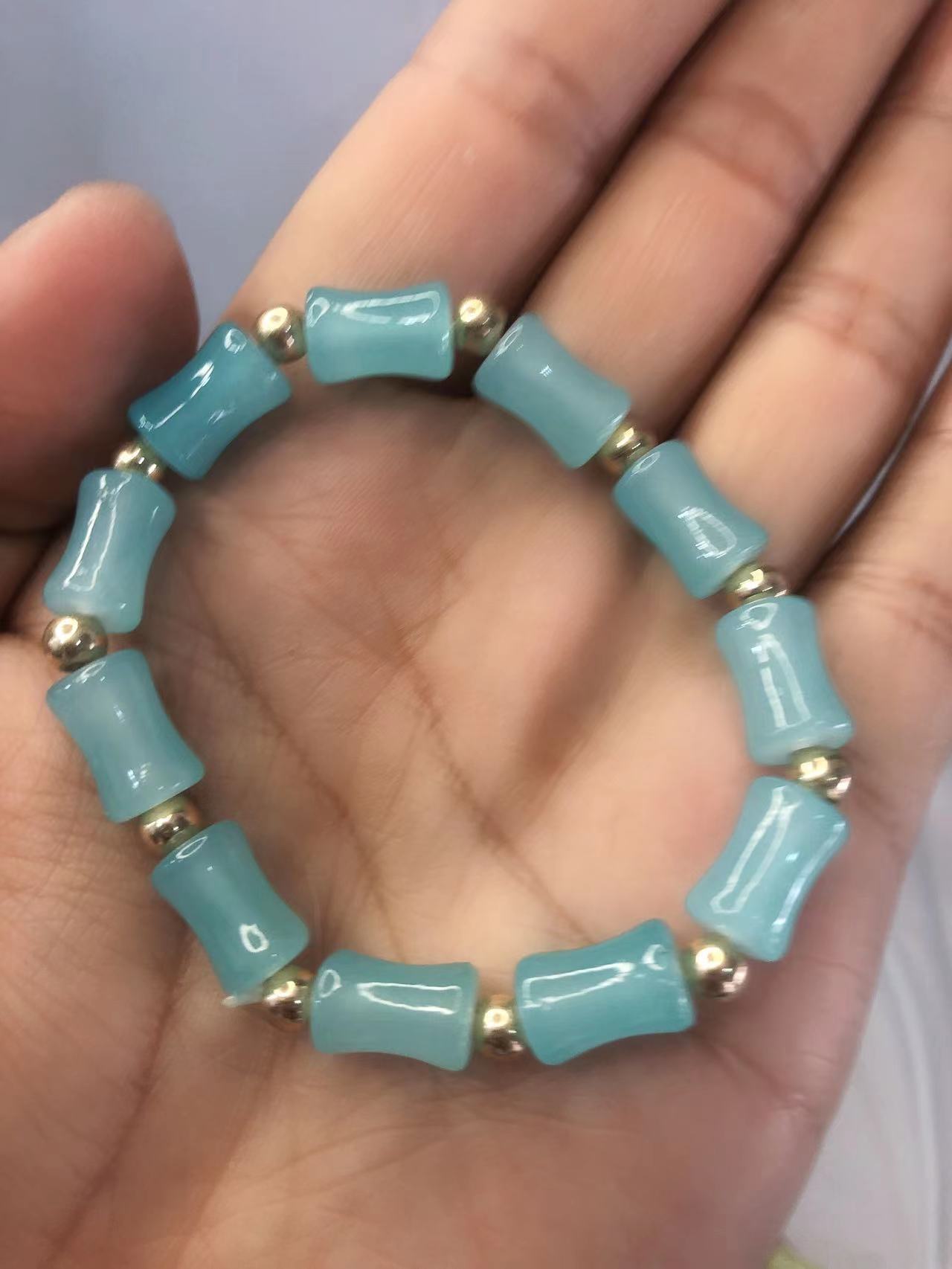 Color: S13 bamboo string gold beads bracelet-aqua blue