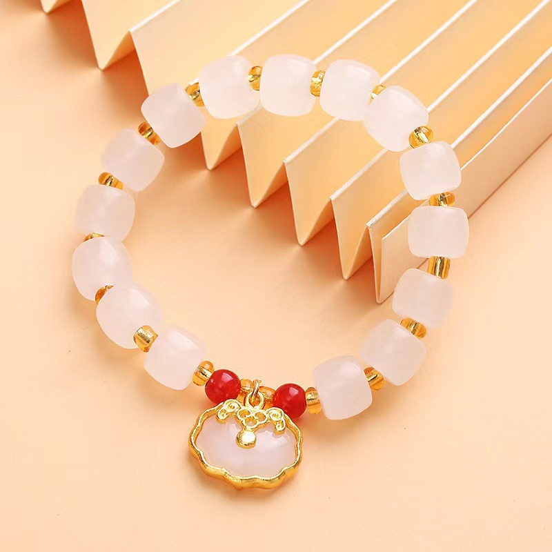 Color: S1 Red Beads Ping An Lock Bracelet-White Lock