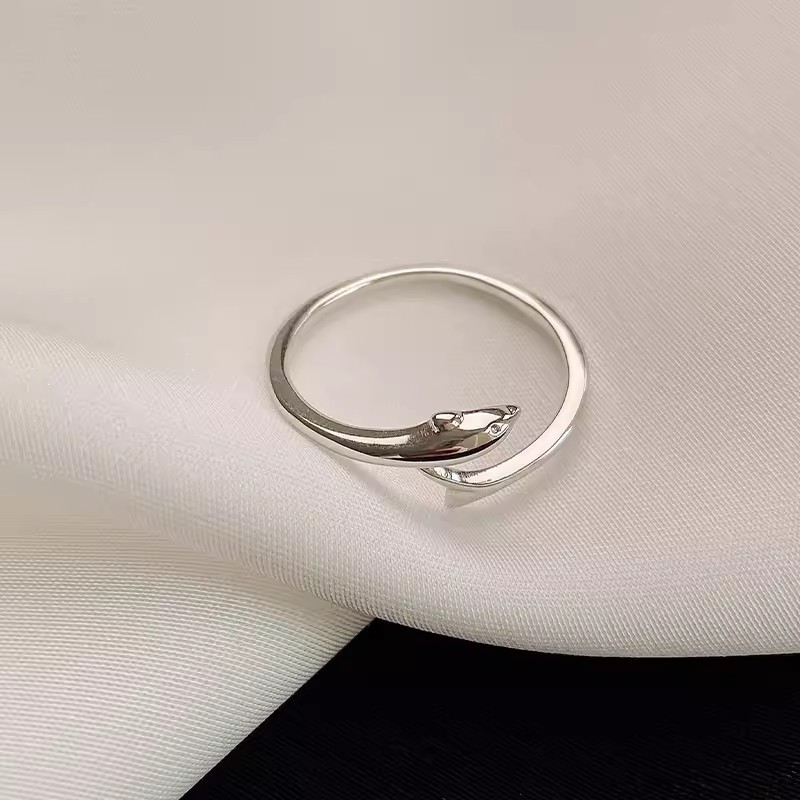 Plain ring dolphin ring female ins style niche design fashion personality open adjustable fishtail ring jewelry