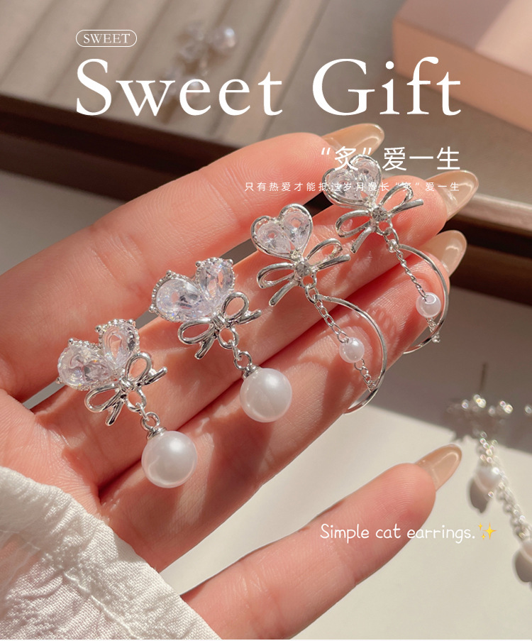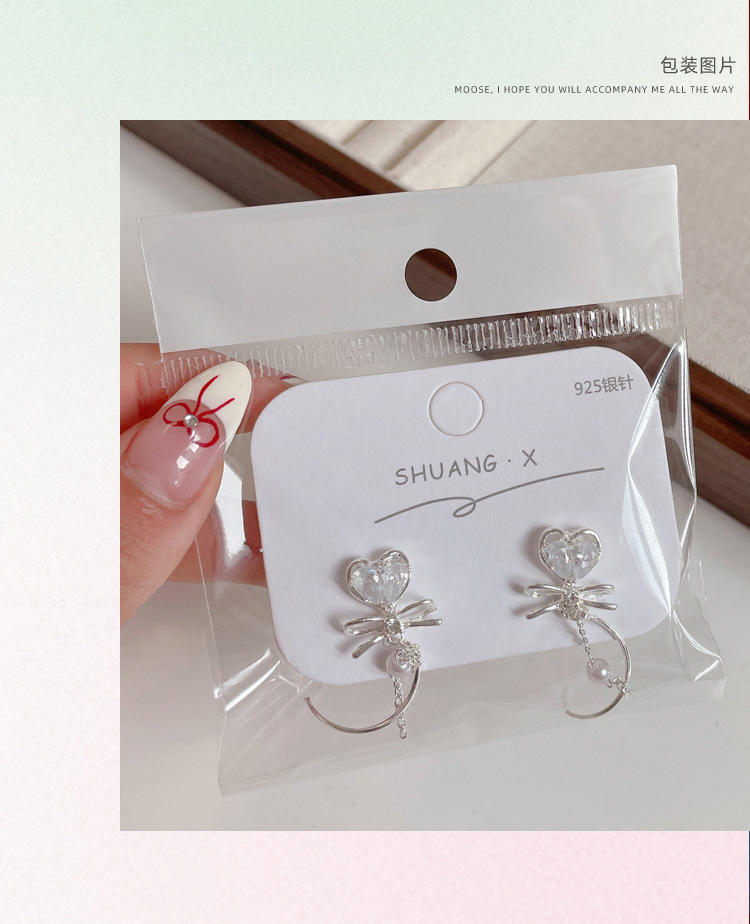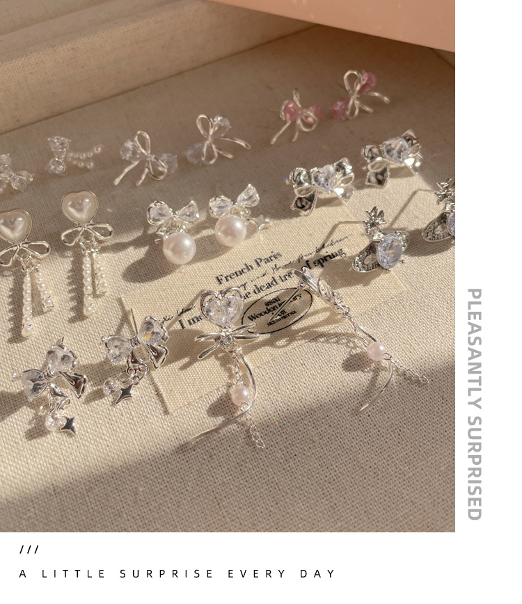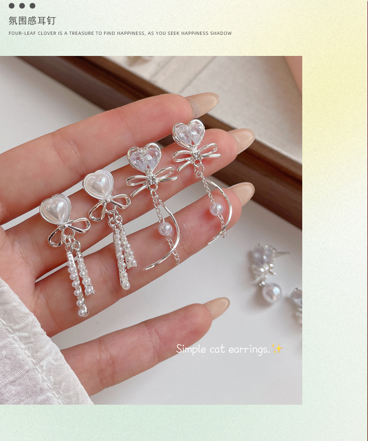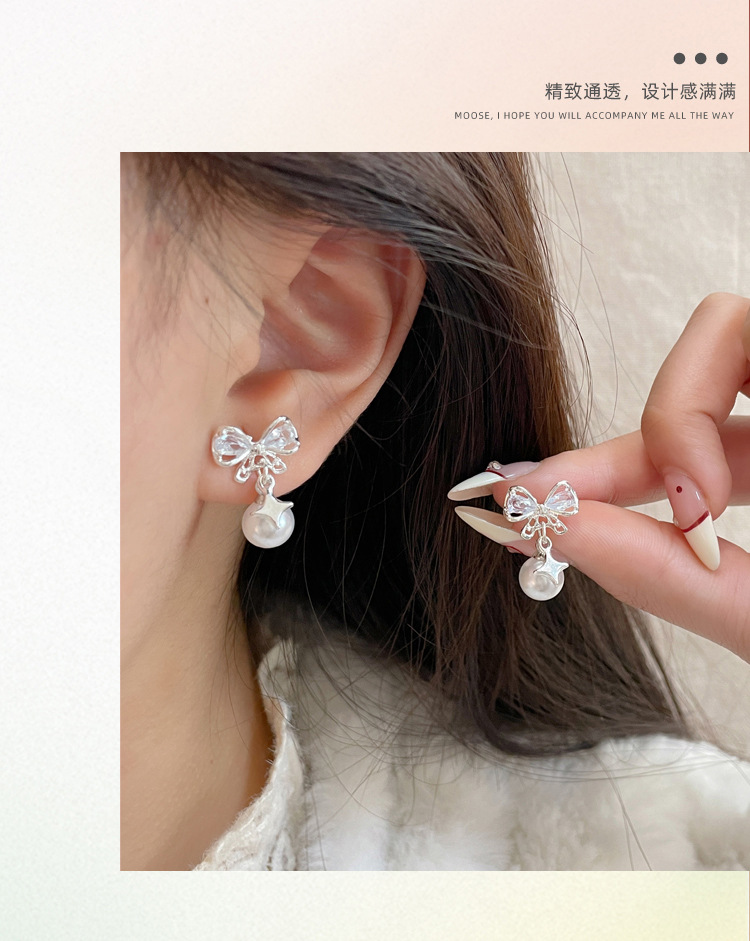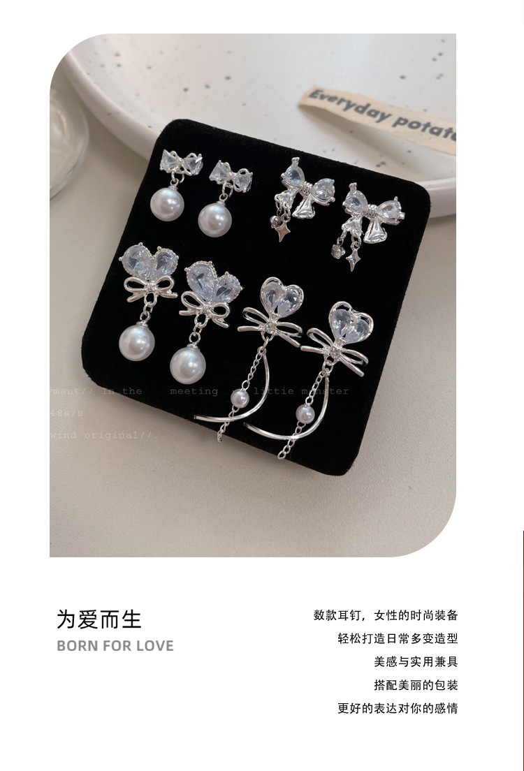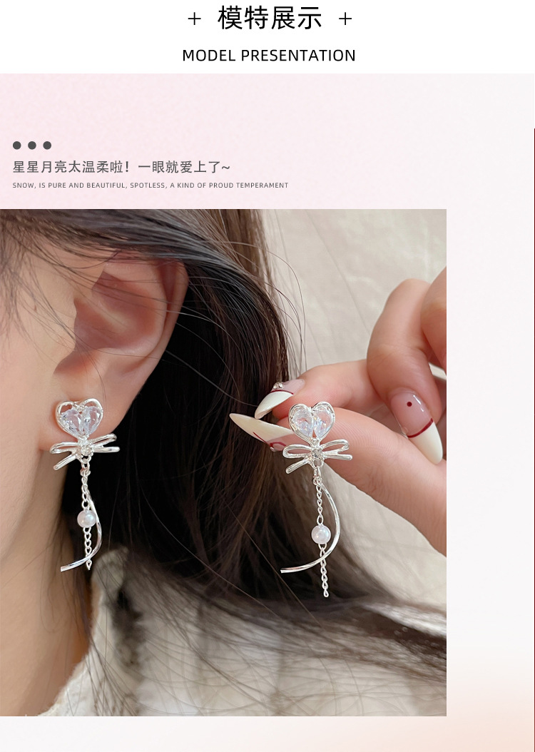 Zircon Bow Earrings Women's Silver Needle Simple Super Fairy Love Earrings Sweet Niche Exquisite Design Sense Earrings