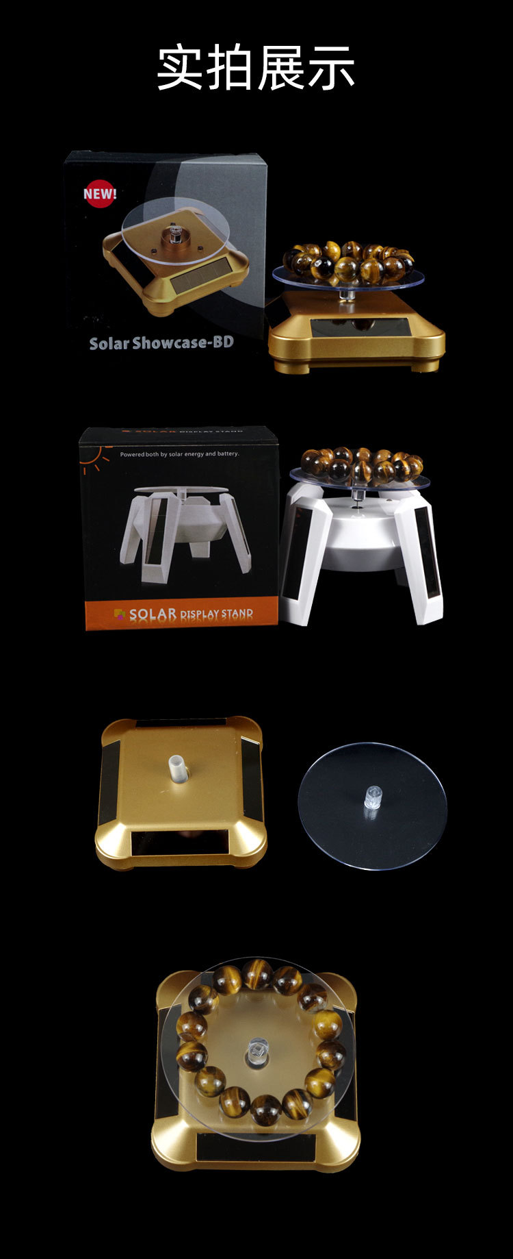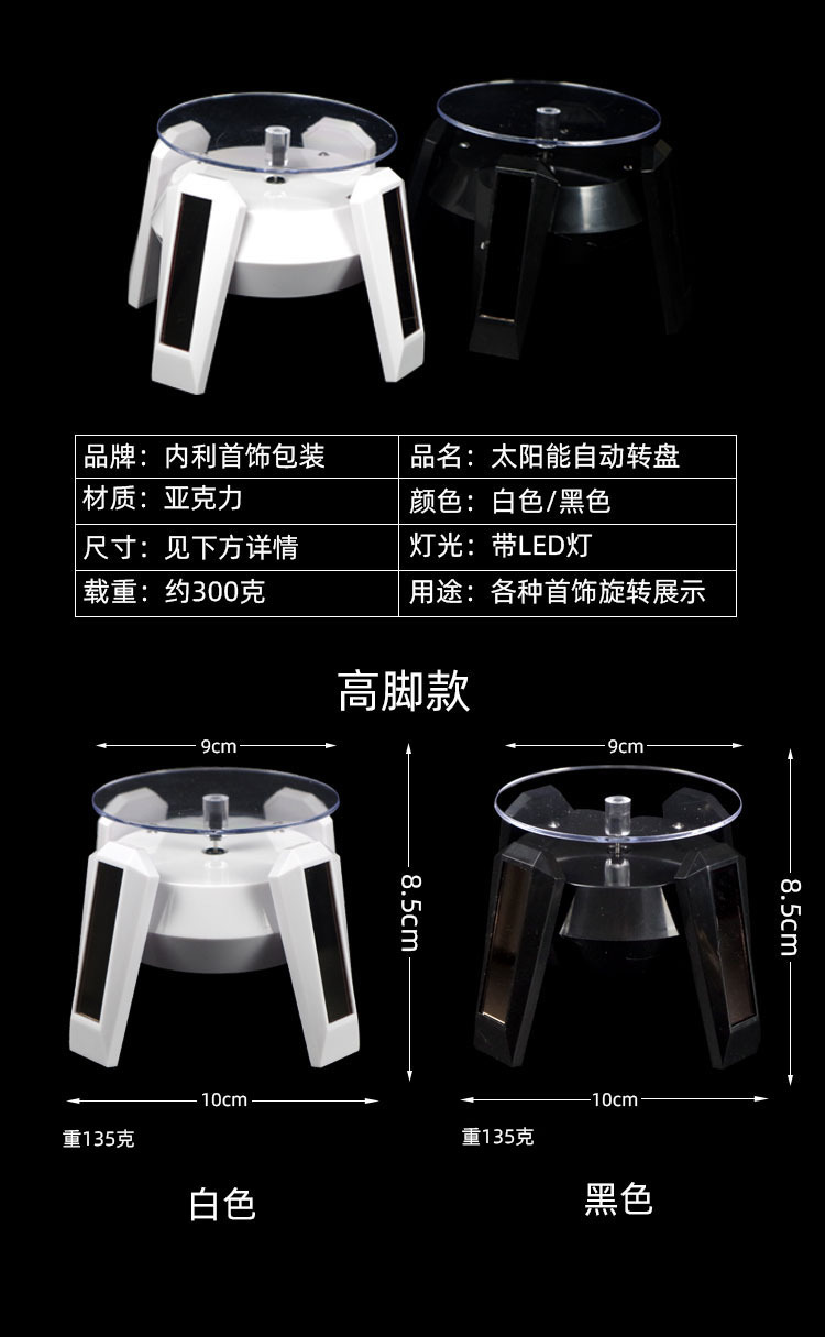 Electric solar light rotating display stand with light bracket turntable base mobile phone hand-made model automatic jewelry