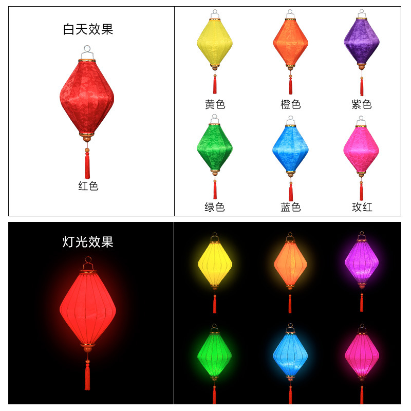 New Year Lantern Festival Silk Printed Lantern Chinese Mid-Autumn Festival Outdoor Scenic Spot Waterproof Walking Street Vietnamese Diamond Lantern