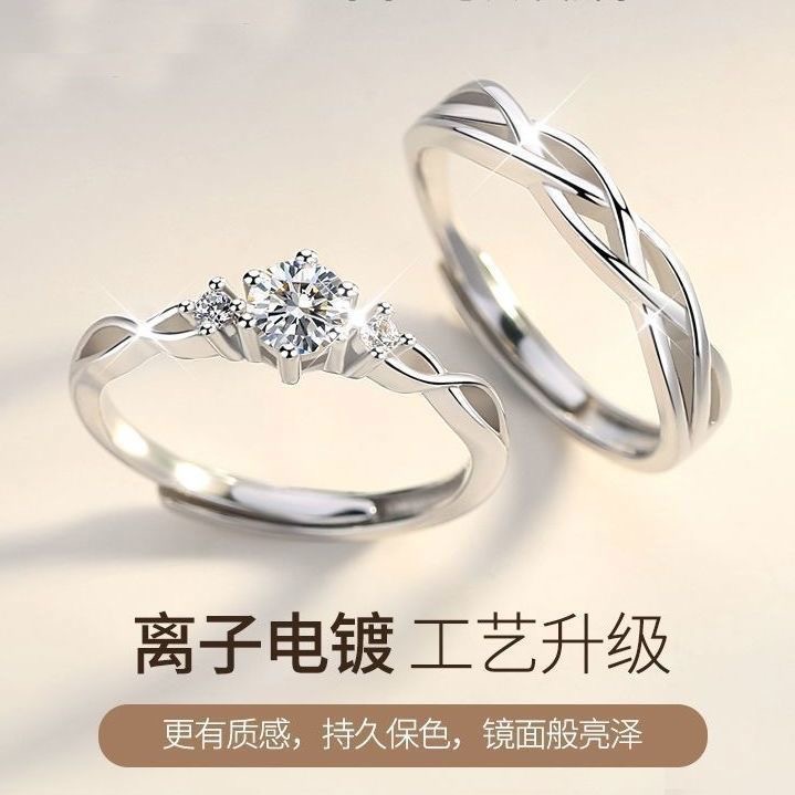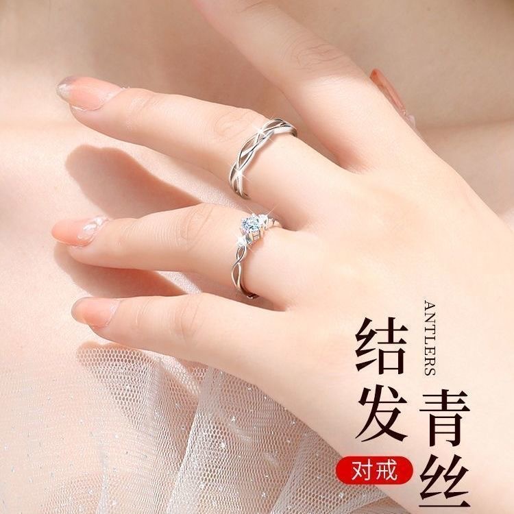 Couple Rings with Green Silk, Men's and Women's Rings, Couple Style, a Pair of Rings with Diamonds, Adjustable, Qixi Festival Gift