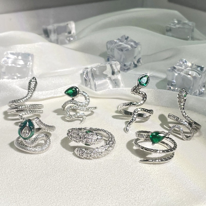 European and American punk fashion cool snake-shaped open ring neutral hip hop fashion personalized index finger ring cold style temperament ring