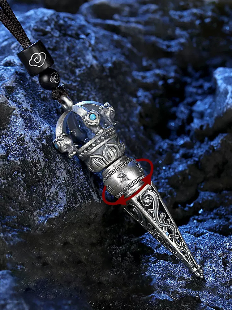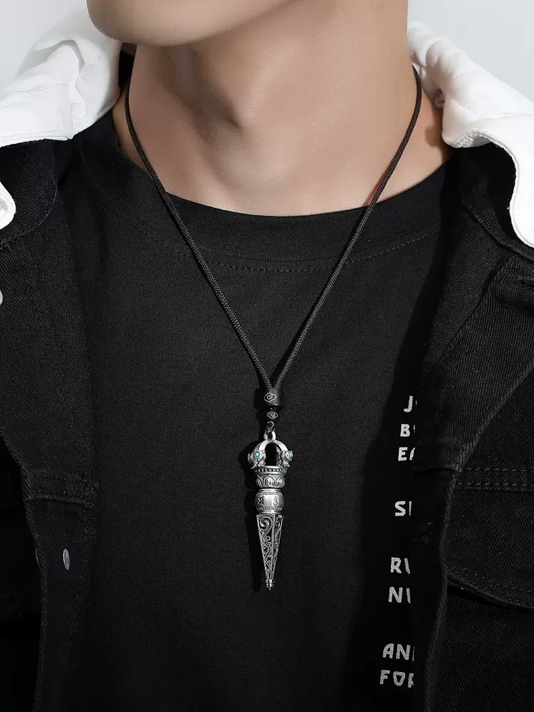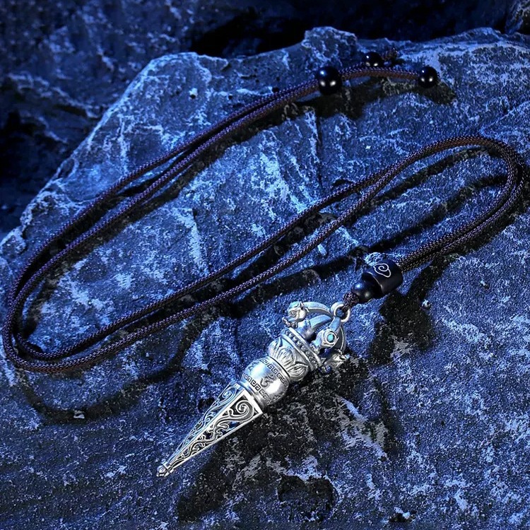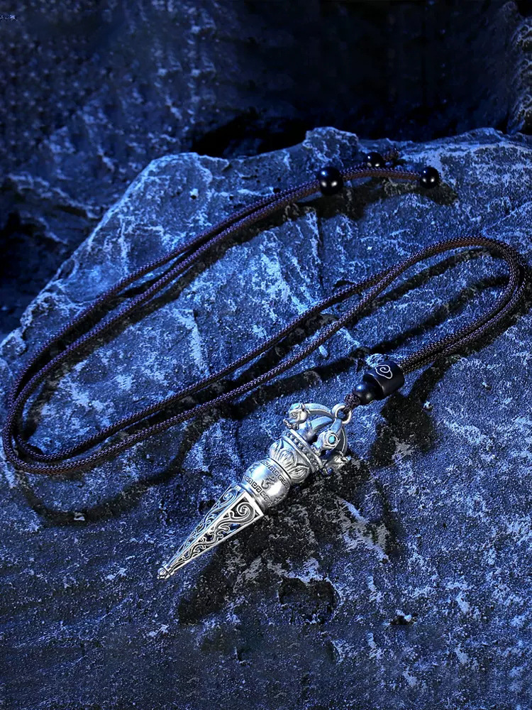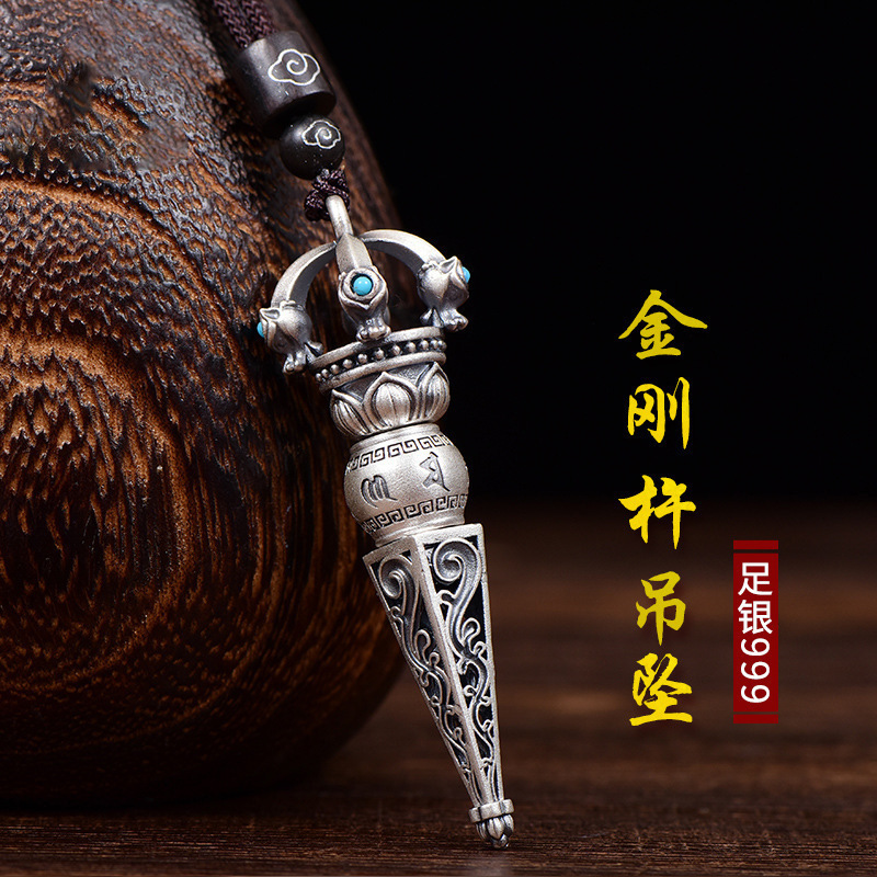 Trendy Sterling Silver 999 Six-Character Mantra Vajra Pendant Magic Pestle Retro Old Men's and Women's Necklace Pendant