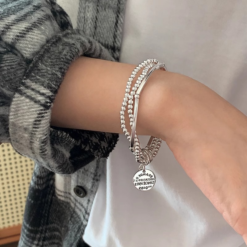 Korean style versatile simple three-layer round pendant bracelet women's fashionable light luxury niche elegant exquisite high-grade bracelet