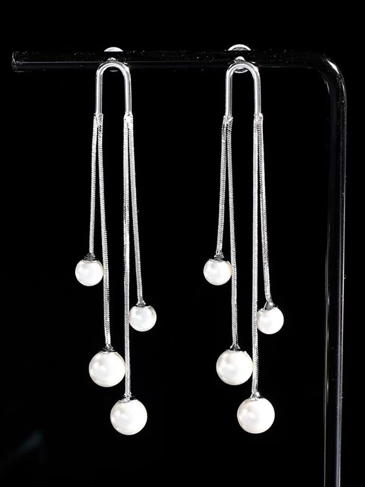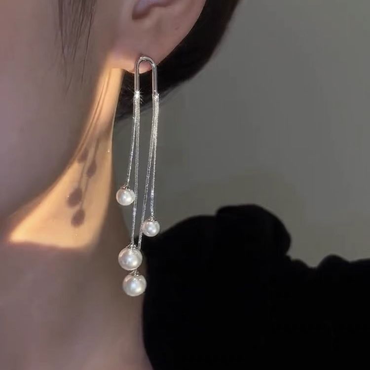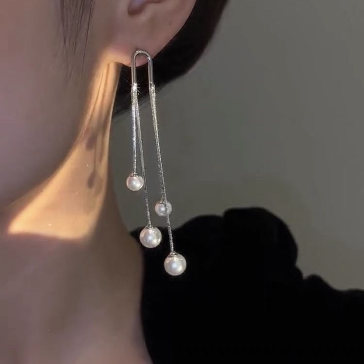 Fashionable simple long tassel pearl earrings 2023 new trendy light luxury niche sense face slimming earrings