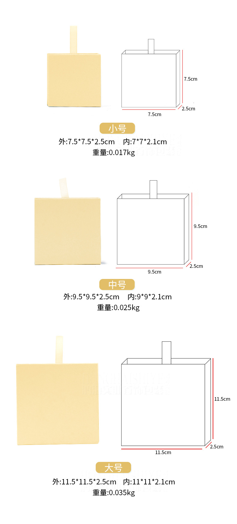 Specifications and models: light yellow-envelope [single box]; 9*9cm (suitable for earrings, bracelet storage)