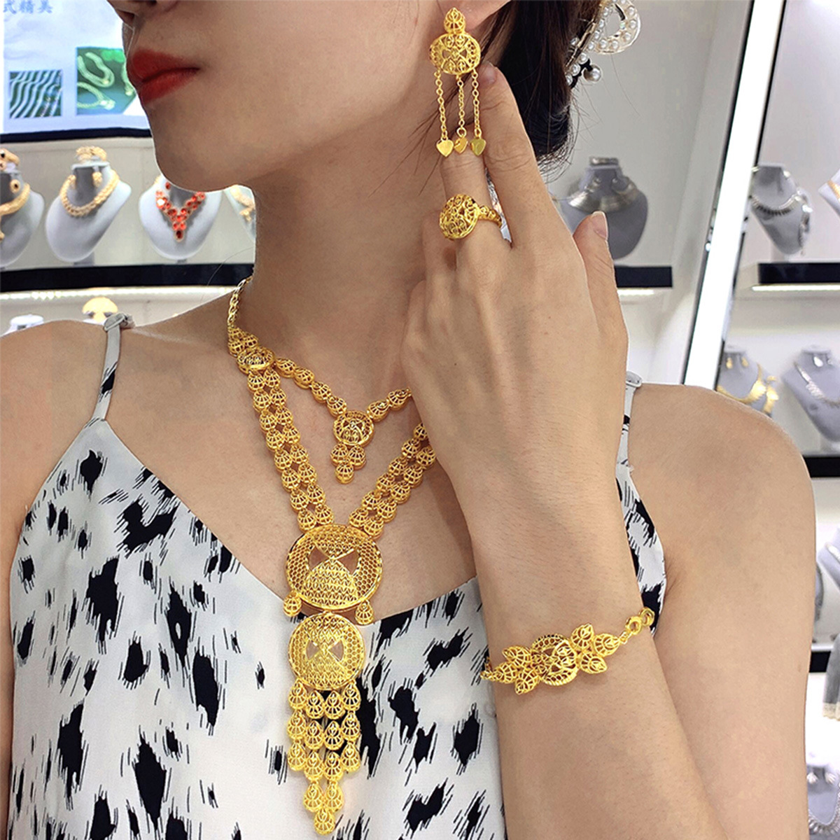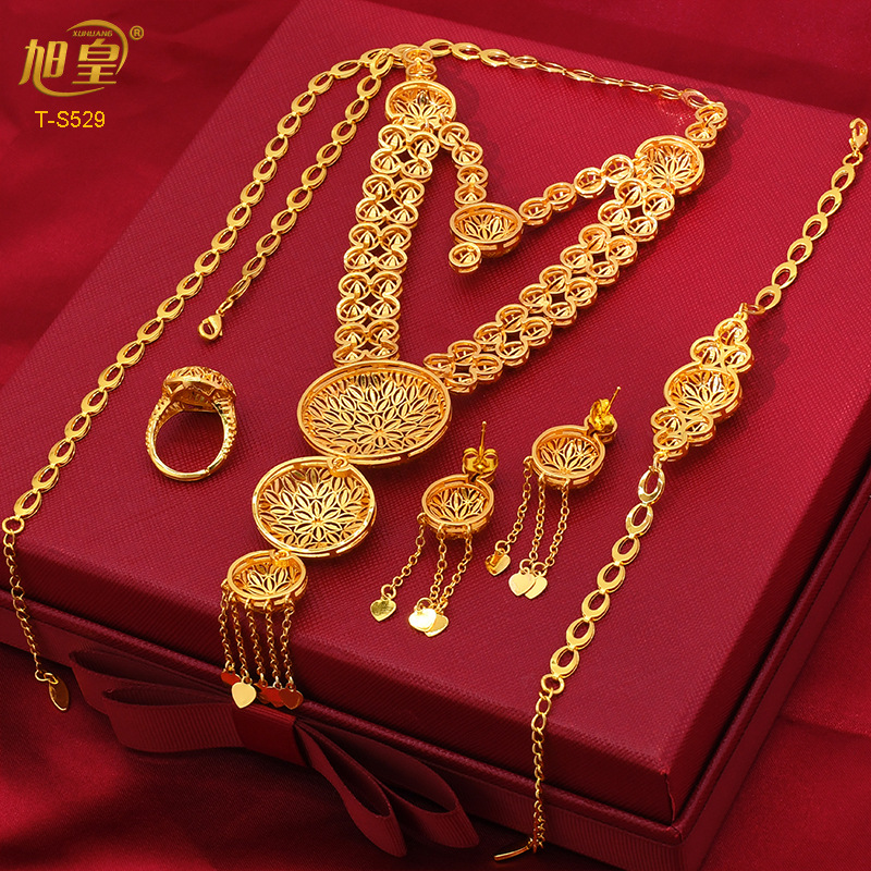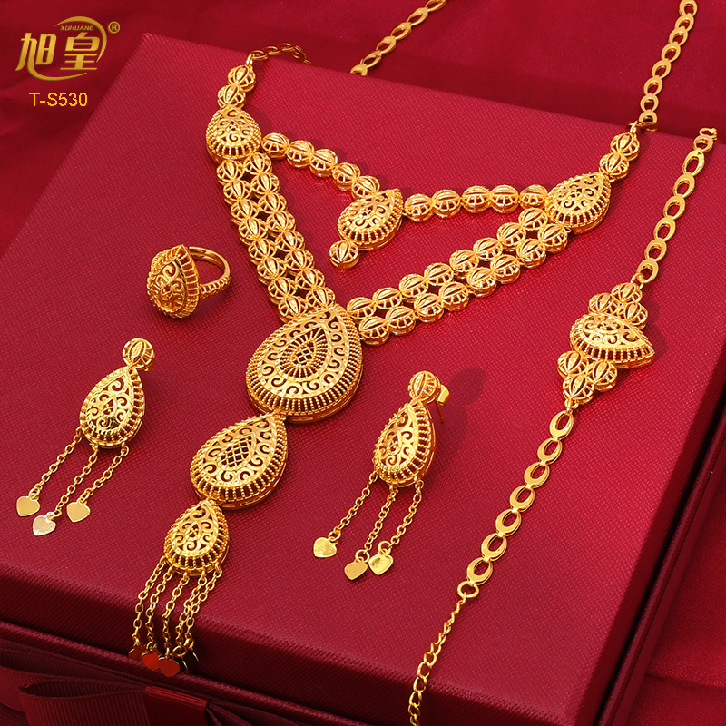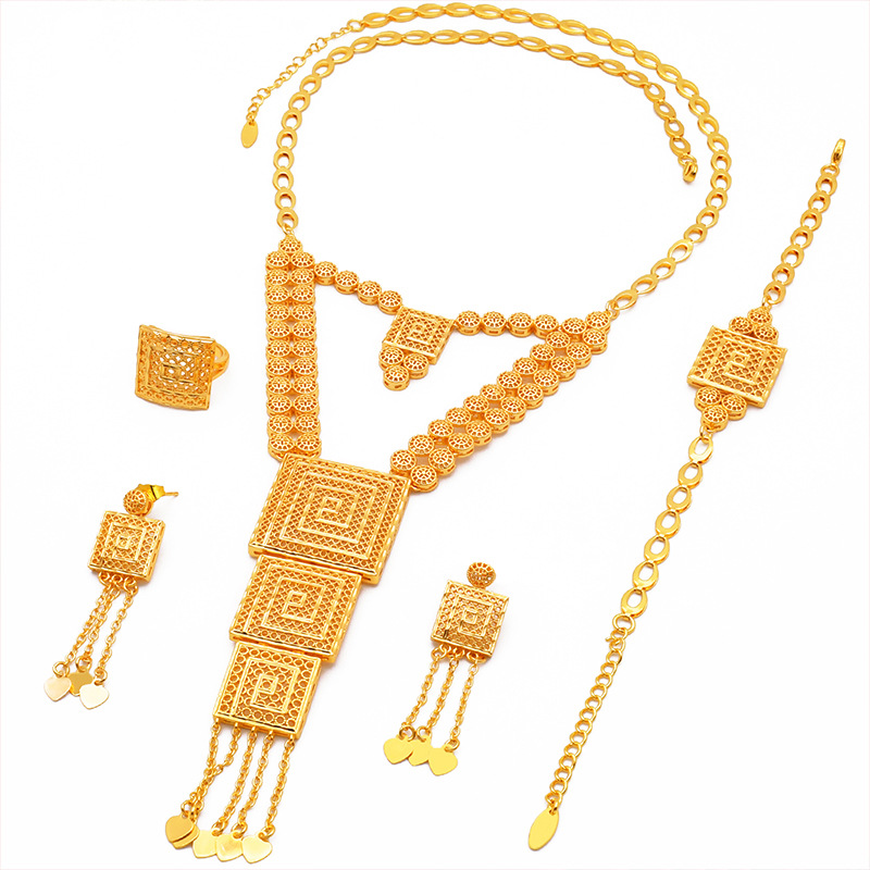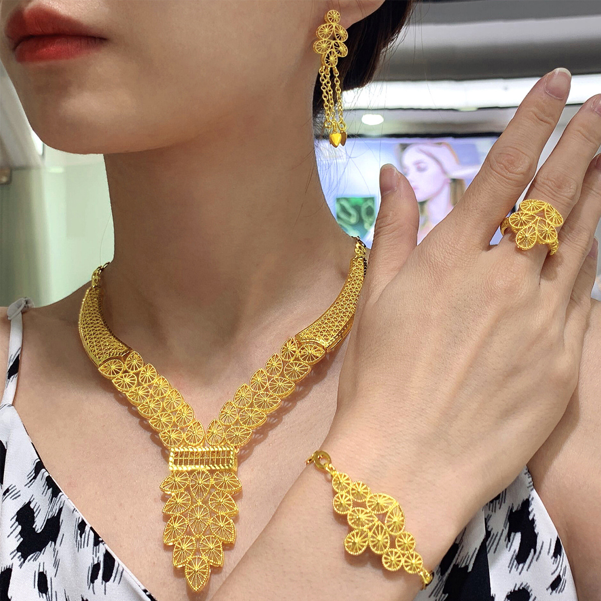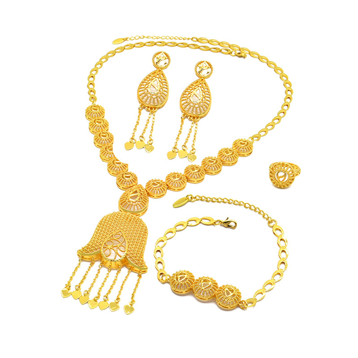 Middle East Dubai wedding jewelry suit ethnic style brass gold plated imitation gold necklace earrings ring bracelet