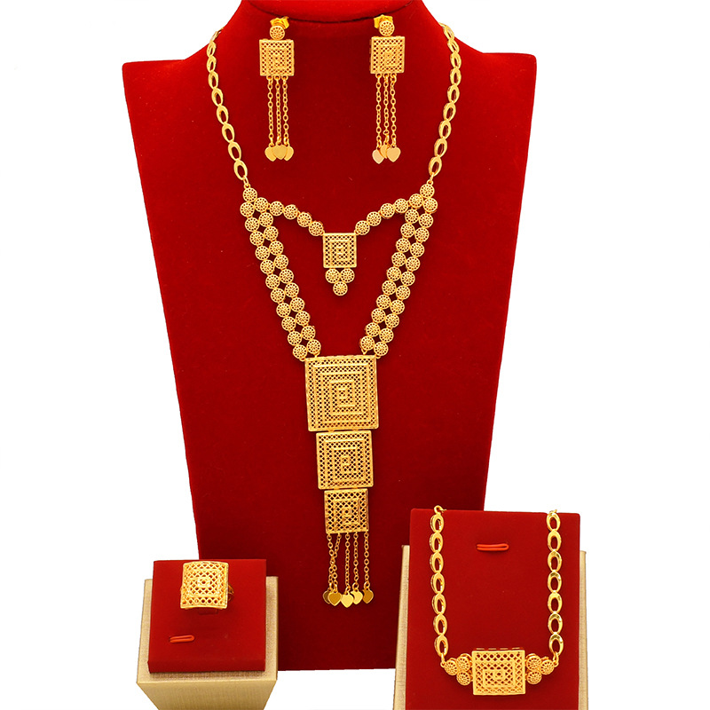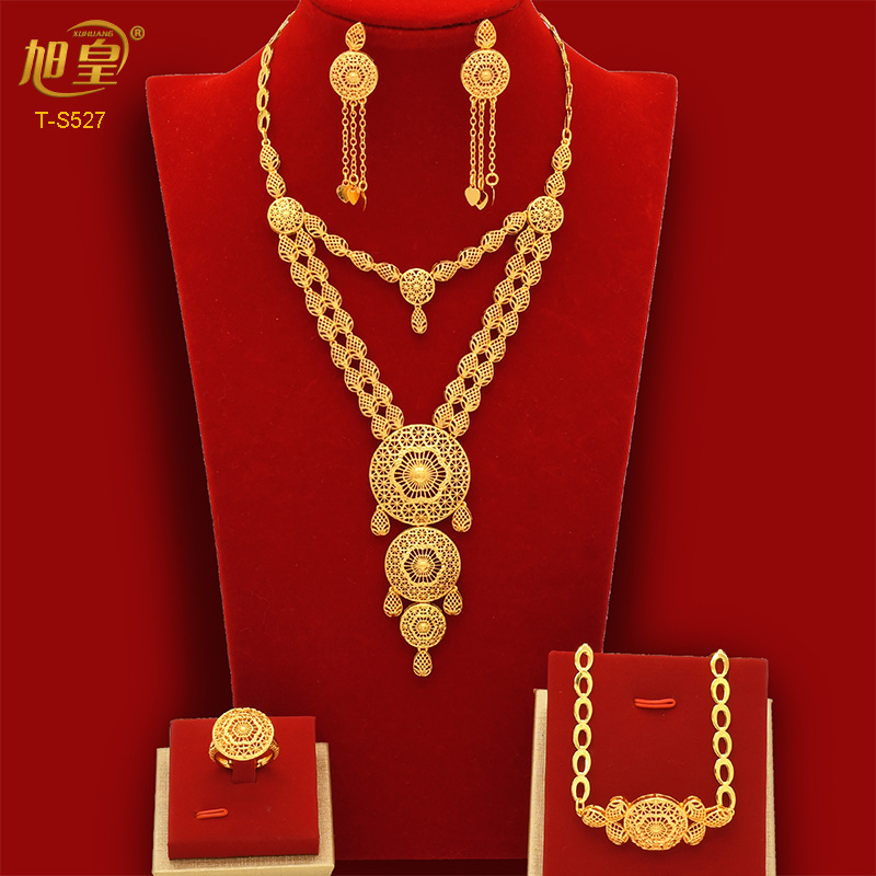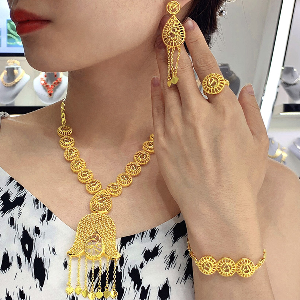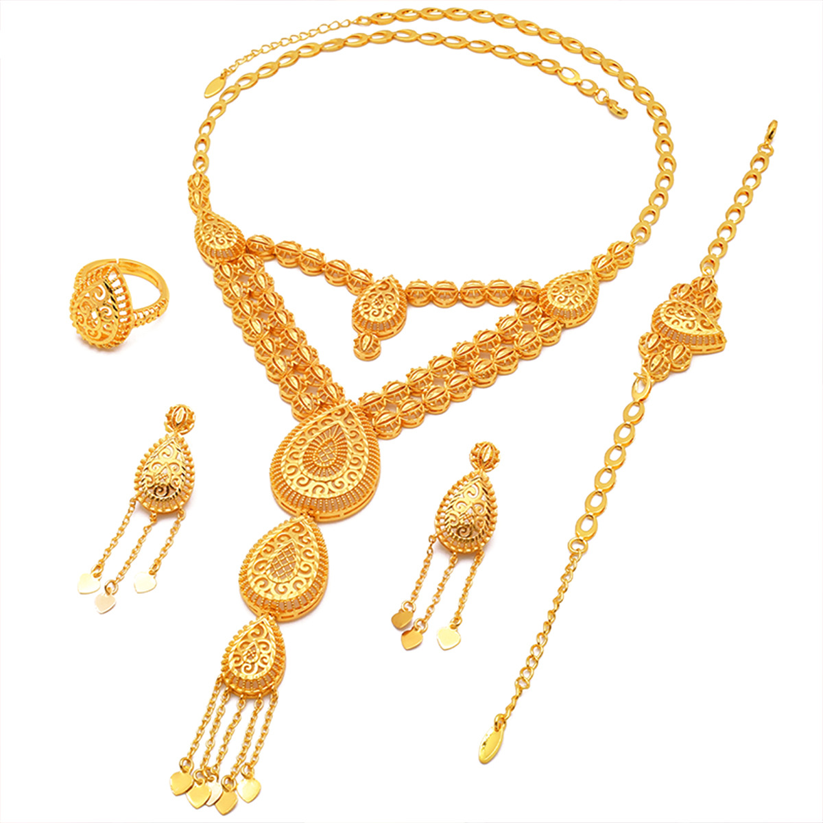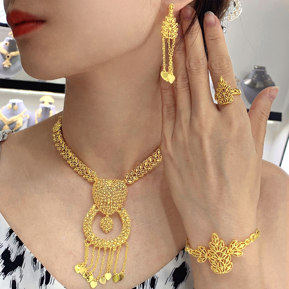 Middle East Dubai wedding jewelry suit ethnic style brass gold plated imitation gold necklace earrings ring bracelet