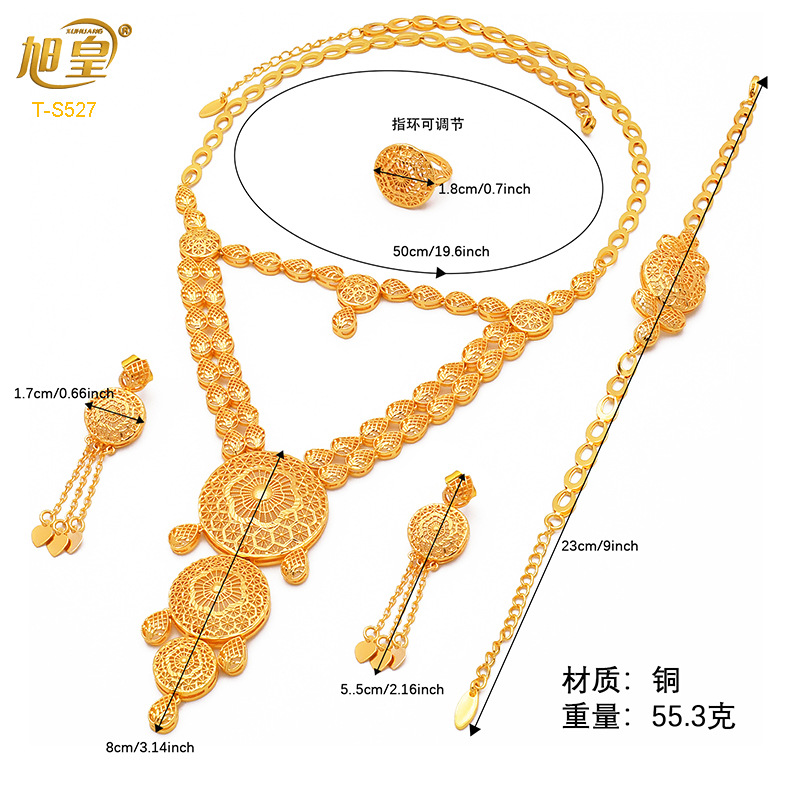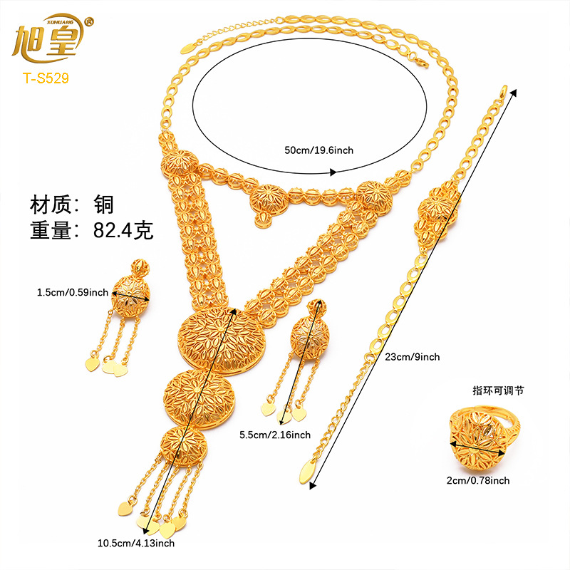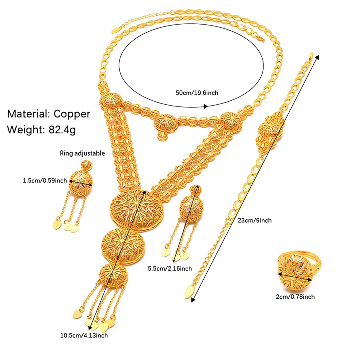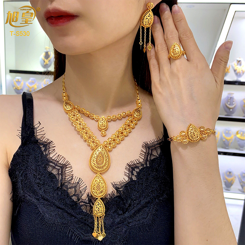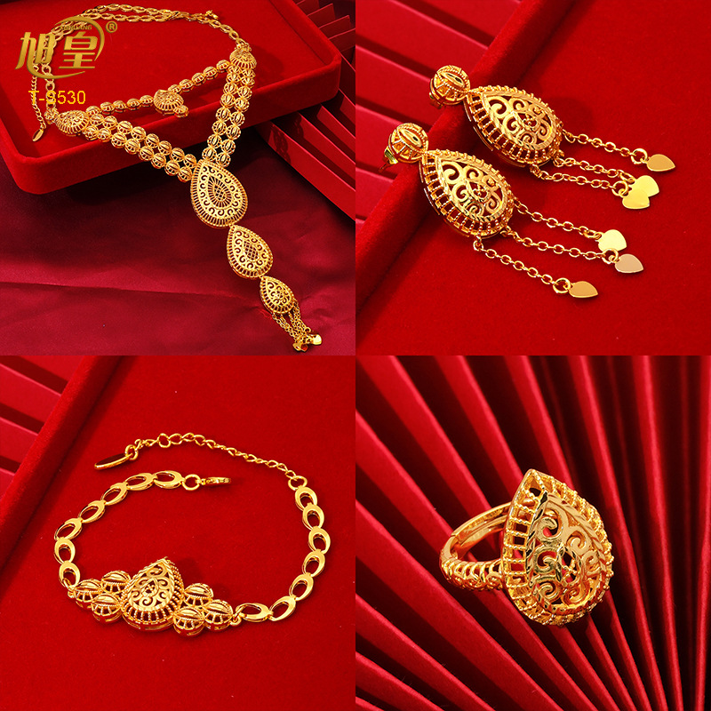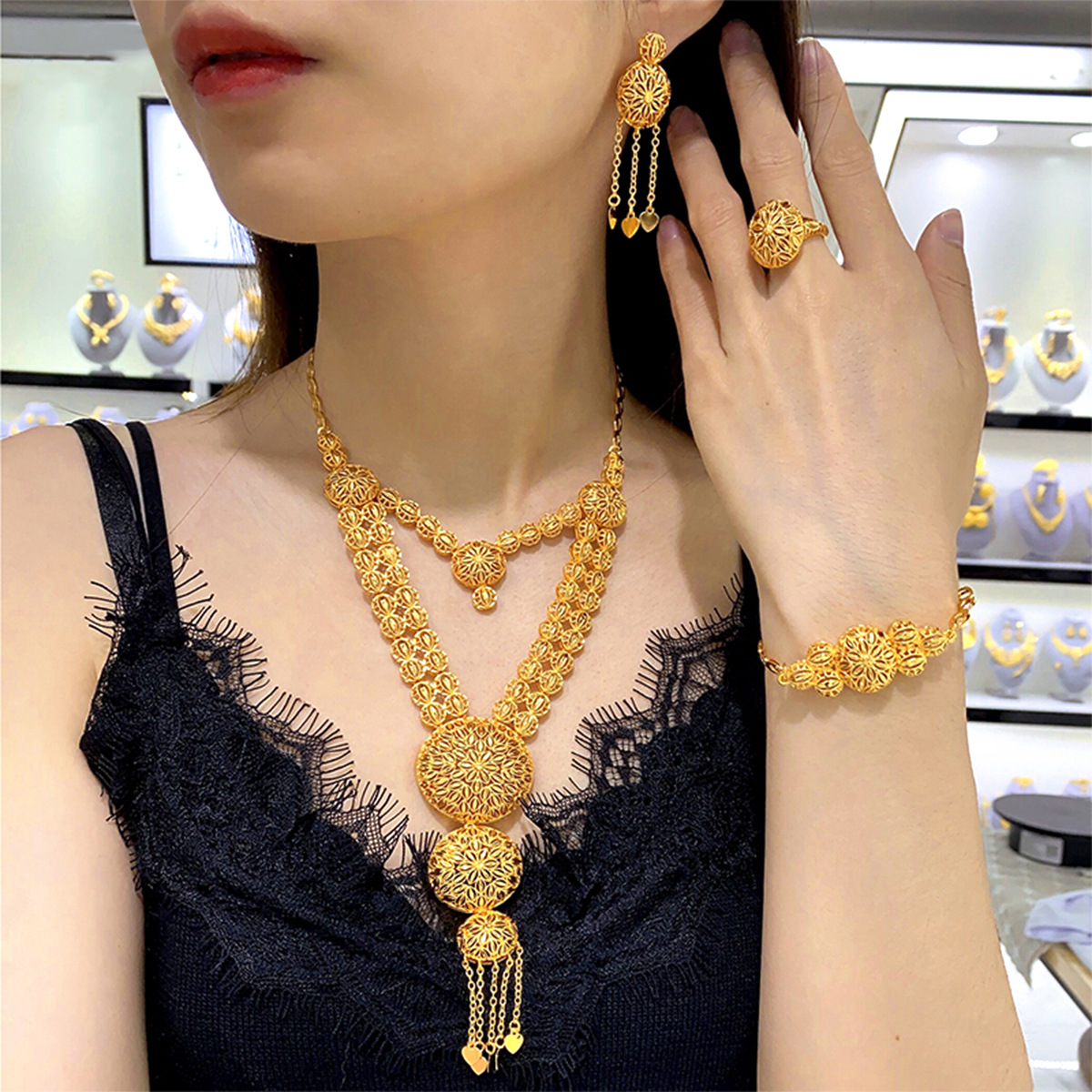 Middle East Dubai wedding jewelry suit ethnic style brass gold plated imitation gold necklace earrings ring bracelet