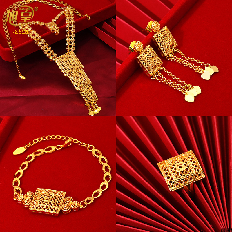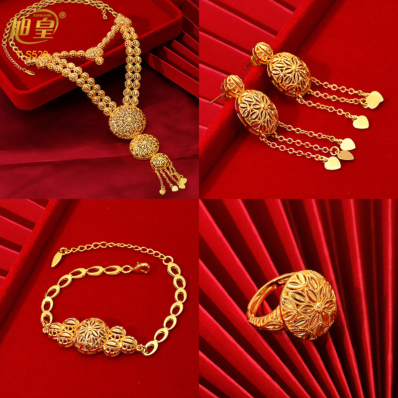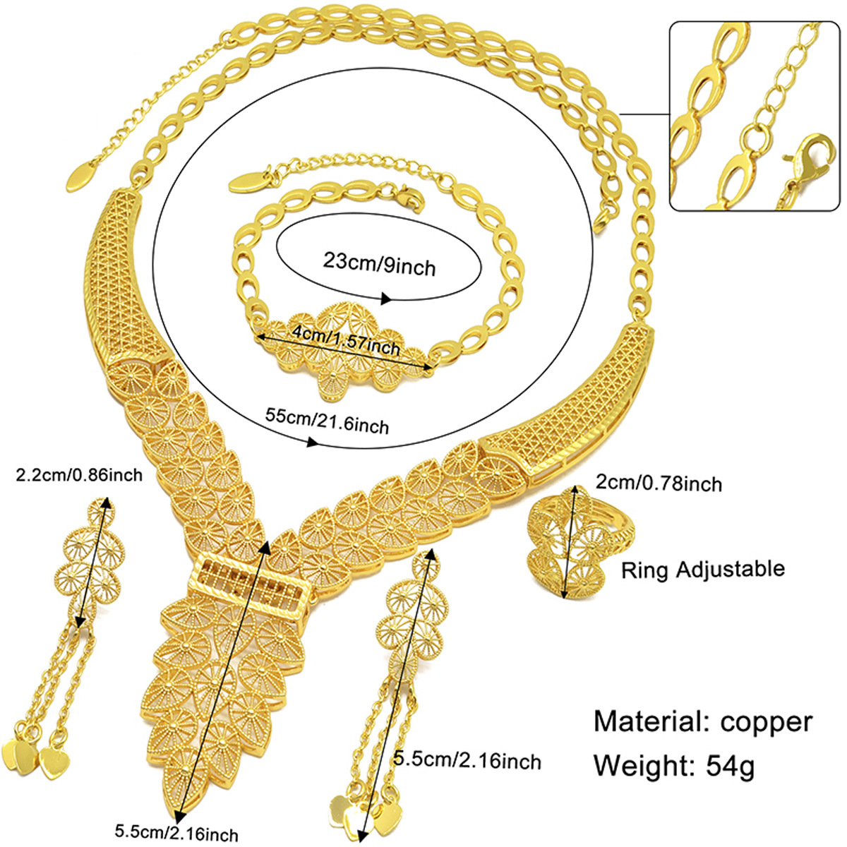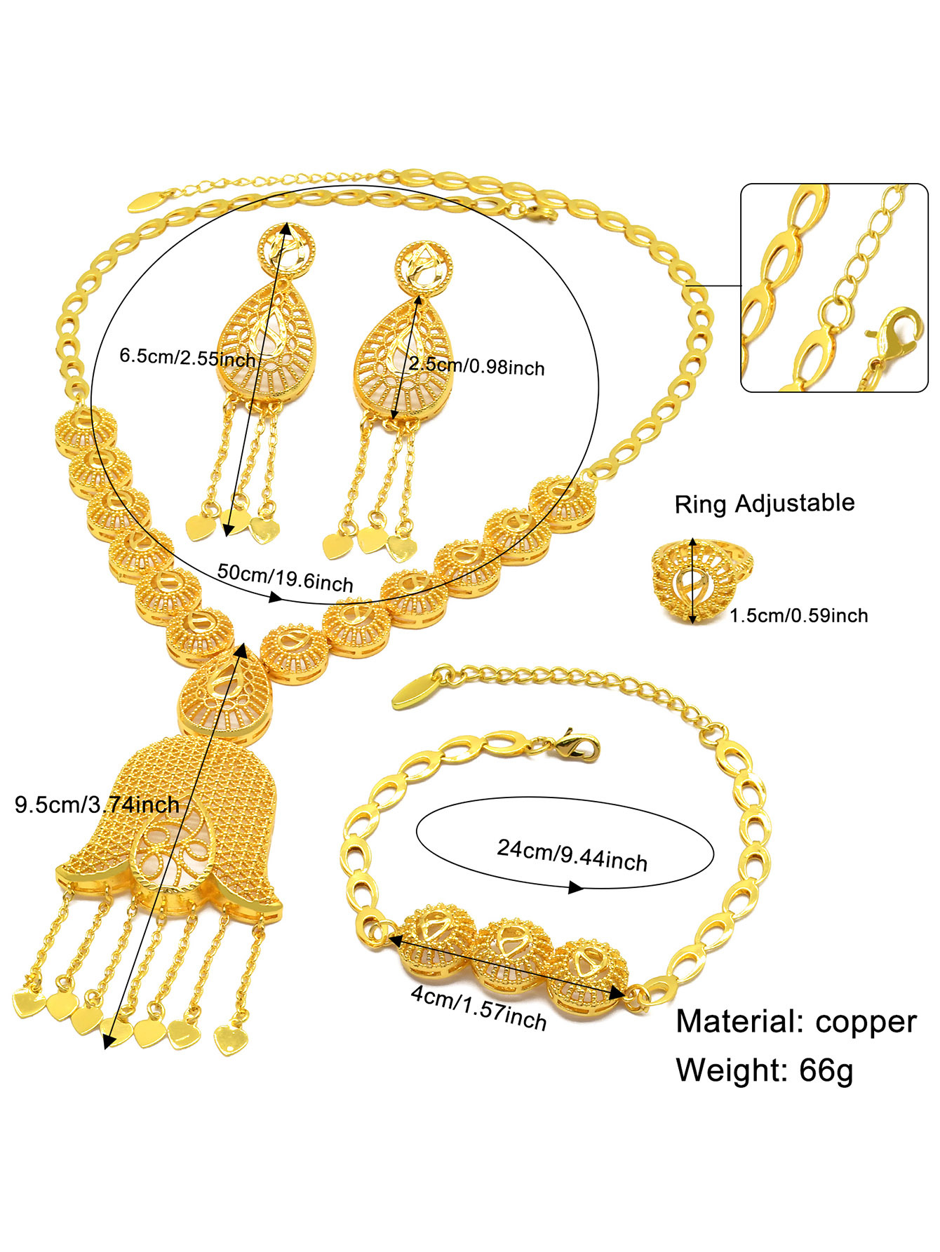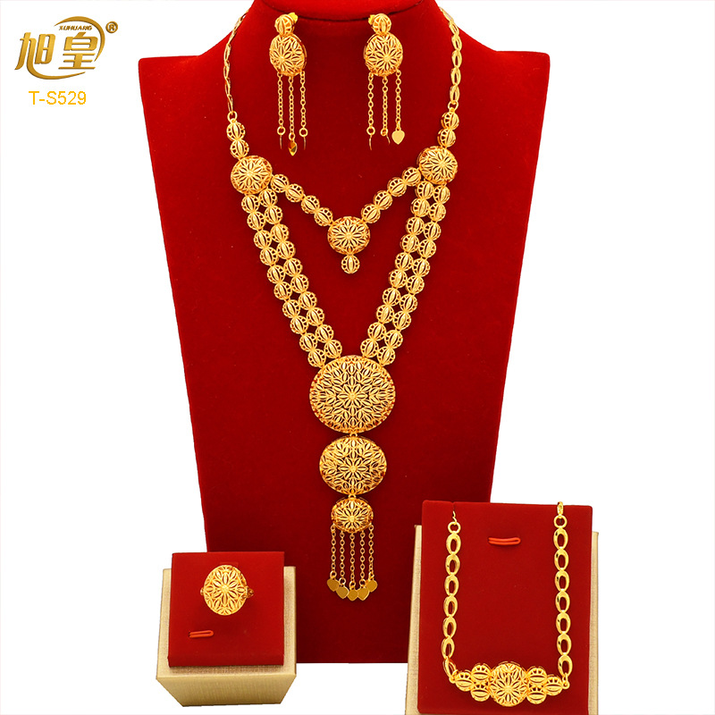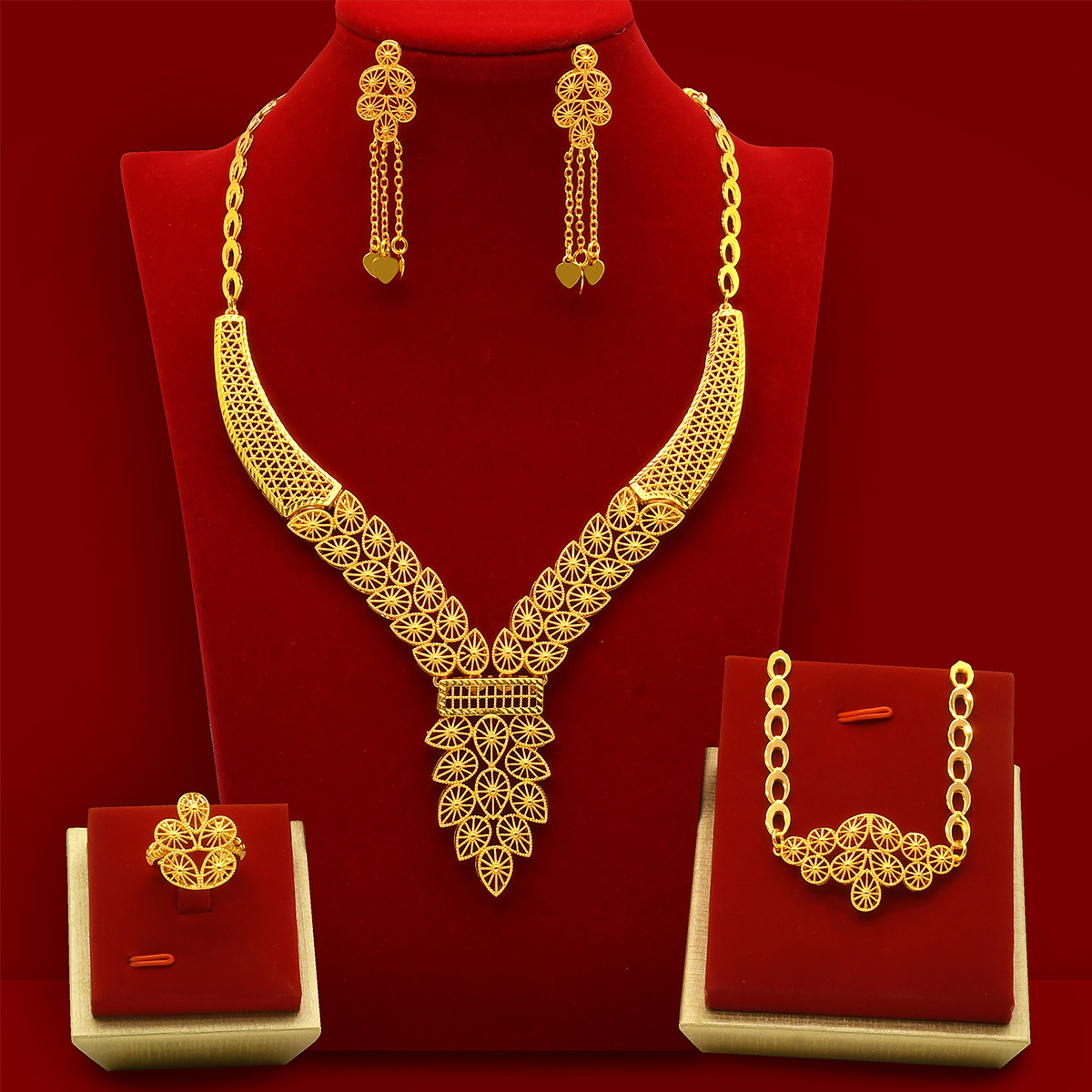 Middle East Dubai wedding jewelry suit ethnic style brass gold plated imitation gold necklace earrings ring bracelet