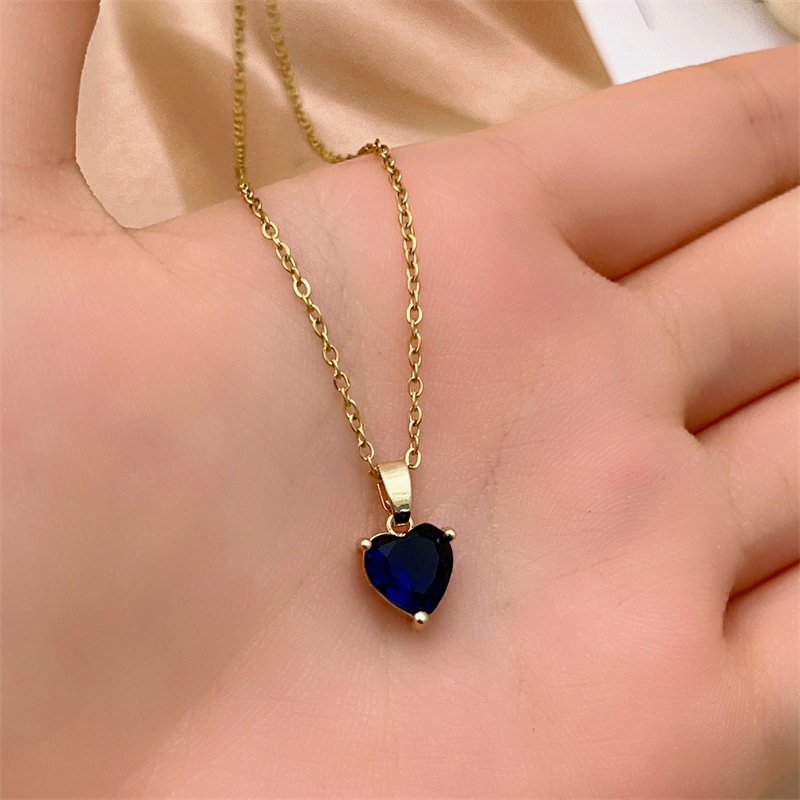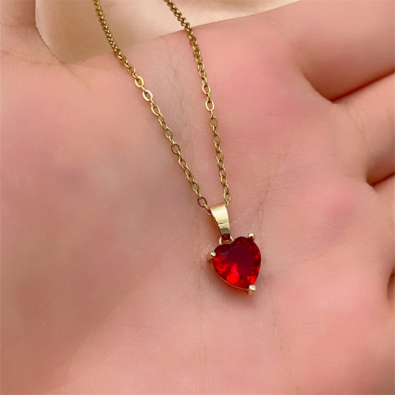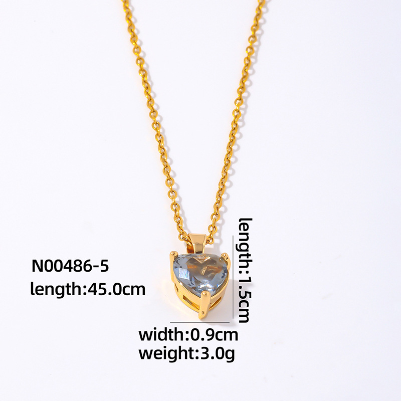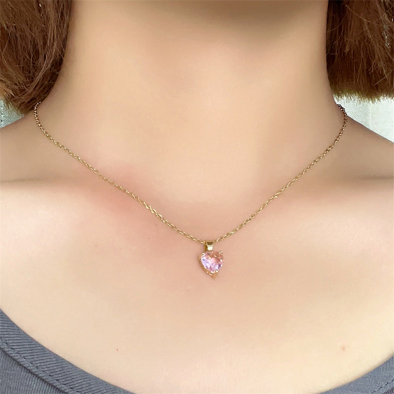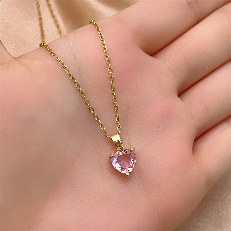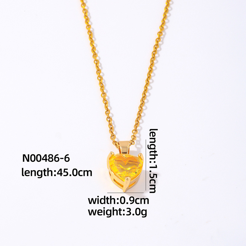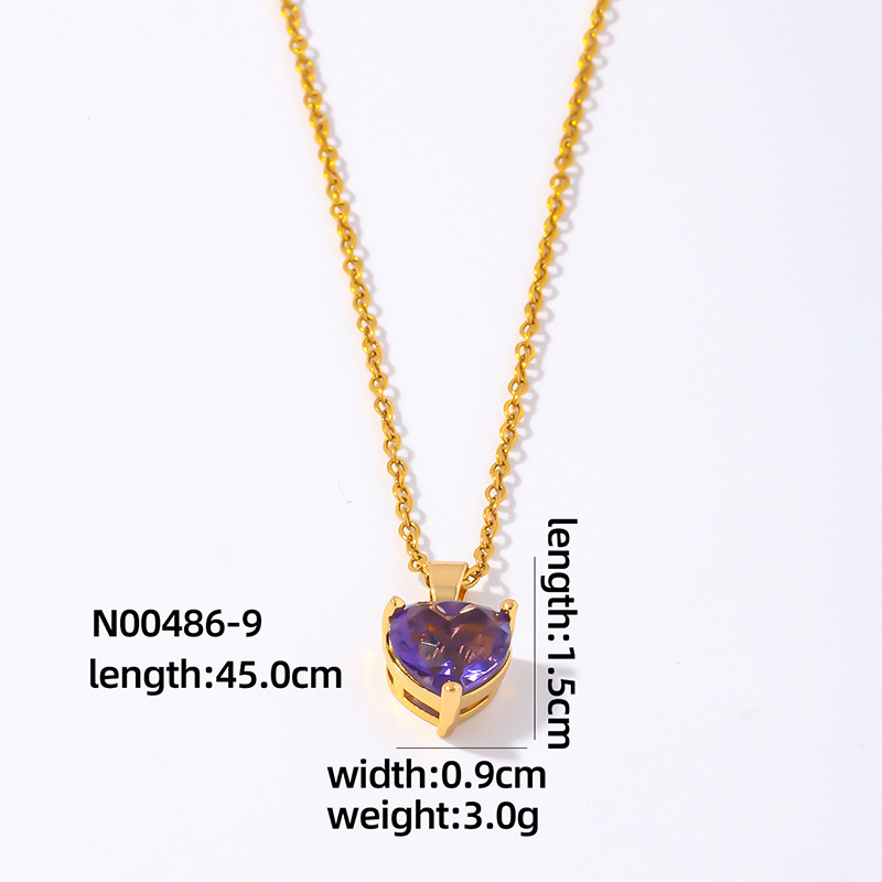 Kashi jewelry European and American cross-border color fashion simple gold-plated titanium steel heart-shaped zircon birthday Stone Love necklace