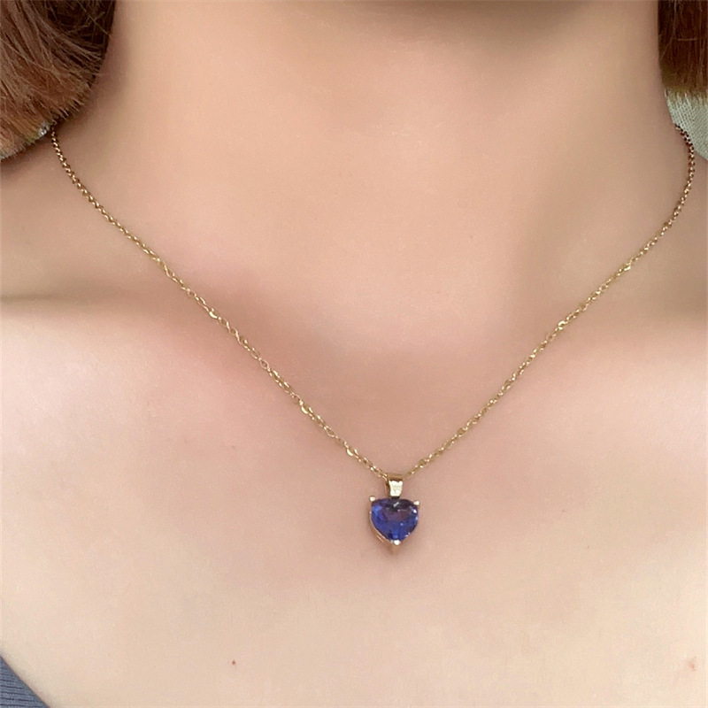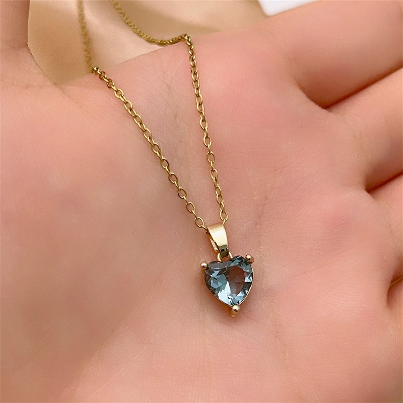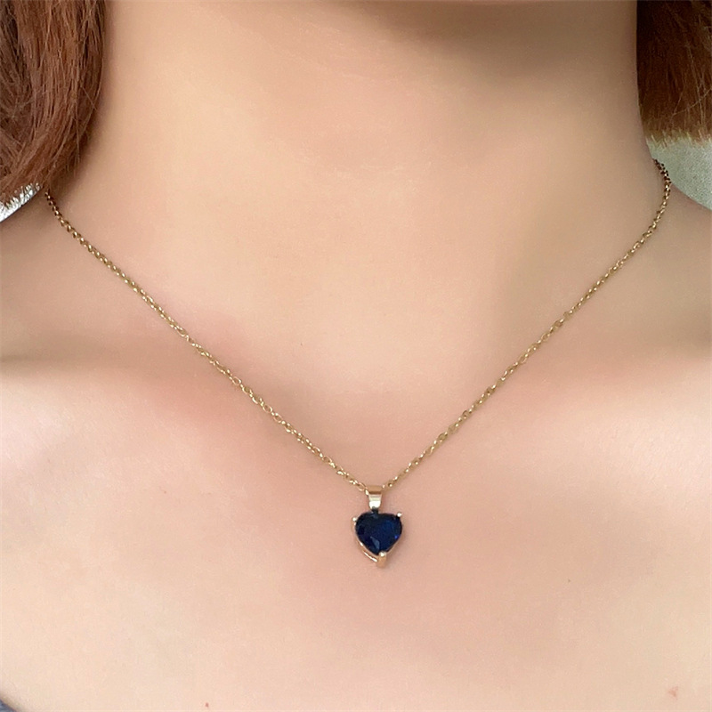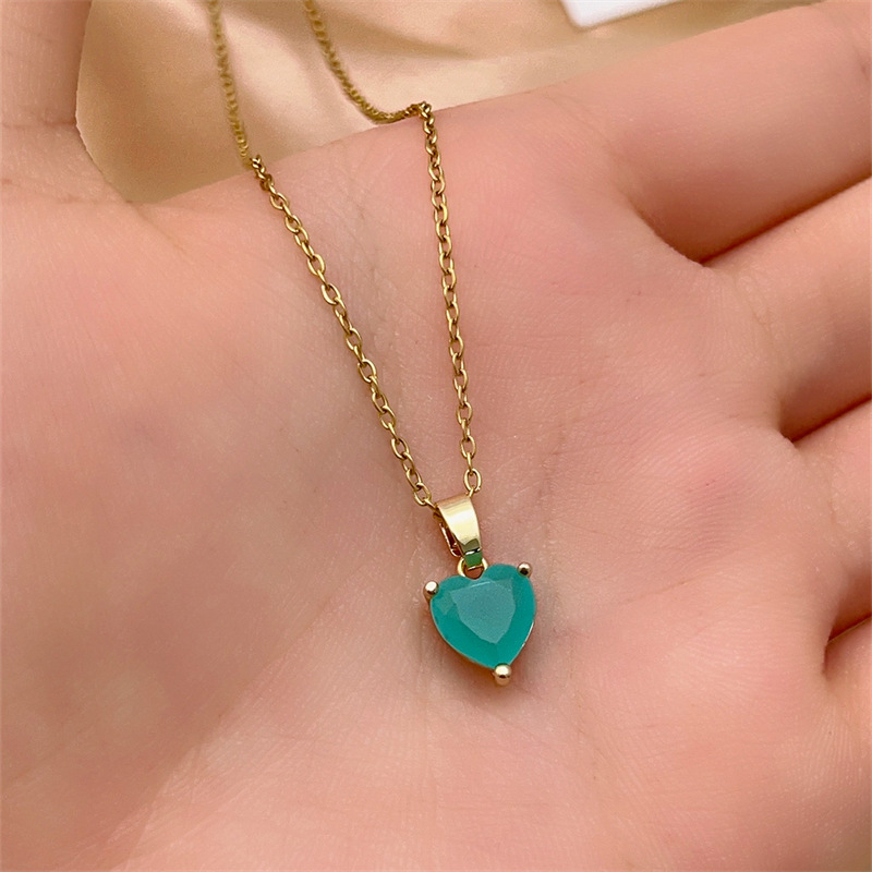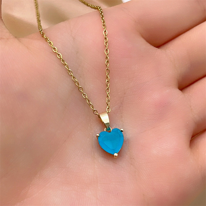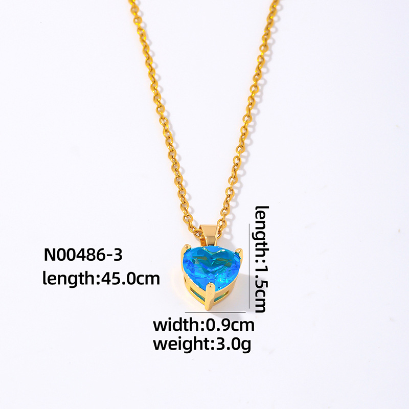Kashi jewelry European and American cross-border color fashion simple gold-plated titanium steel heart-shaped zircon birthday Stone Love necklace