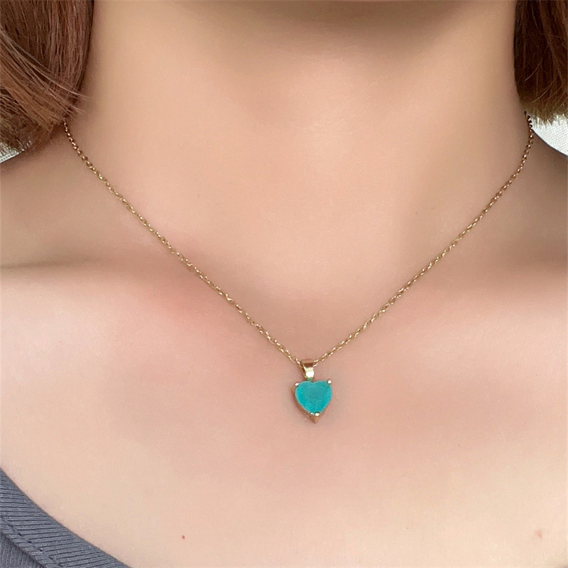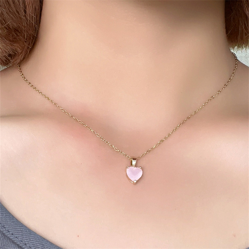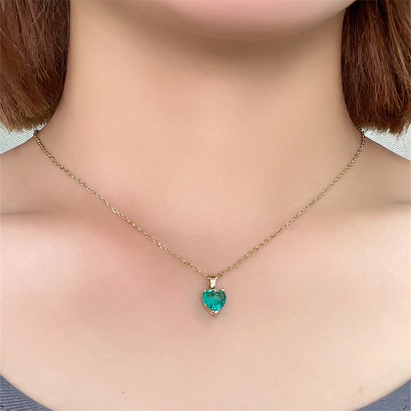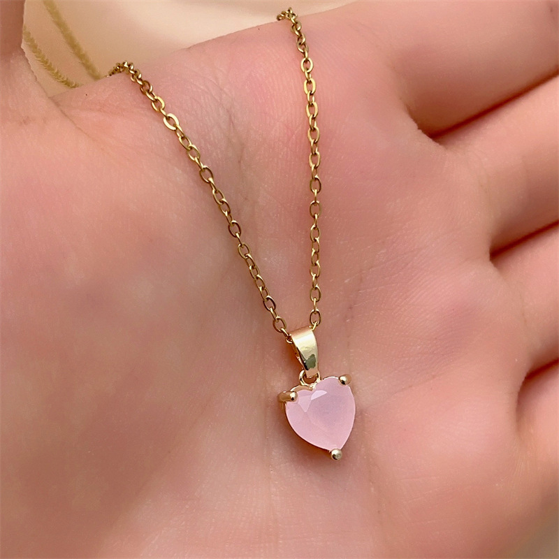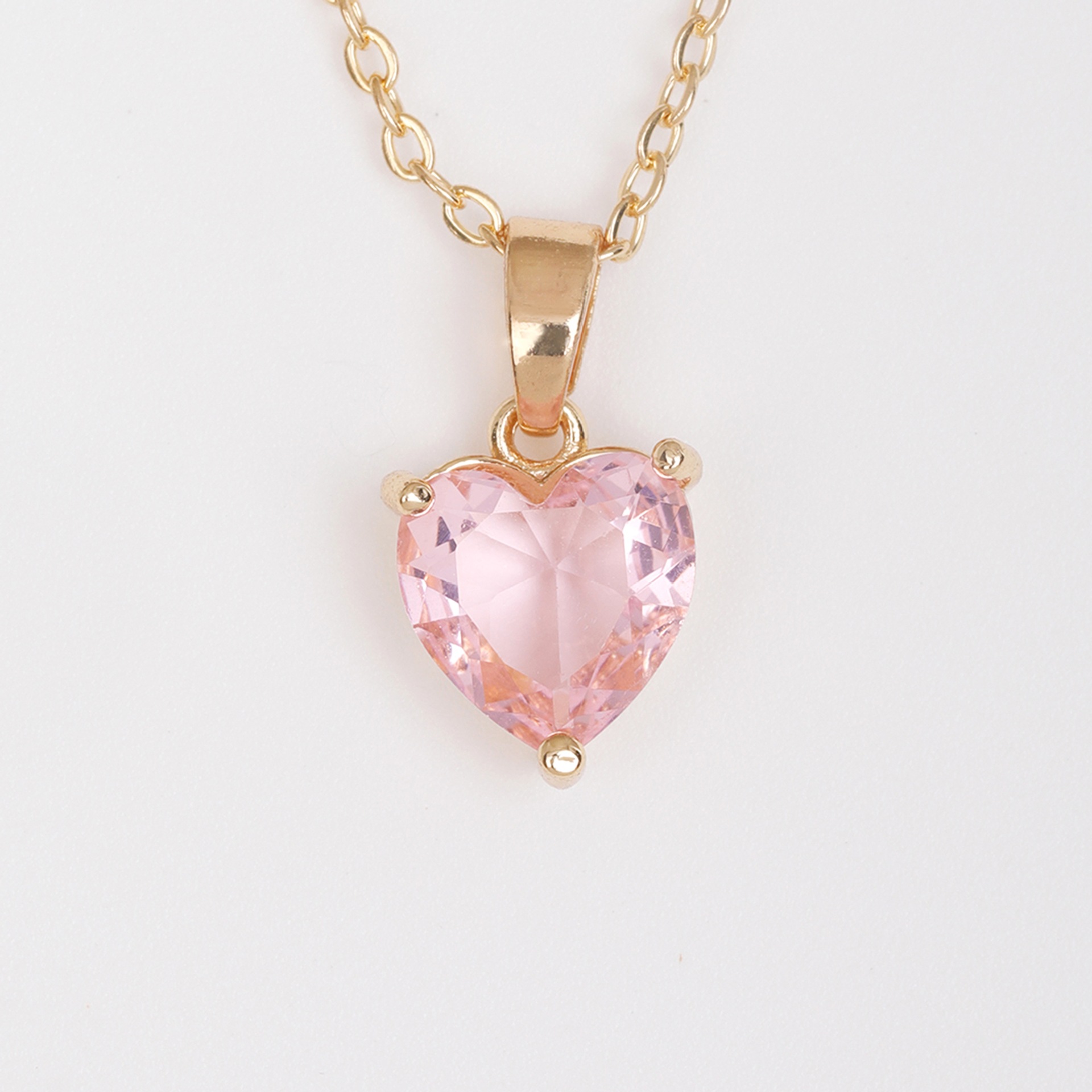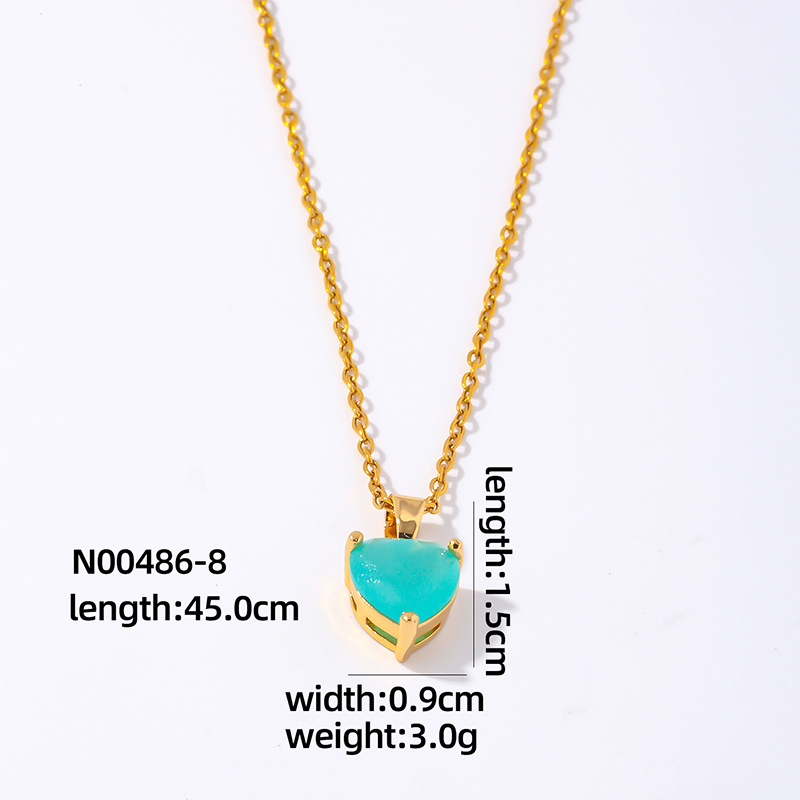 Kashi jewelry European and American cross-border color fashion simple gold-plated titanium steel heart-shaped zircon birthday Stone Love necklace