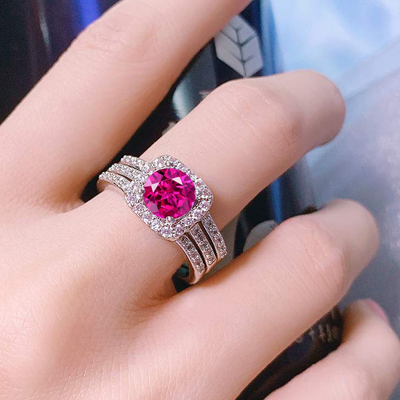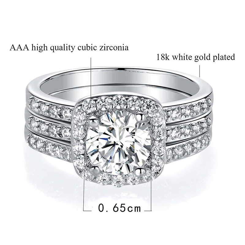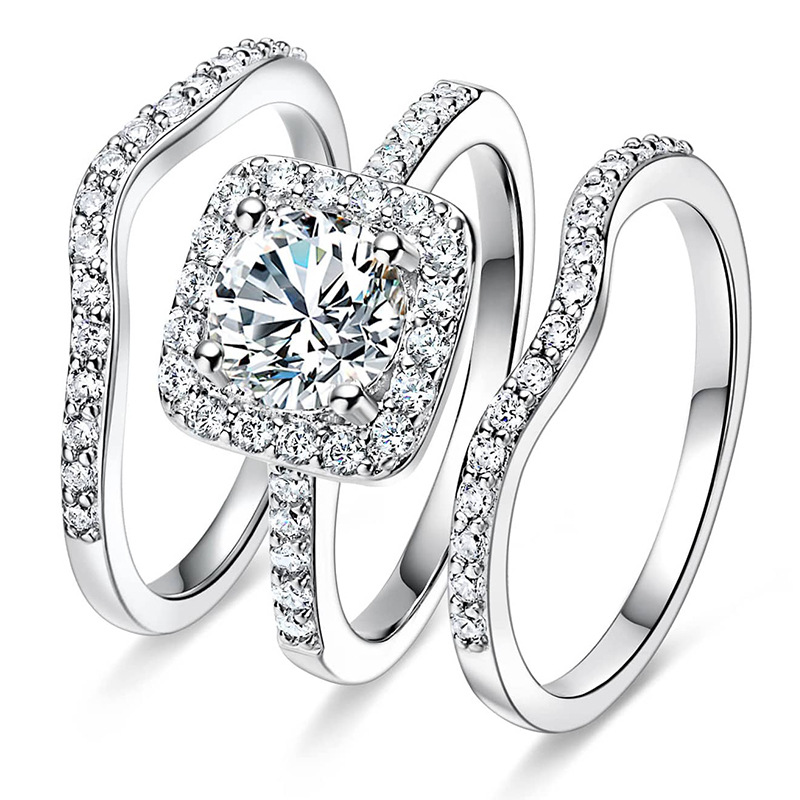 Square zirconium stacked high-grade ring female male cross-border European and American exquisite three-piece set noble temperament ring factory delivery