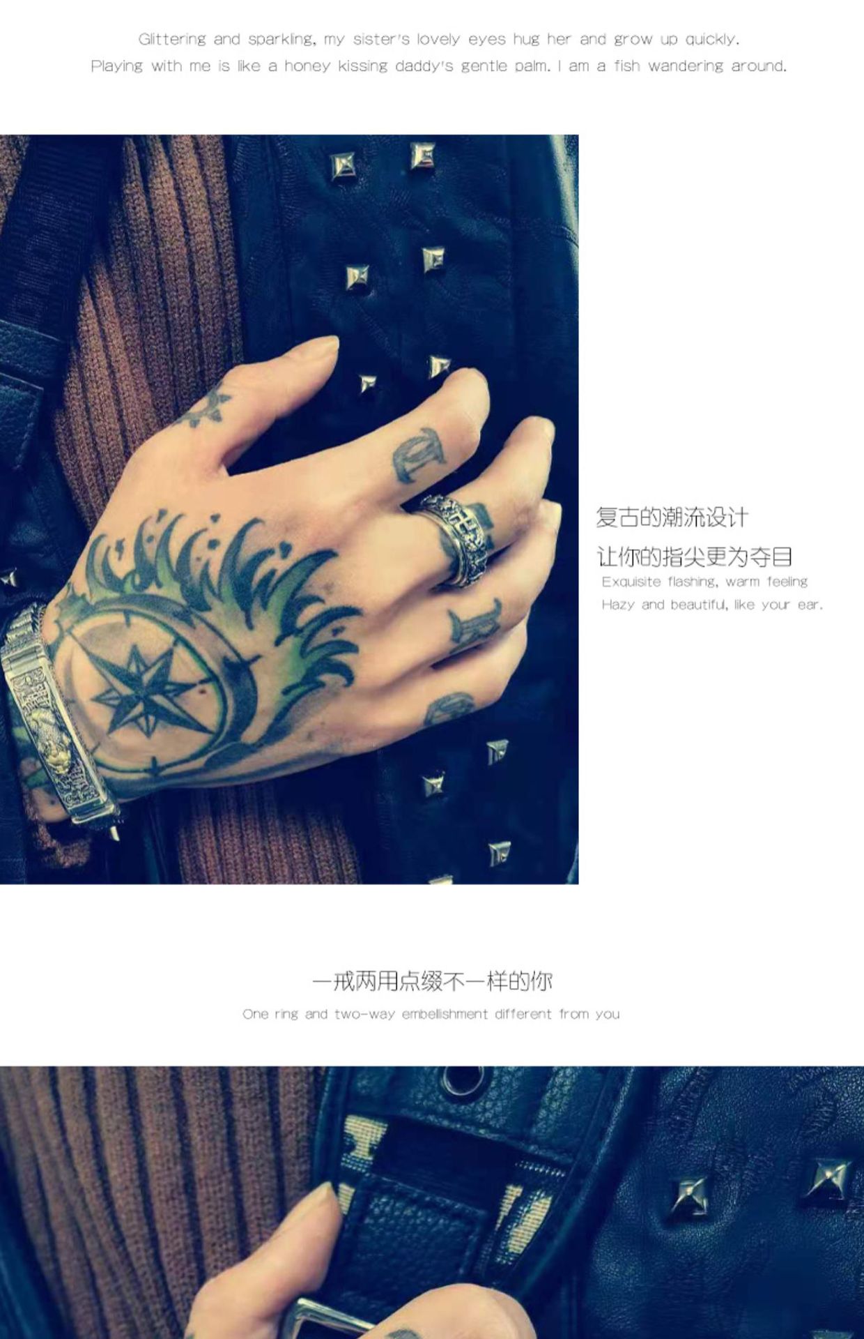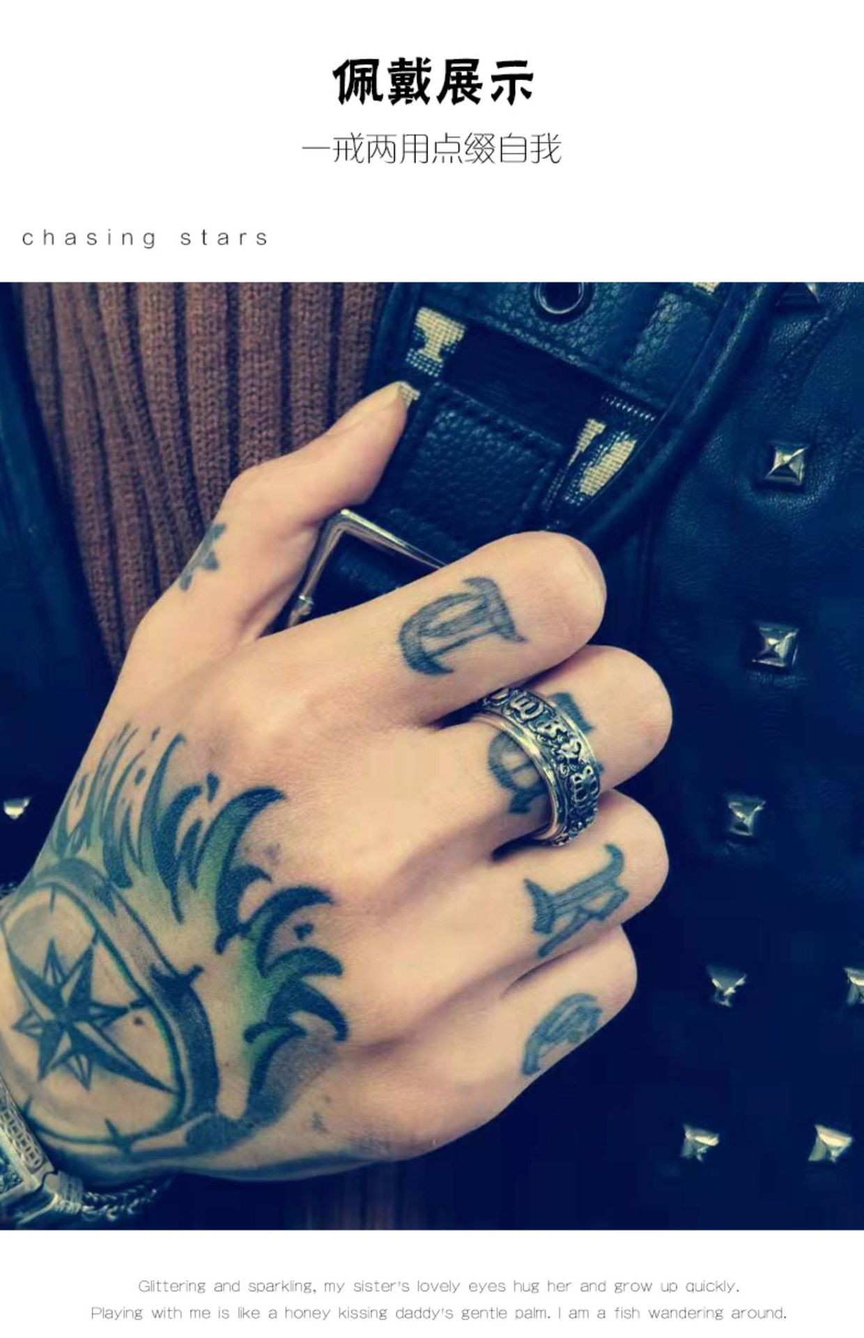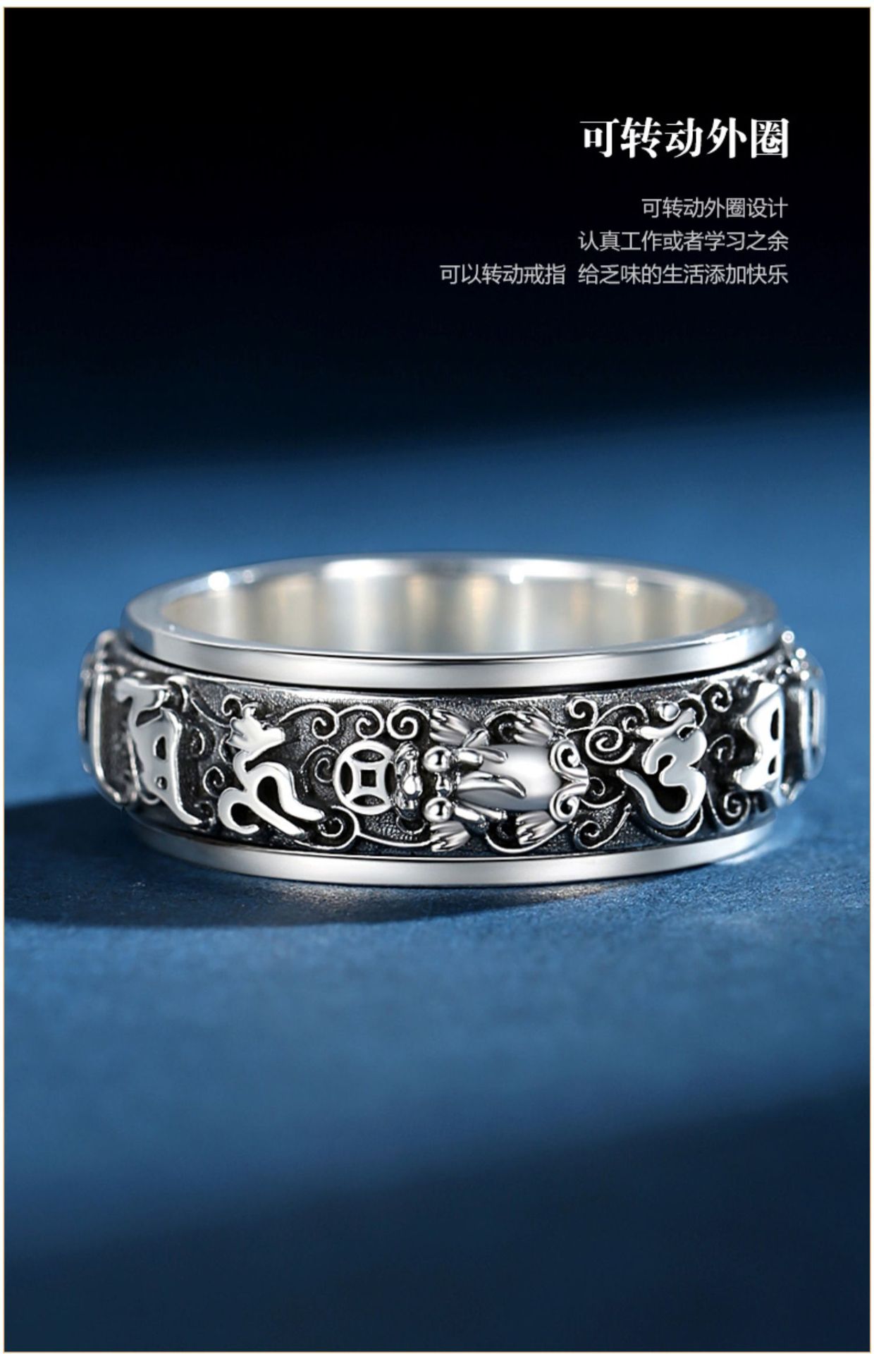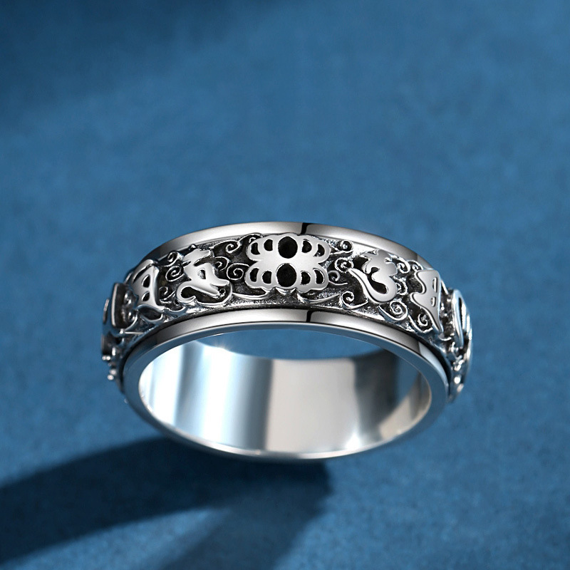Ring men's sterling silver trendy six-word mantra rotating retro index ring couple female Valentine's Day gift for boyfriend