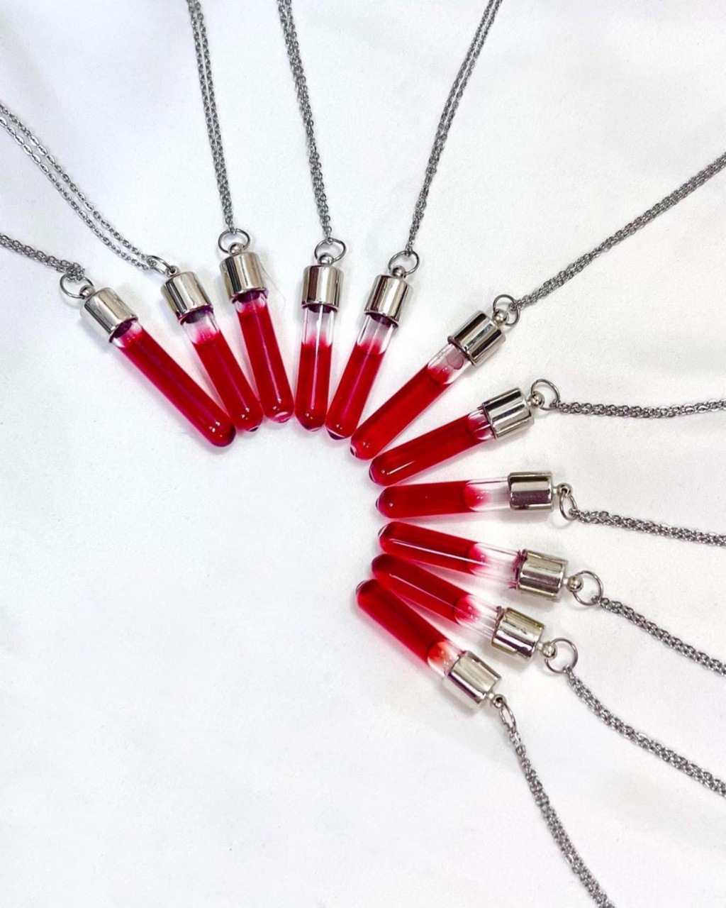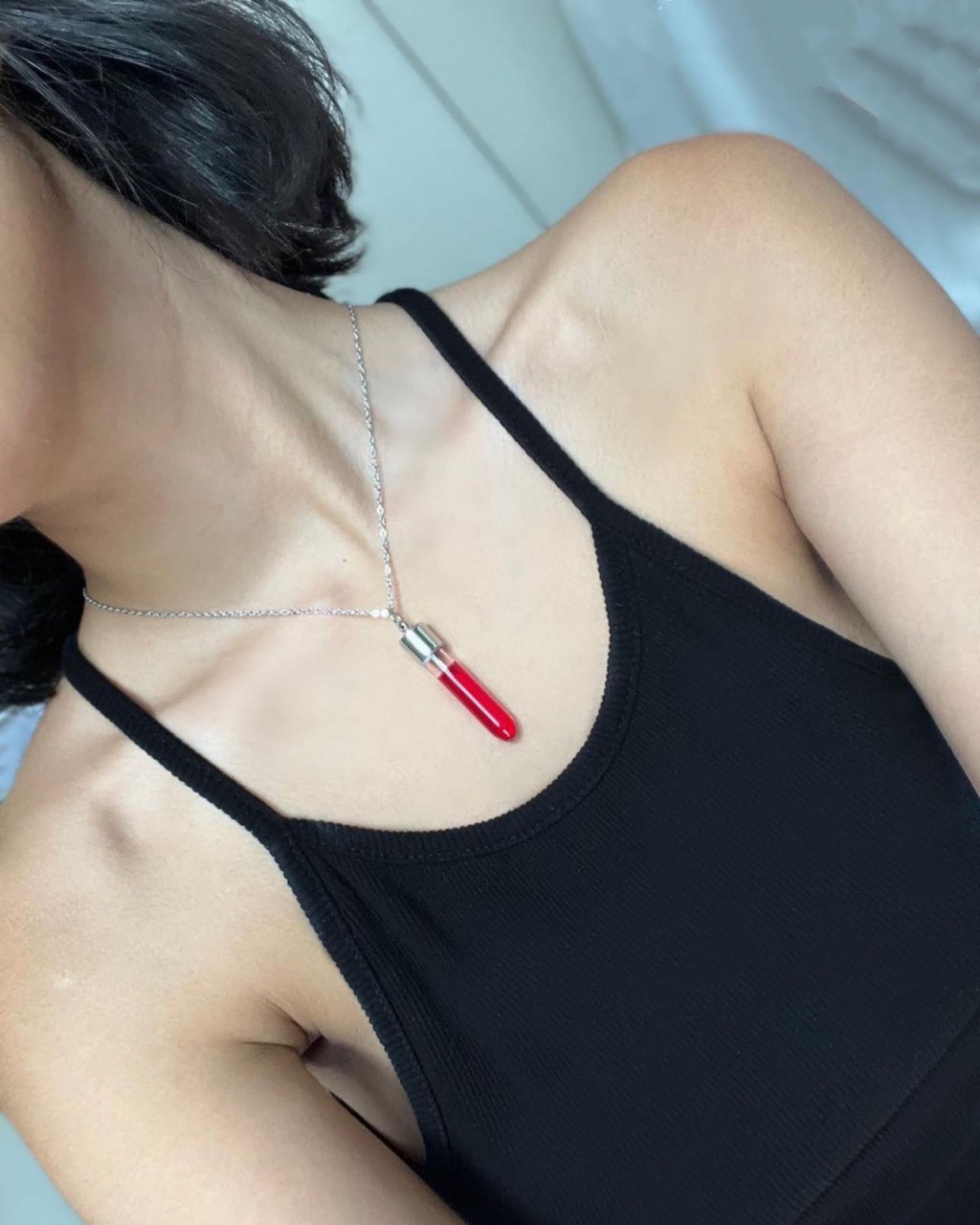 European and American cross-border men's and women's necklace simple design can be opened can hold blood glass pendant bottle necklace