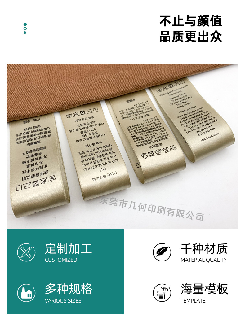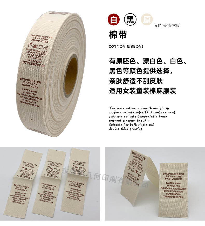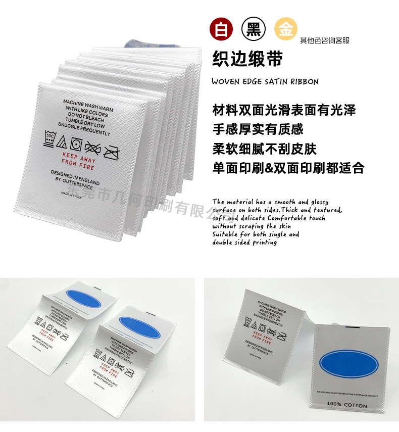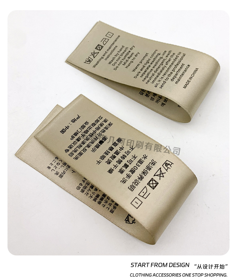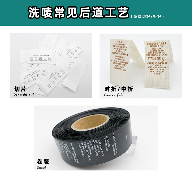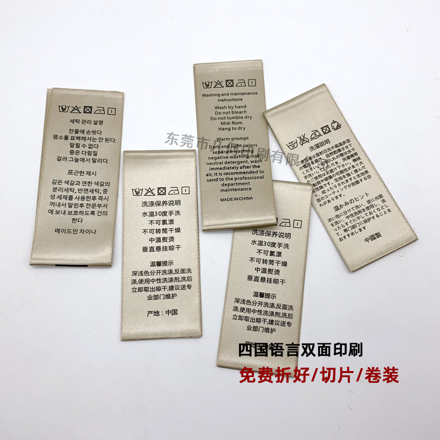 Product name: Multi-language origins, marks, ingredient labels, wash marks, washable labels, washing and maintenance instructions labels, folded side labels, care labels