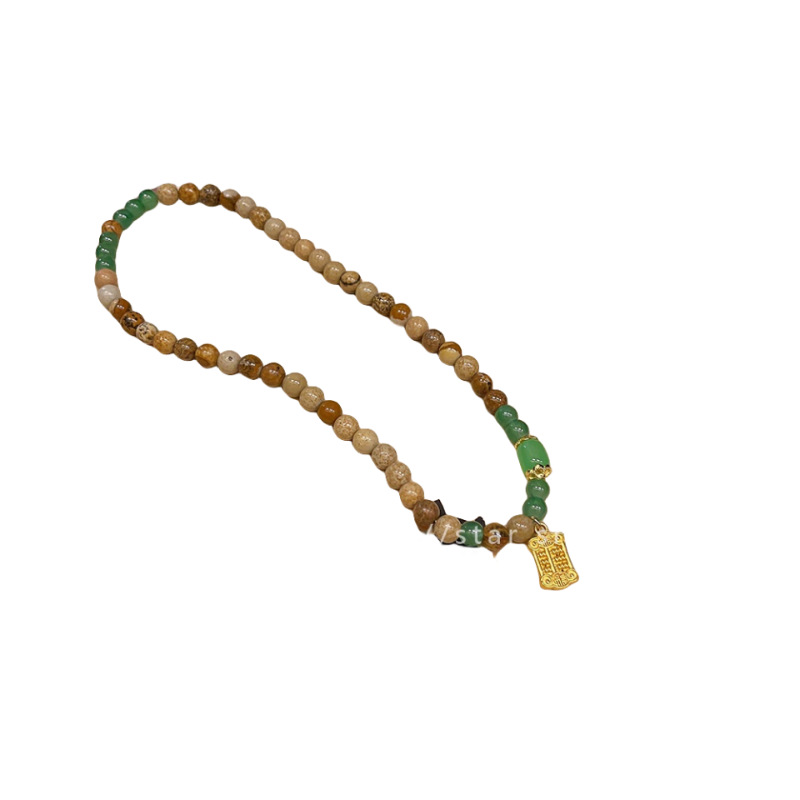 New Chinese style retro double ring stacked beaded bracelet women's golden abacus pendant imitation Jade mixed bracelet Zen