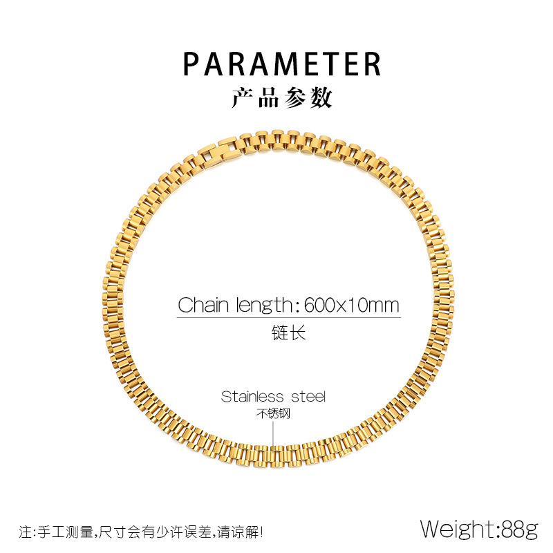 Japanese and Korean Style Simple Fashion Necklace Internet Popular Street Photoshoot Vacuum Plating 10mm Stainless Steel Men's Strap Chain Necklace