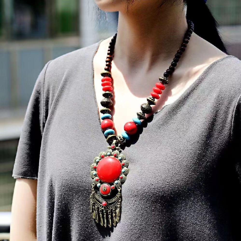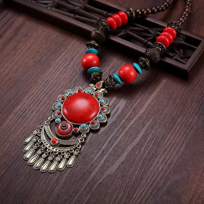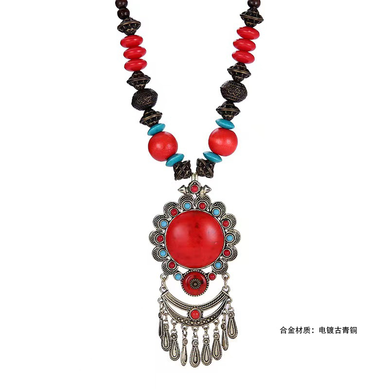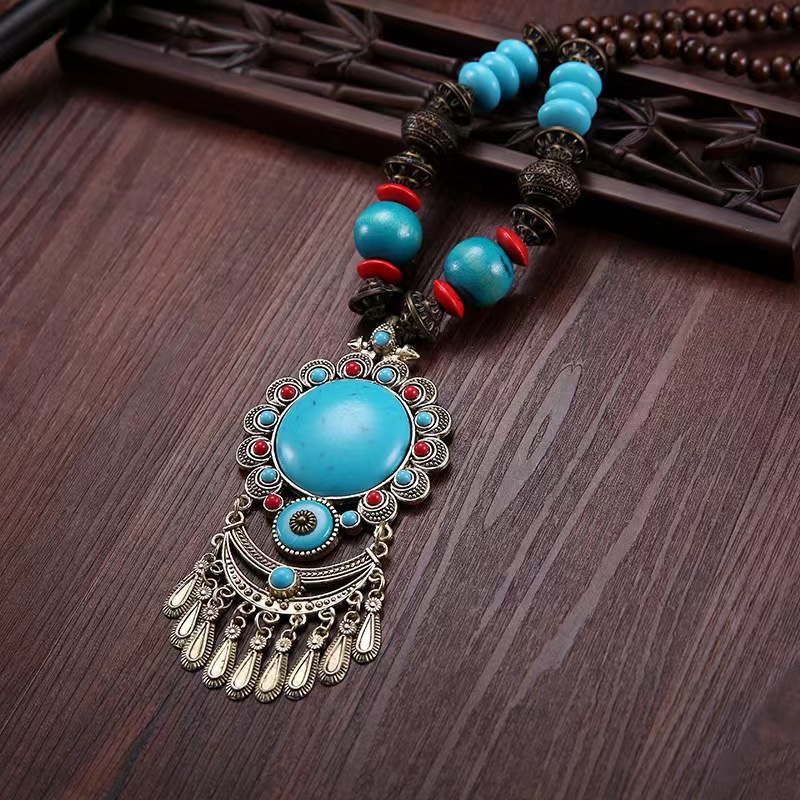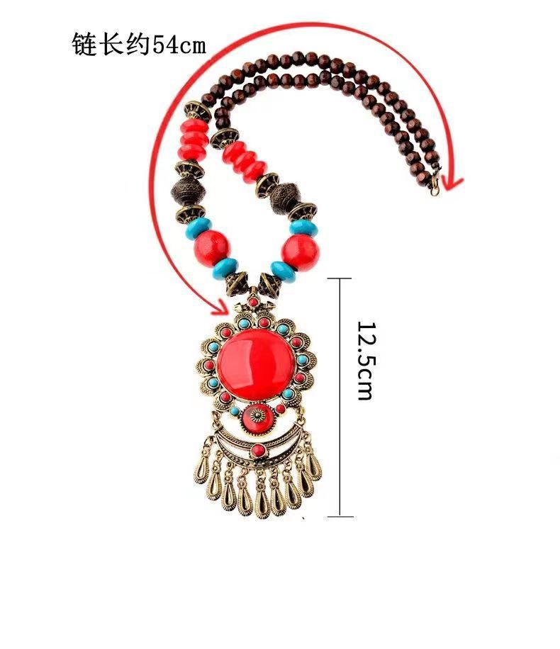 Bohemian ethnic style retro fashion personality exaggerated mid-length short tassel necklace female European and American versatile manufacturer