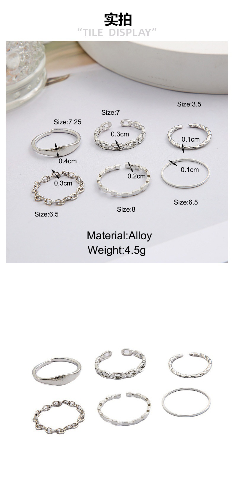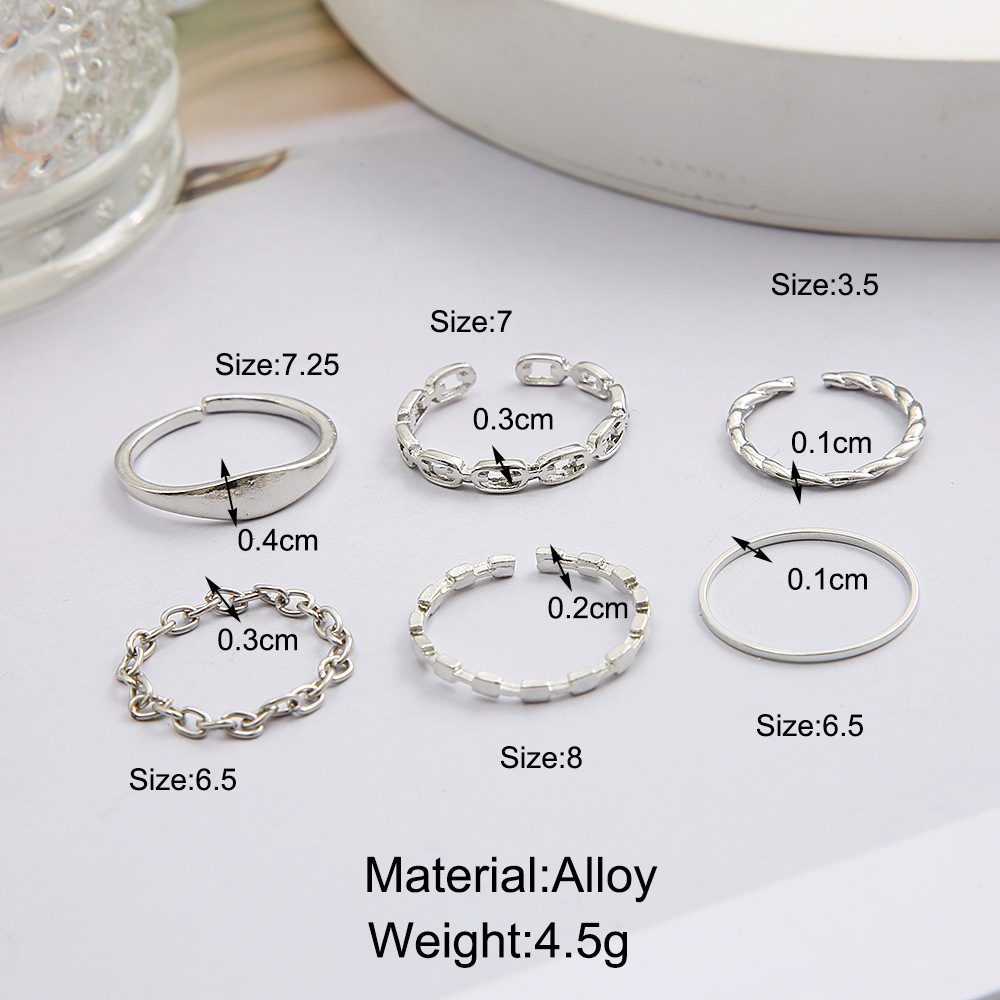 Cross-border ins simple advanced niche design personalized ring cold style female plain ring open ring 6-piece set Wholesale