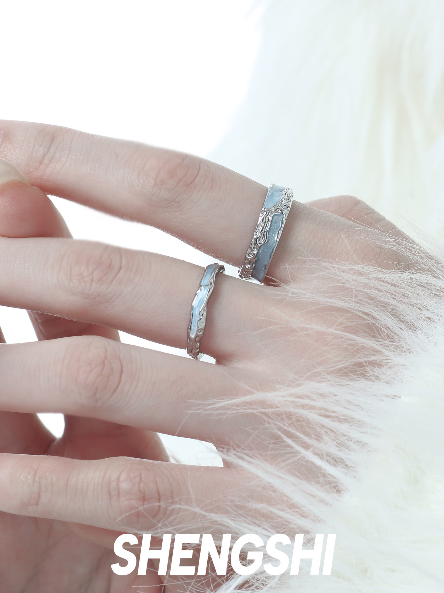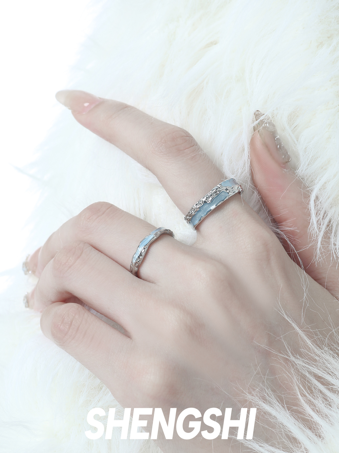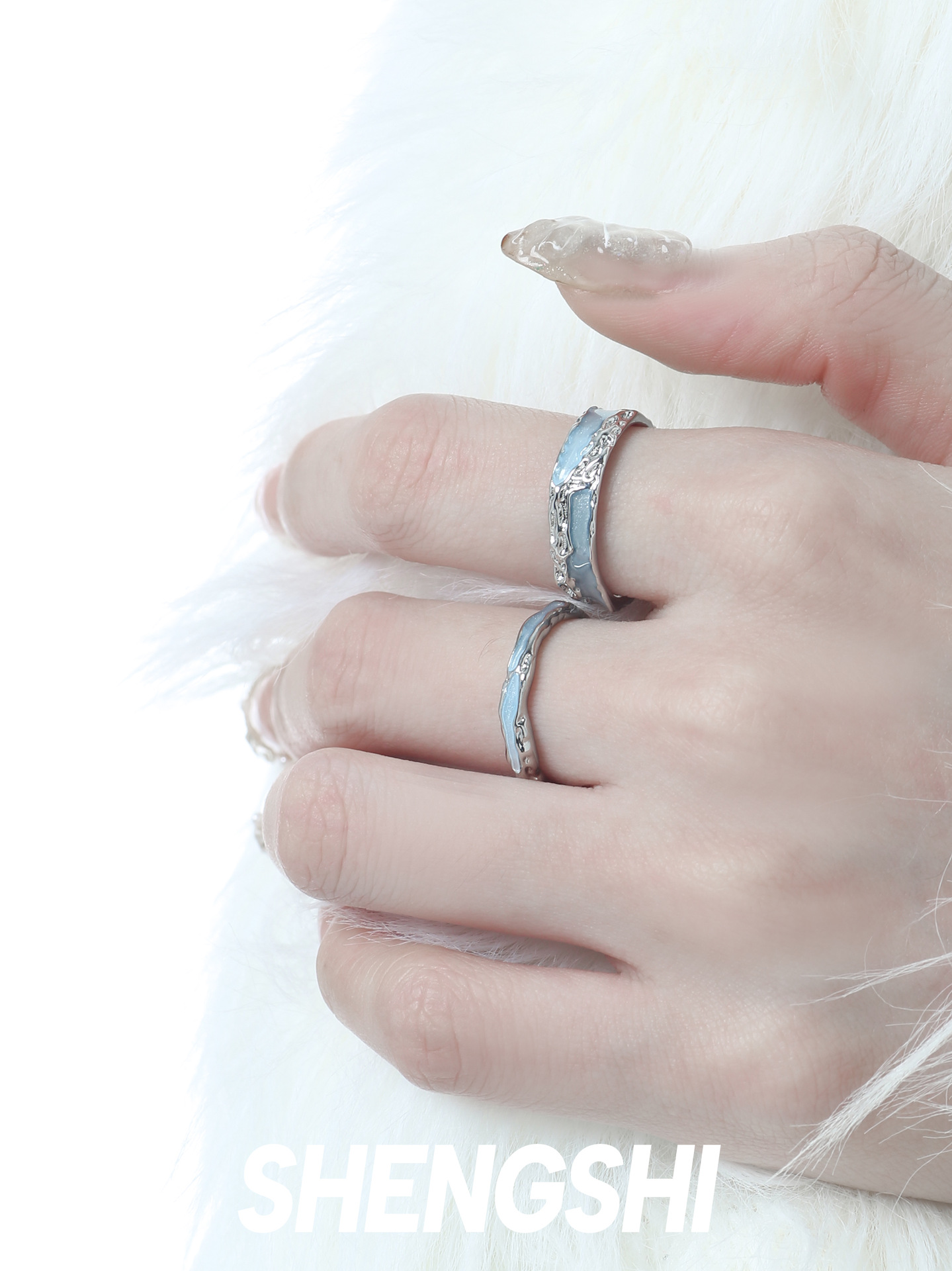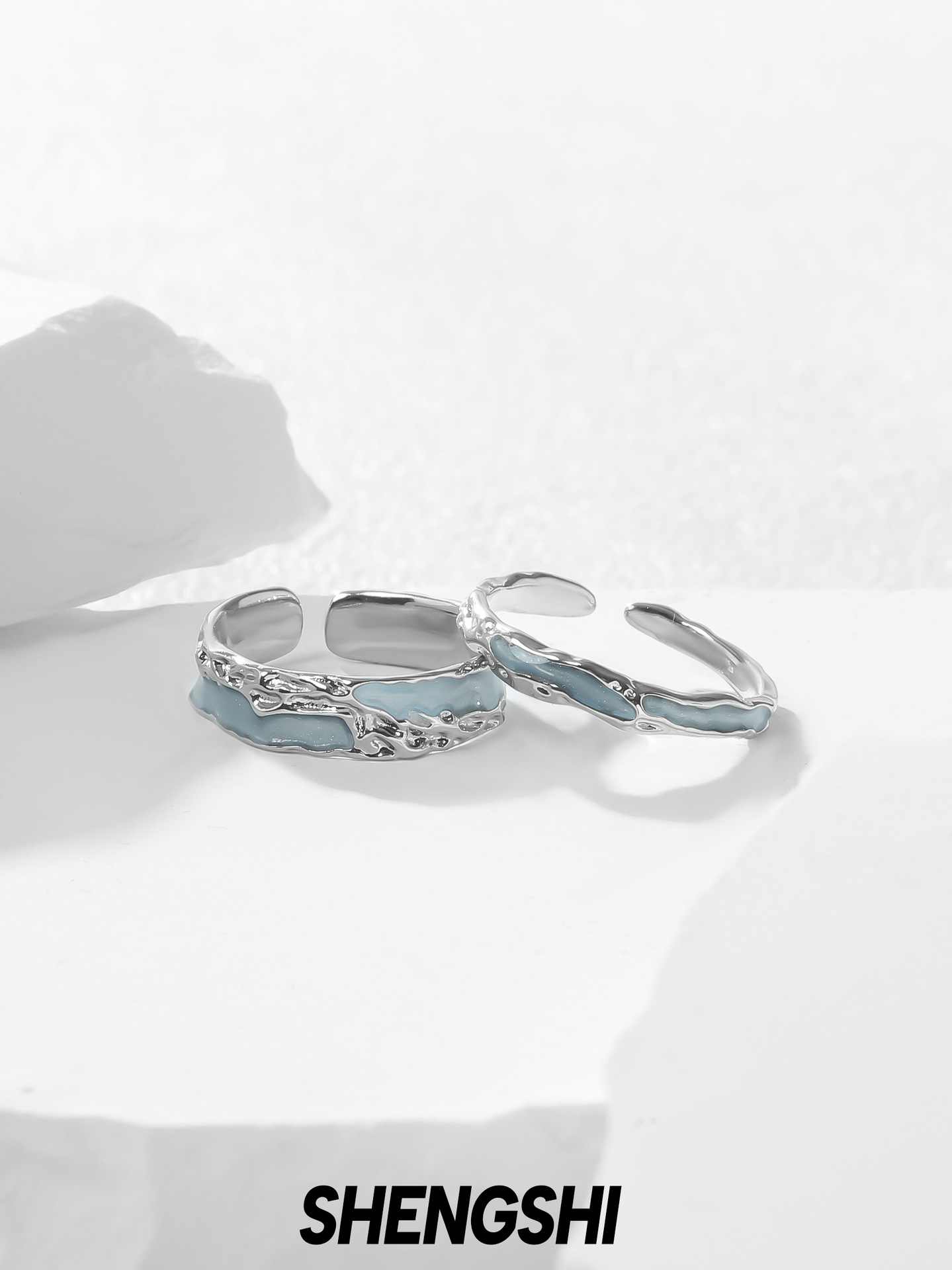 Original Sea Blue Glue Texture Couple Rings, Versatile Stylish for Men and Women, Accessible Luxury, High-End Niche Rings for Women