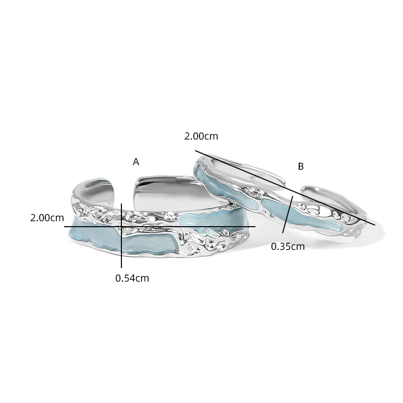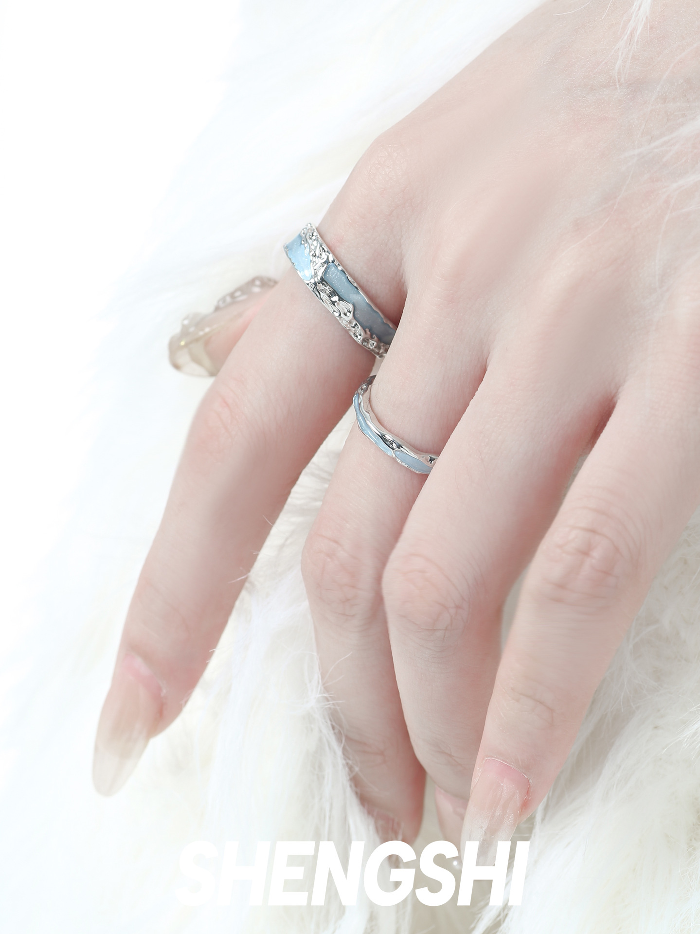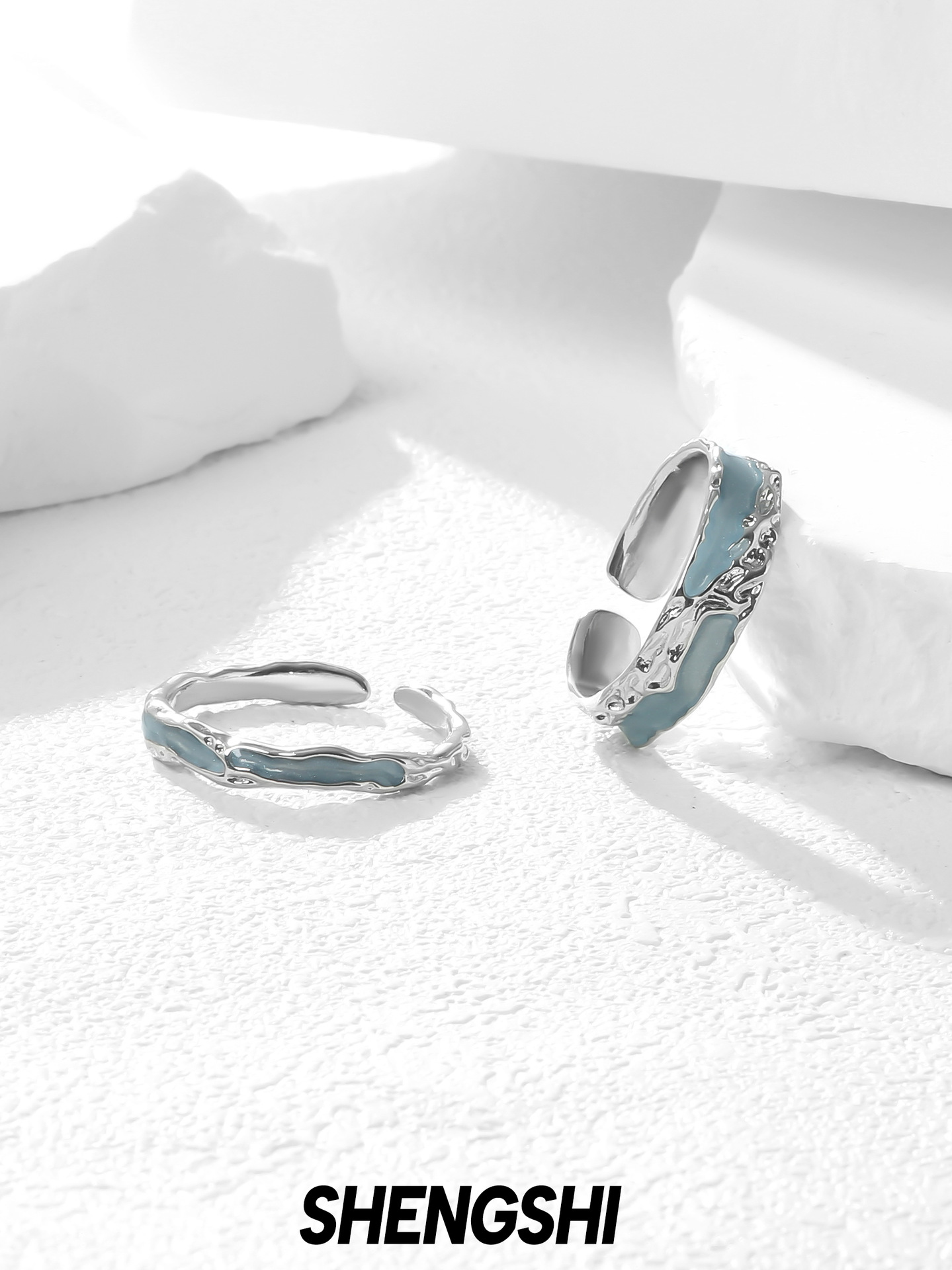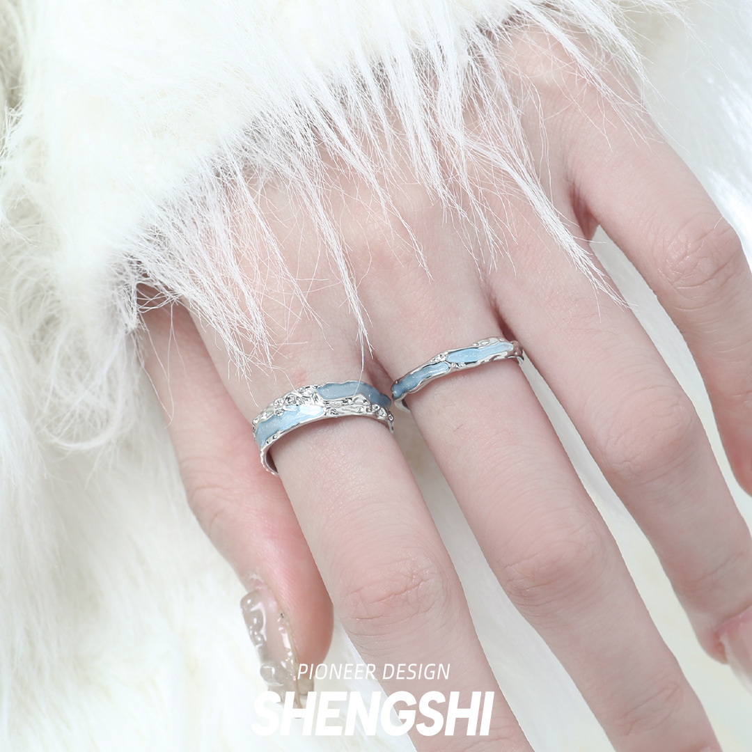 Original Sea Blue Glue Texture Couple Rings, Versatile Stylish for Men and Women, Accessible Luxury, High-End Niche Rings for Women