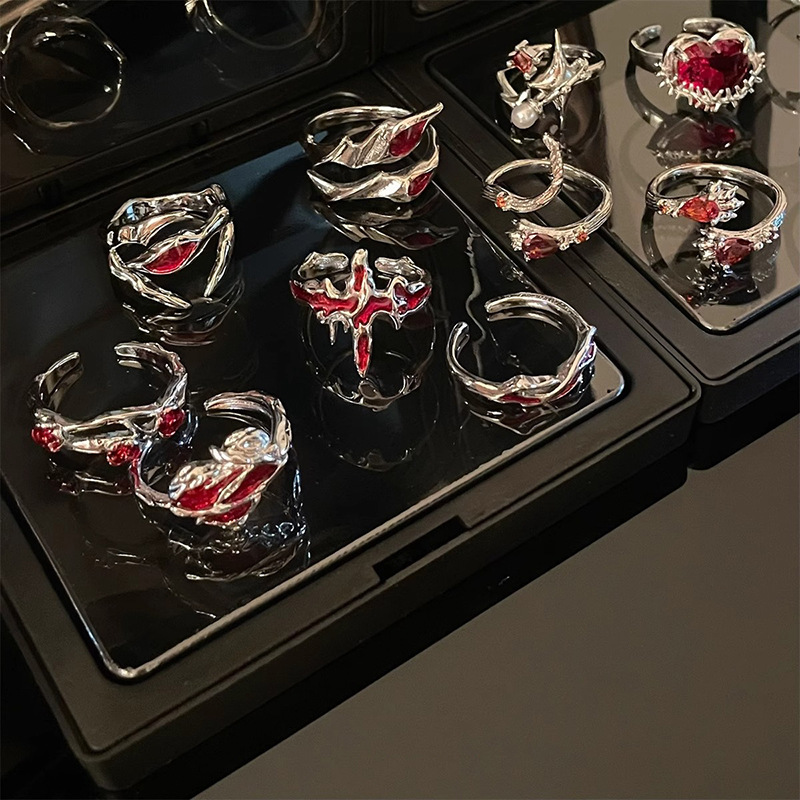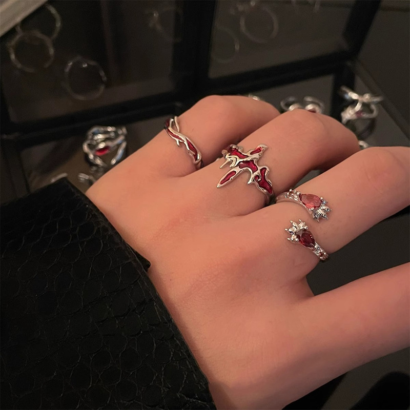 Red high-grade ring for women ins stacked all-match cold ring men's niche design single index finger ring