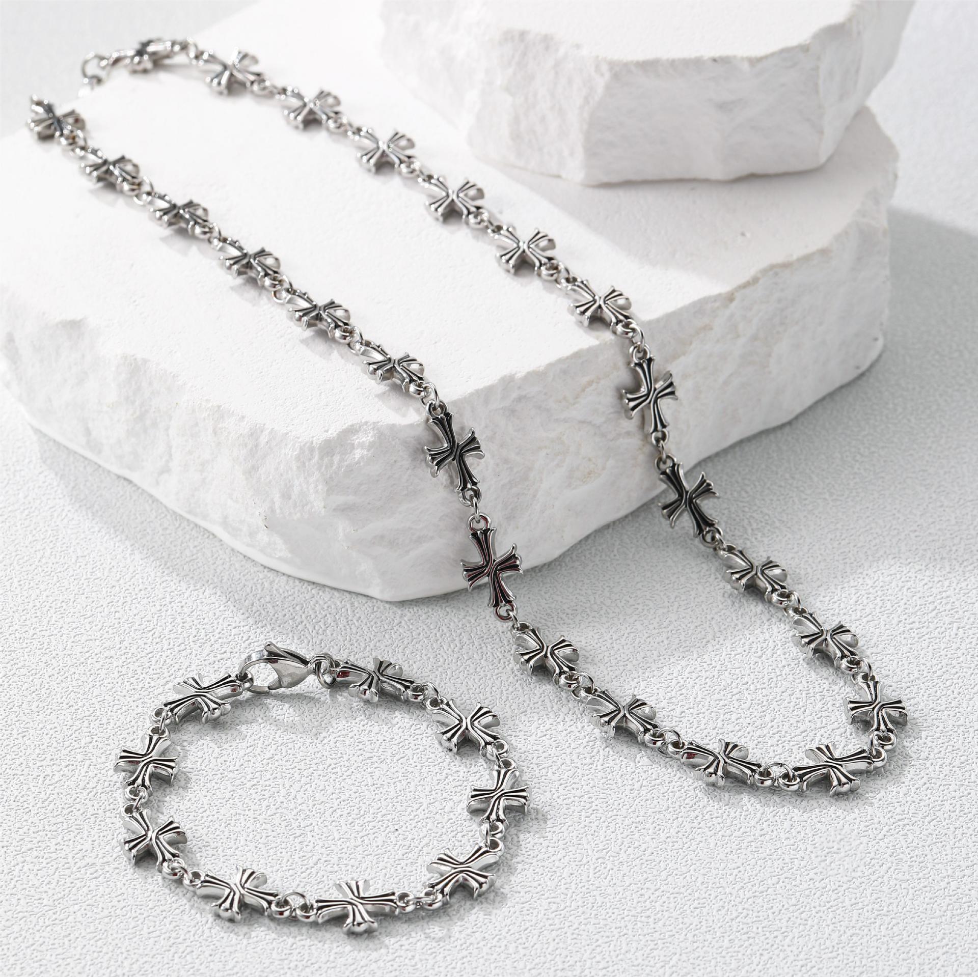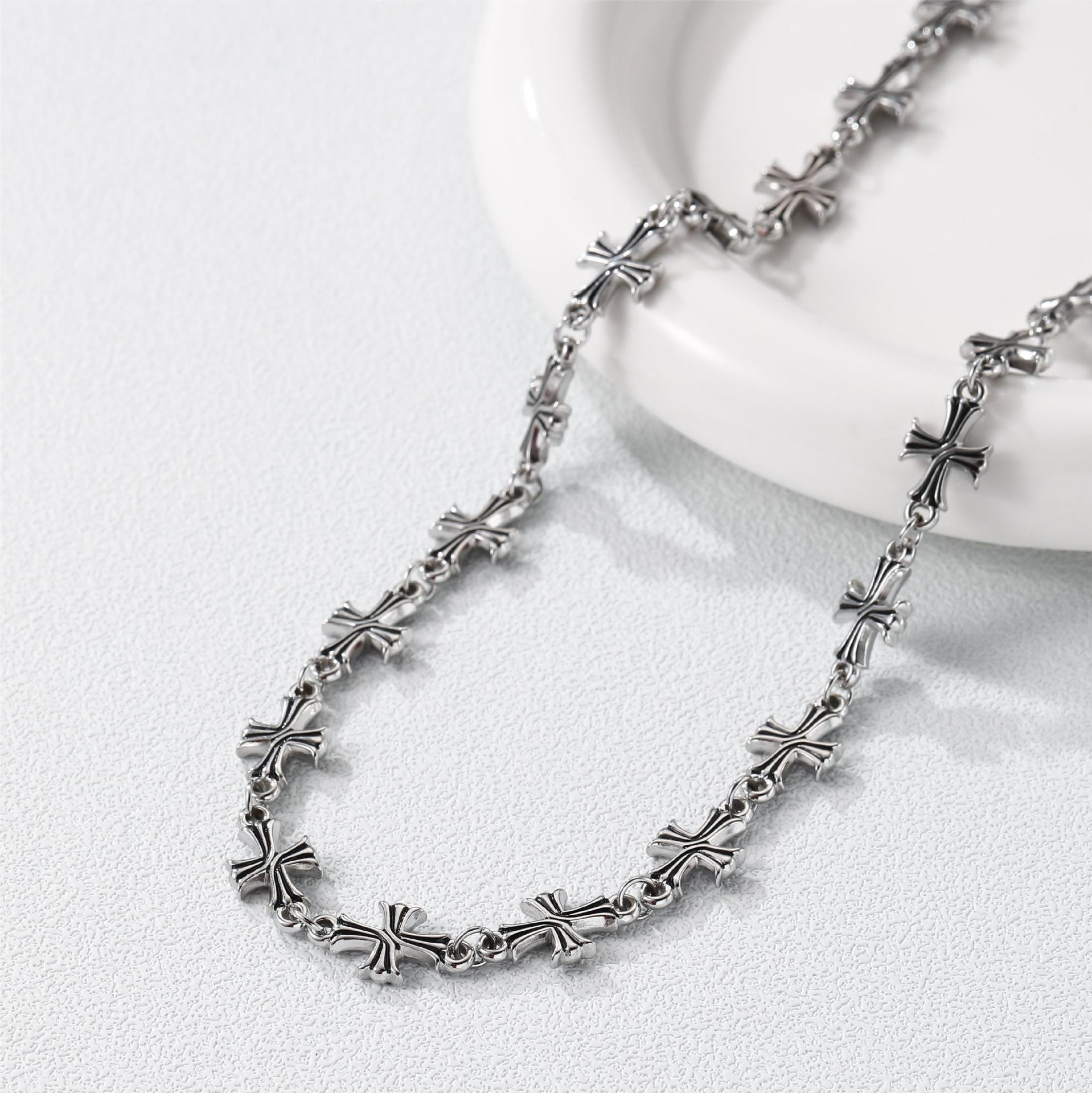 Cross-Border Cross Flower Trendy Brand Men's Clavicle Chain Women's Niche High-End Necklace Rap Hip-Hop Style Simple Splicing Clavicle